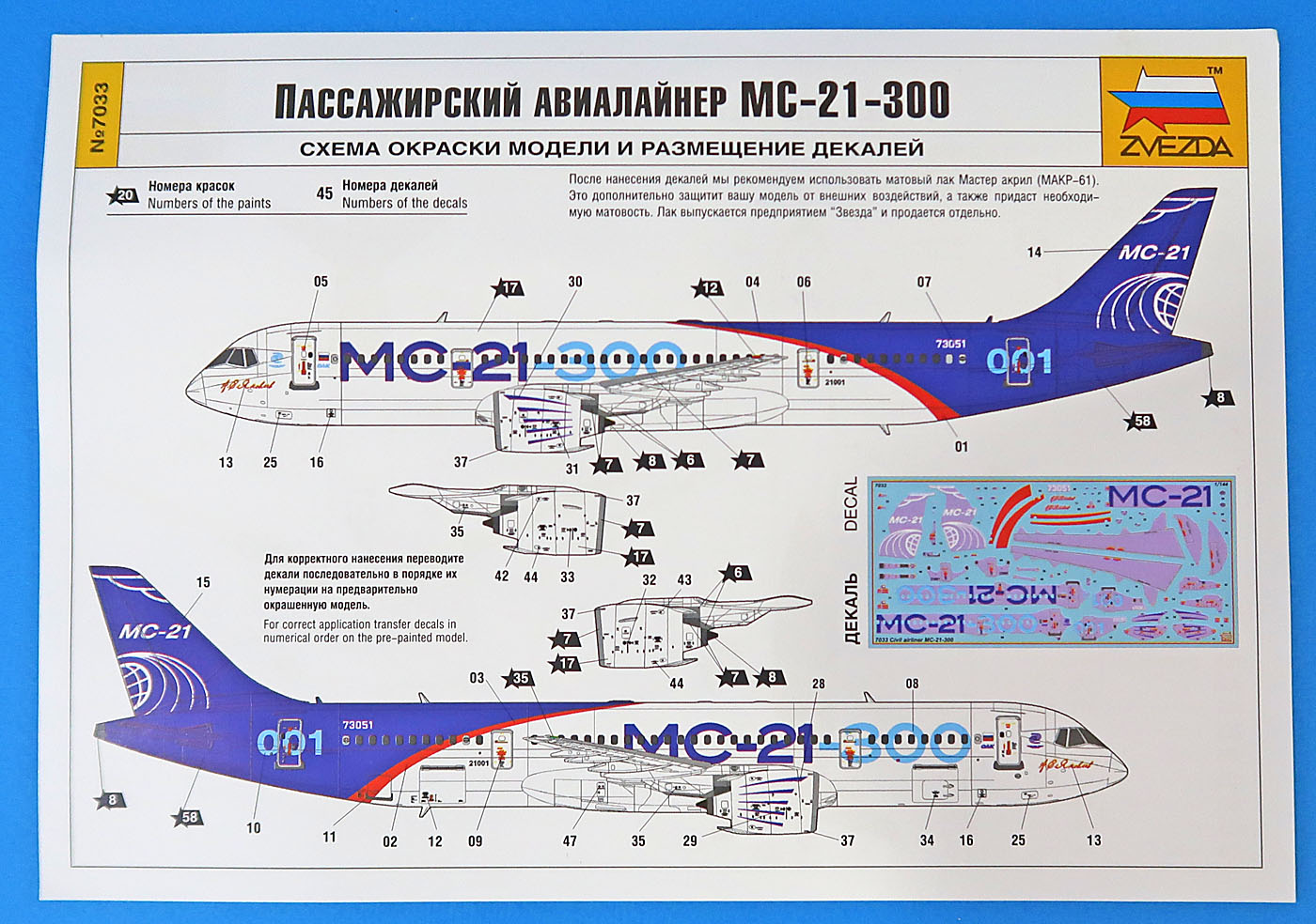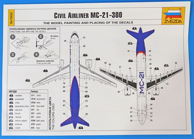 Отдельным цветным листиком формата А5 идет подробная, цветная схема окраса и нанесения декалей на 1 вариант.