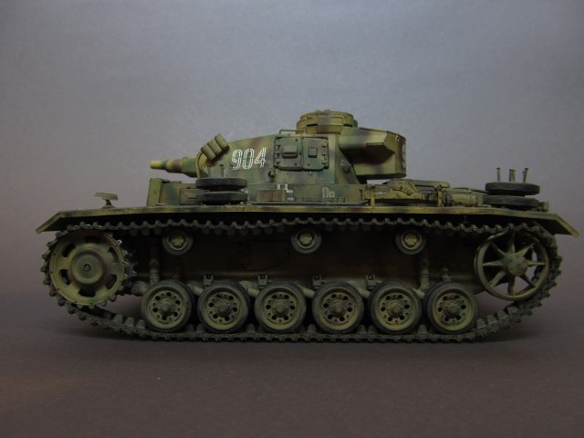 Приятная работа,но что-то не хватает.Никак не пойму что.Это тройка на базе L судя по отсутствию смотровых лючков на башне.Т.е. ранняя.Но все равно маска пушки должна быть 50мм.(это претензии к производителю)А здесь визуально видно,что она тоньше.С уважением.