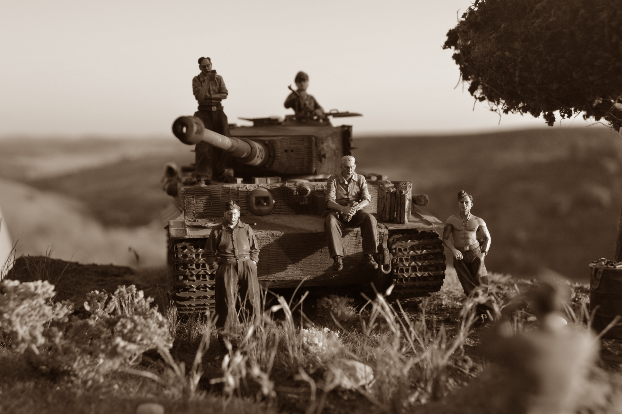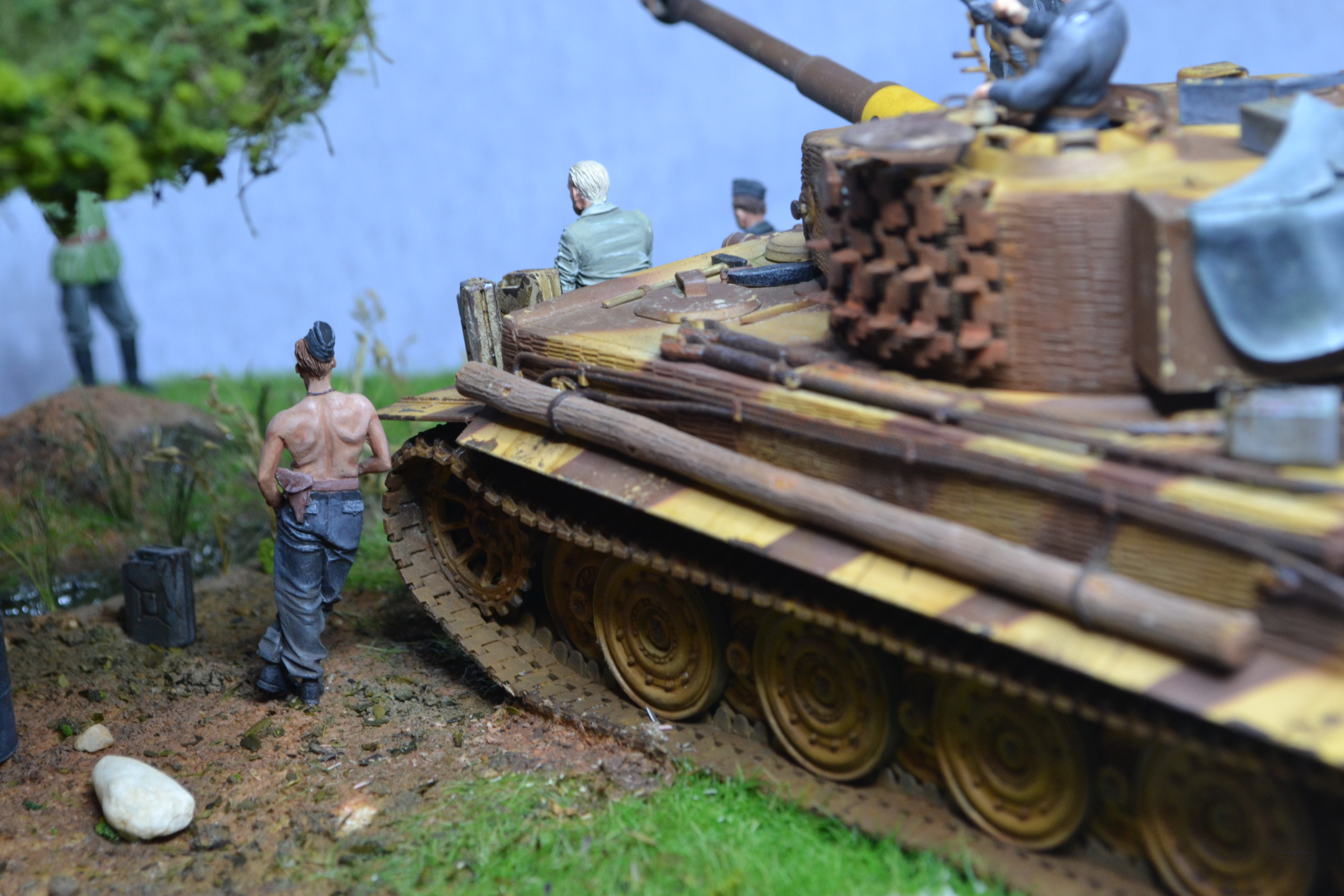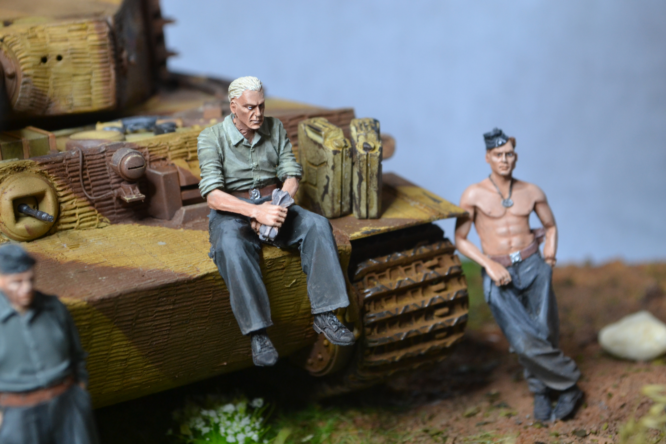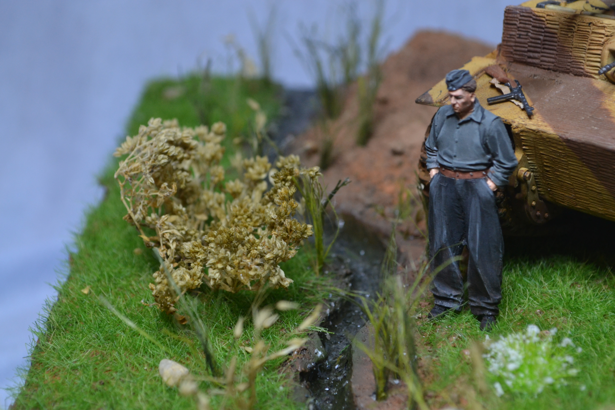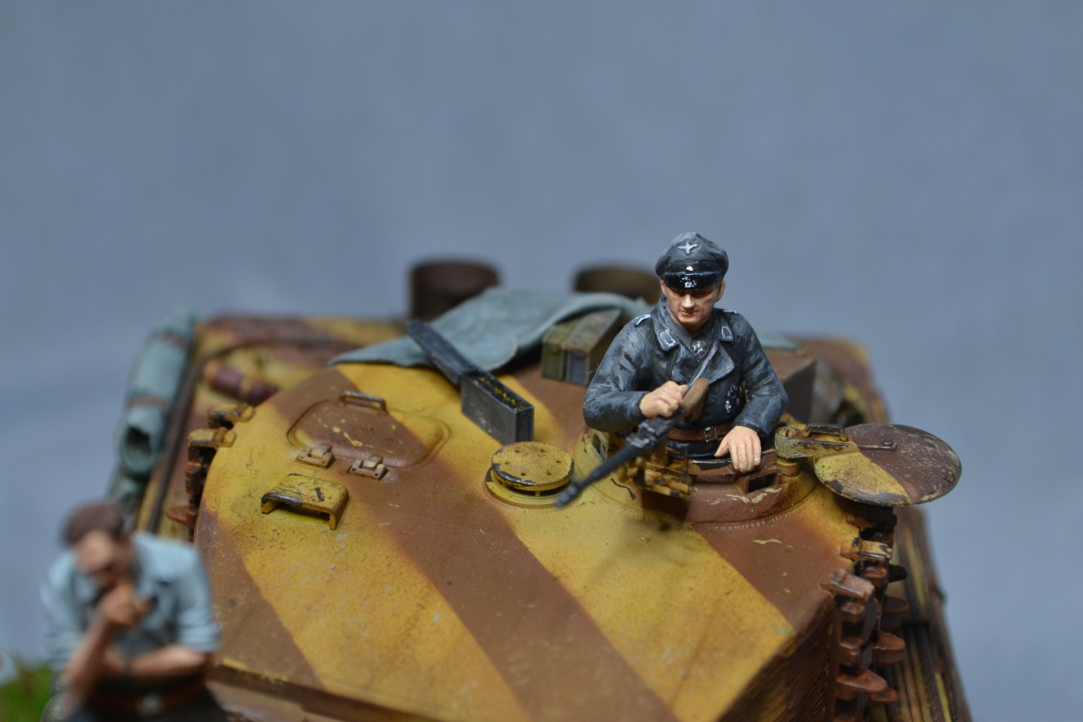Приветствую! В бронетехнике не силен, коллеги поправят, а вот роспись фигур весьма понравилась. Да и сама идея интересная. Из того, что бросается в глаза, у танкиста с трубкой явно что-то не то с рукой. Похоже китайский перелив дает о себе знать. Я бы подшпаклевал и перекрасил. Ремень на MP-40, что на бочке, несколько широковат на мой взгляд. В целом, работа понравилась и видно, что труда вложено много. С уважением!
