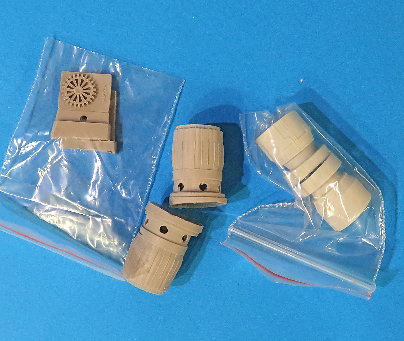 Сопла поставляются в простеньком пакетике с маленькой наклейкой. Внутри еще пара подпакетиков для деталей.