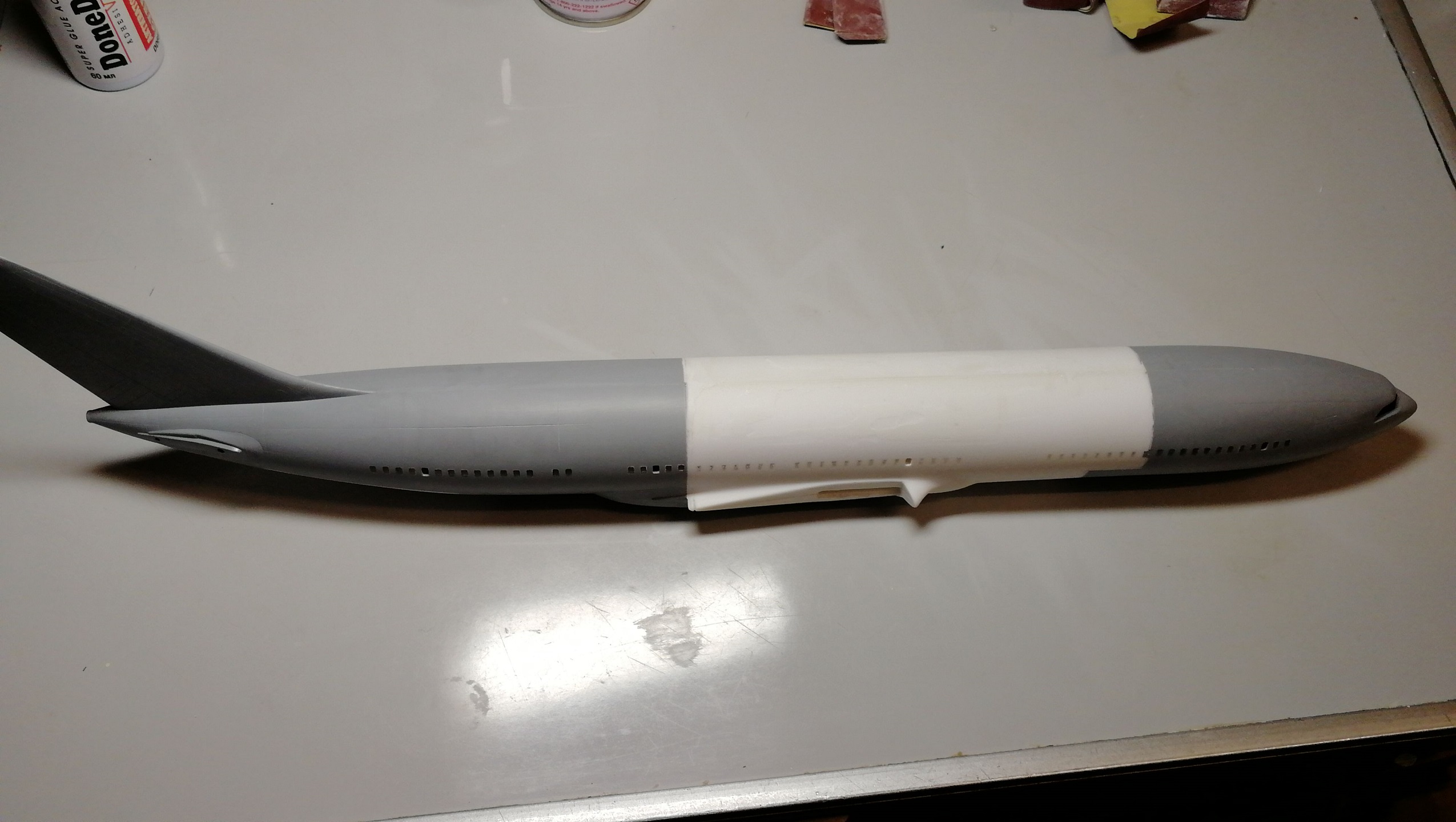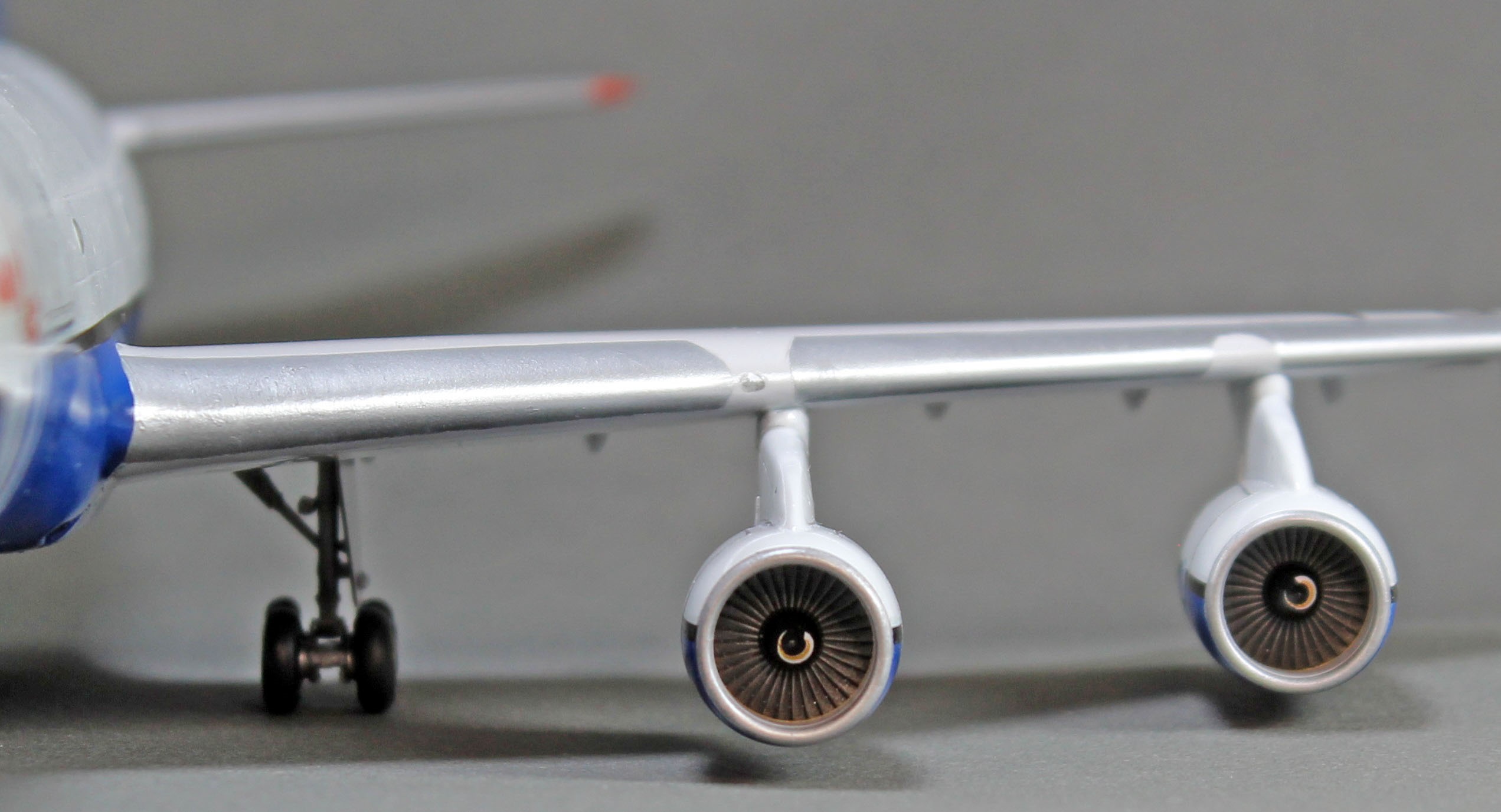 Ну и по мелочи — выхлоп ВСУ — кусок антенны, иллюминаторы, фары в крыле, на стабах, в носу и БАНО залиты УФ-отвердевающим полимером.