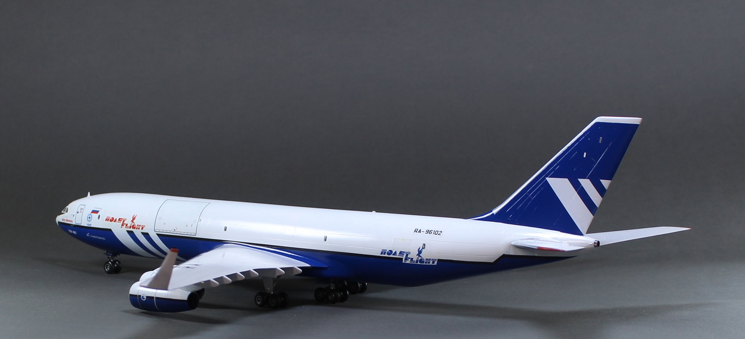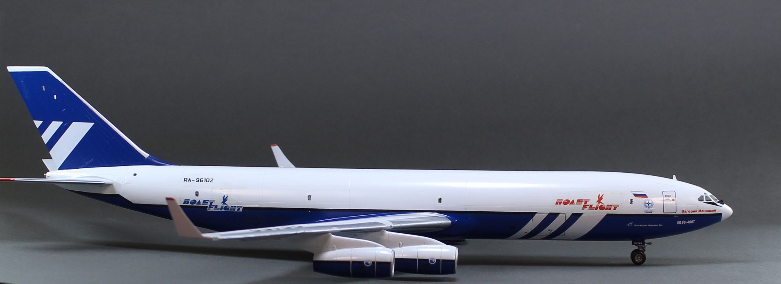 Лет восемь назад, побывав на местном авиасалоне, впервые увидел живьём грузовой Ил-96-400 в ливрее «Полёта» и тут же захотел его поставить себе на полку.