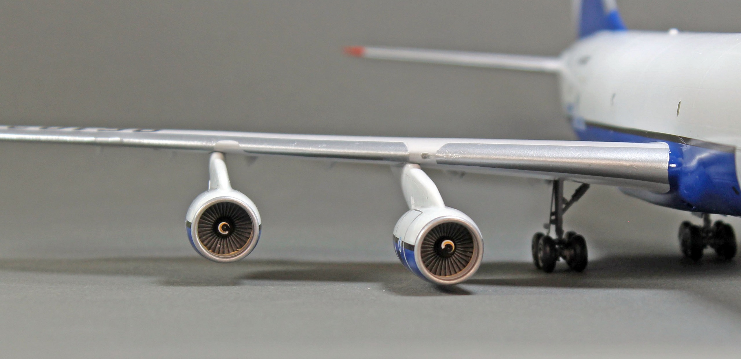 Моторы — 4 смоляных ПС-90А от АМУР, но лопатки вентилятора вместе с коком — копии Звездовских от Ту-204, Амурный кок размером ни о чём.