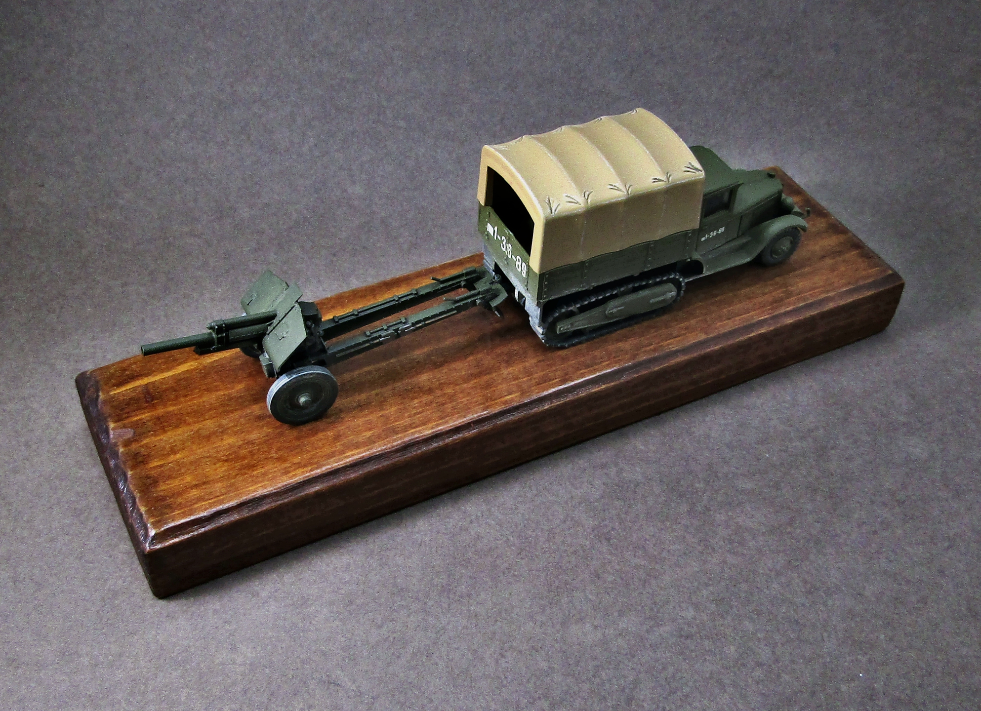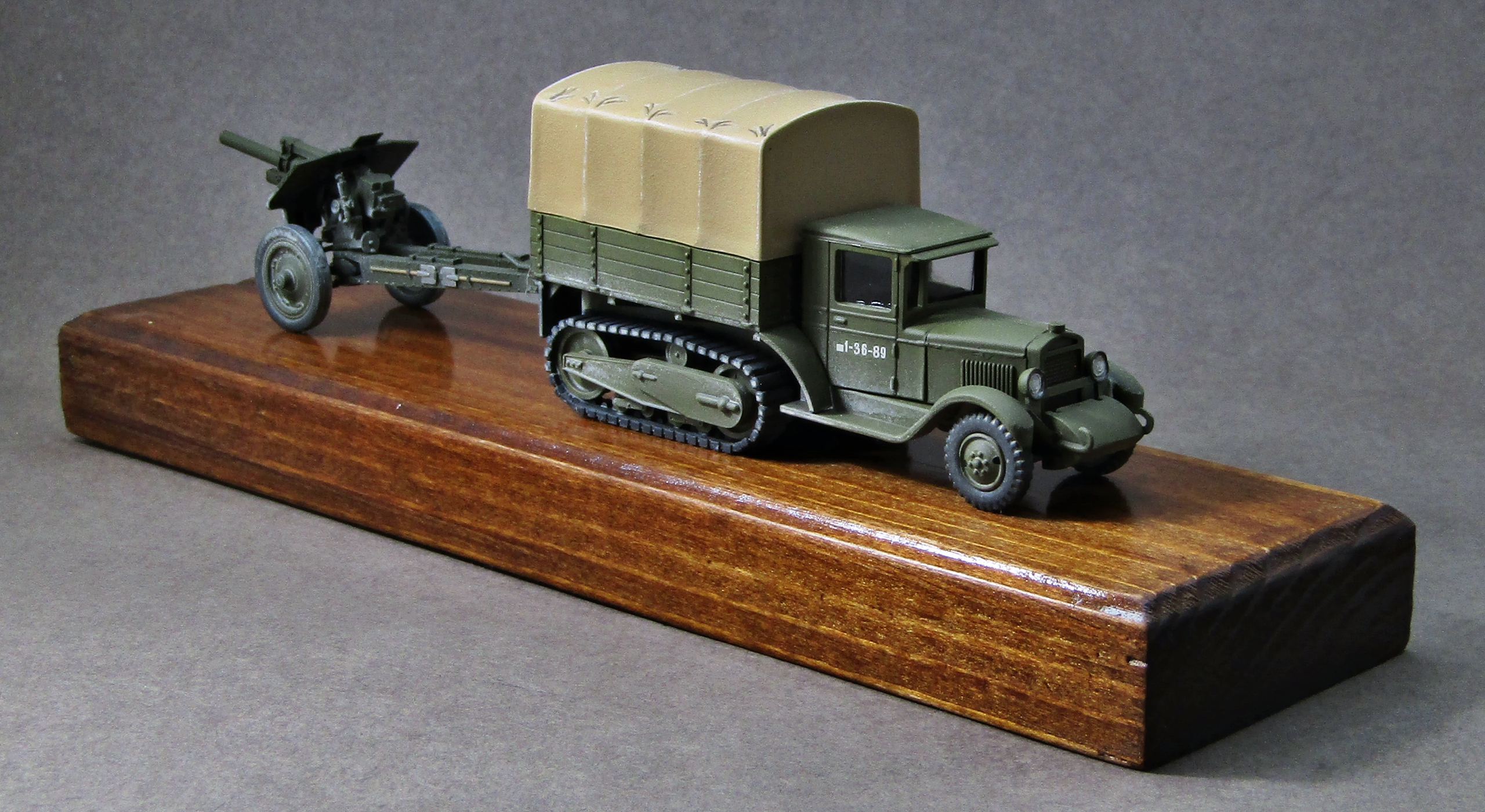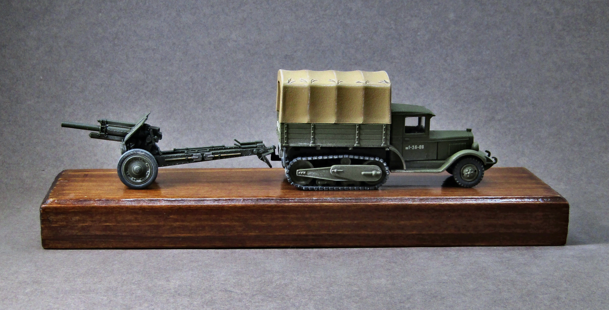 Приветствую. Представляю небольшую зарисовку на тему ВОВ в 72-м масштабе. Увидел однажды на полках модельного магазина несколько коробочек от PST решил одной обзавестись и попробовать что это и с чем его едят. Честно говоря ожидал чего-то наподобие дровищ от ACE, оказалось вполне себе качественная вещь, конечно можно её ещё и доработать, но мне показалось для такого масштаба это будет лишним. Гаубицу описывать не стану, я думаю она и так многим известна, по мне так она сделана достаточно хорошо для 72-го масштаба. На статнину гаубицы было добавлено колечко для навески на фаркоп тягача. Грунтовал модели серым грунтом от Тамии, красил акрилами от Тамии, Ганзы и Pacific 88. Смывки коричневая и чёрная от Тамии, матовый лак из балончика Тамии. Приятного просмотра коллеги...