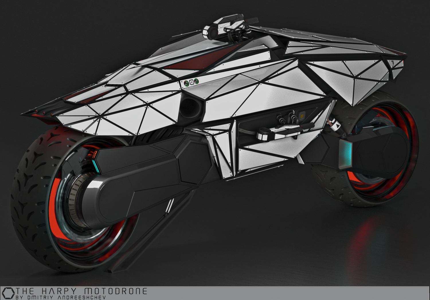 Приветствую, коллеги! Представляю Вам еще один свой проект, выполненный по собственной 3D-модели - футуристический боевой мотодрон "Гарпия". Эта модель - полностью моя авторская, включая дизайн. От первых 3D эскизов до дальнейшей печати, сборки и покраски - все выполнено мною, в домашних условиях. Среди источников вдохновения присутствовали арты Сида Мида, электромотоцикл Verge TS и мотоциклы марки Ducati, а также еще ряд вещей.