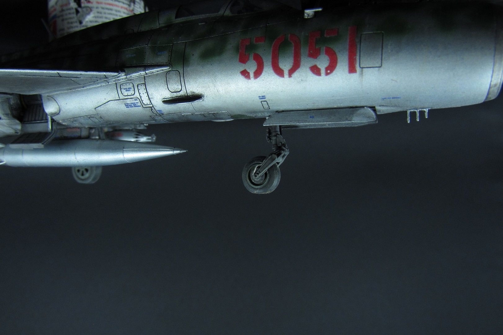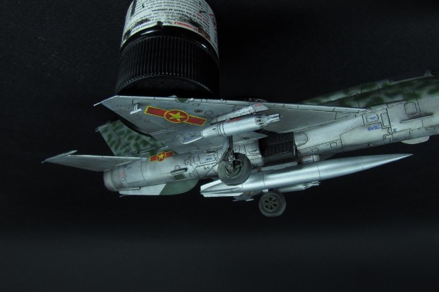 Подвеска. Да, предполагаю что УБ-16 на МиГ-21ПФМ не вешались. Но сошлёмся на изобретательных вьетнамских техников. Крепил на штыри из стальной проволоки, сомневаюсь что держались бы на суперклее.