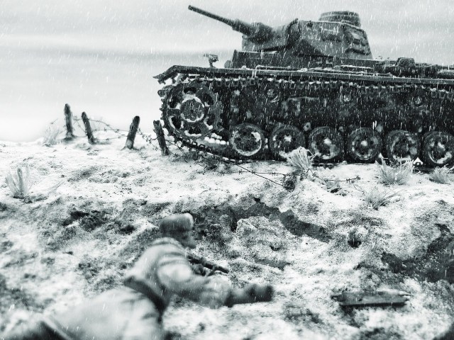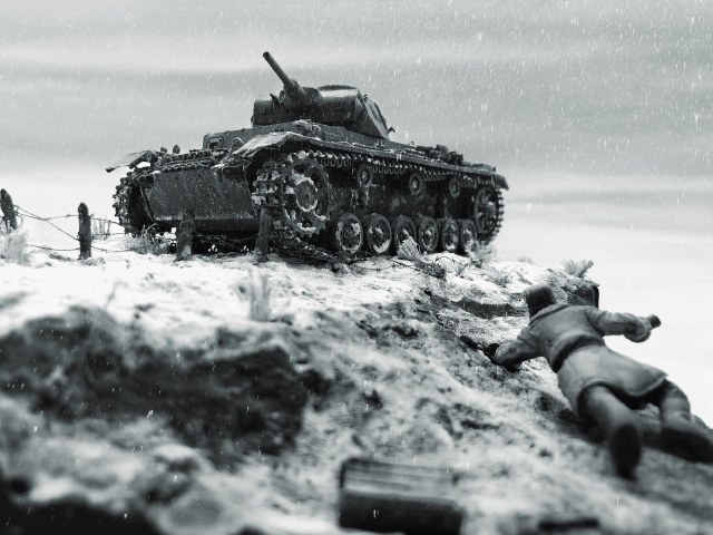 атмосферно, бойцу бы голову поднять, чтобы он на броню смотрел, а ствол во горизонту опустить, а то вроде бой, танк в атаку идет, а наводчик в небеса целится