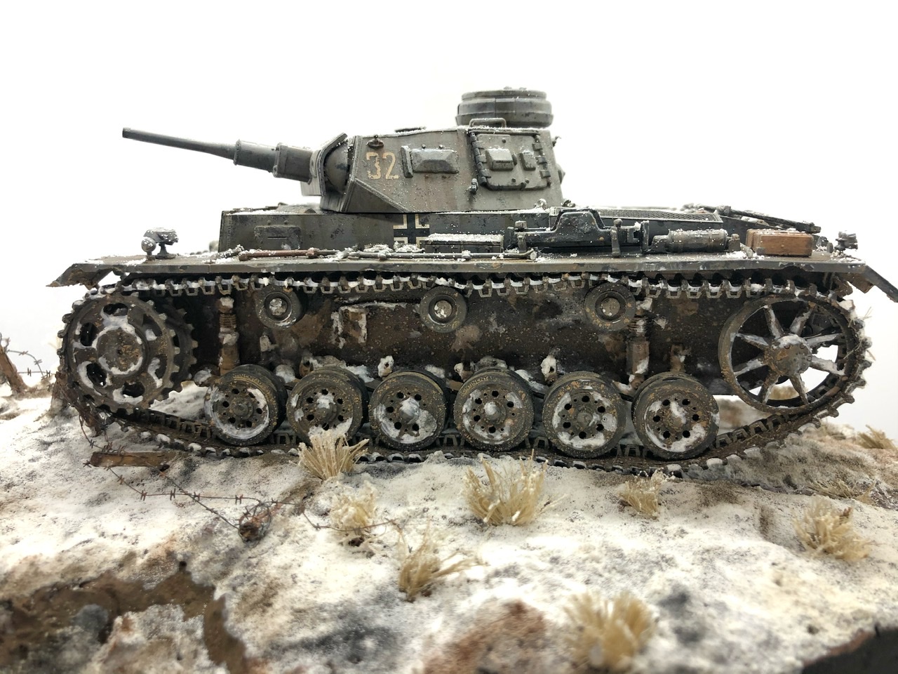 Владимир, я обратил внимание на вашу иммитацию снега. Должен сказать что немногим моделистам, даже с "опытом", удаётся с первого раза так убедительно его (снежный покров) передать. Отлично!