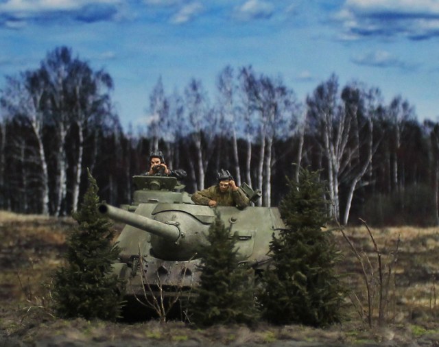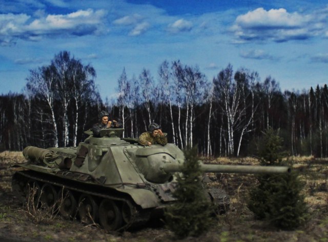 Вот вроде бы и все. Спасибо всем, кто отвечал на вопросы, делился опытом. И спасибо моей жене, главному эксперту по "реалистично-нереалистично", "смотрится - не смотрится", и дочке, которая помогала собирать мох для елок, и уже умеет отличить танк от самоходки))