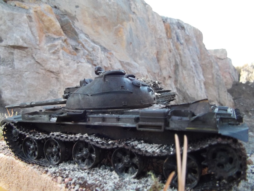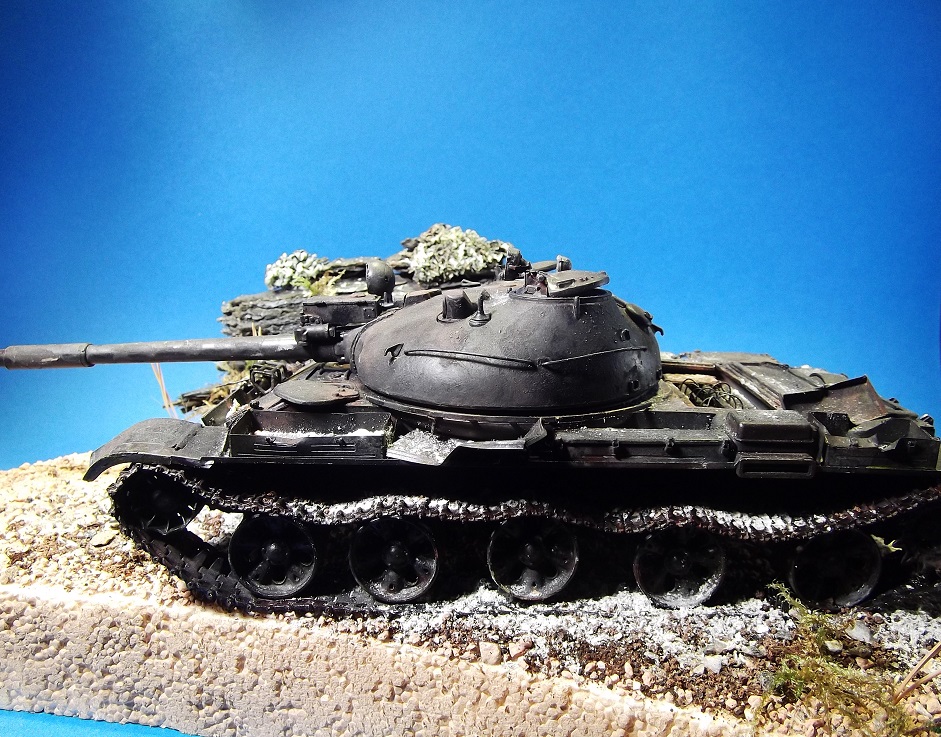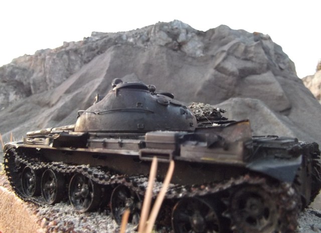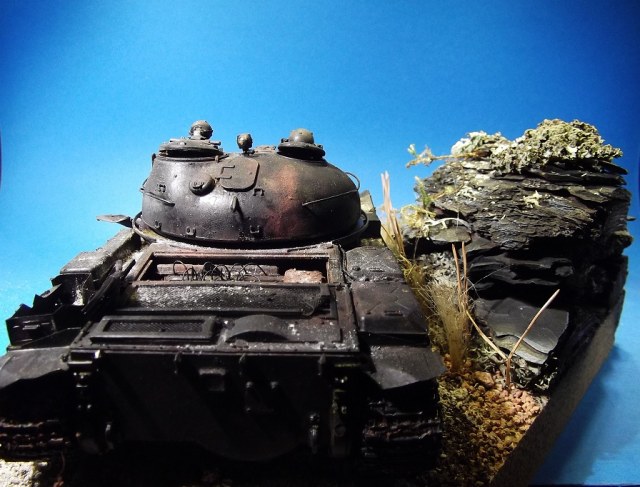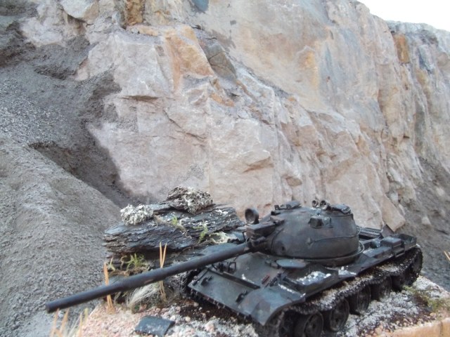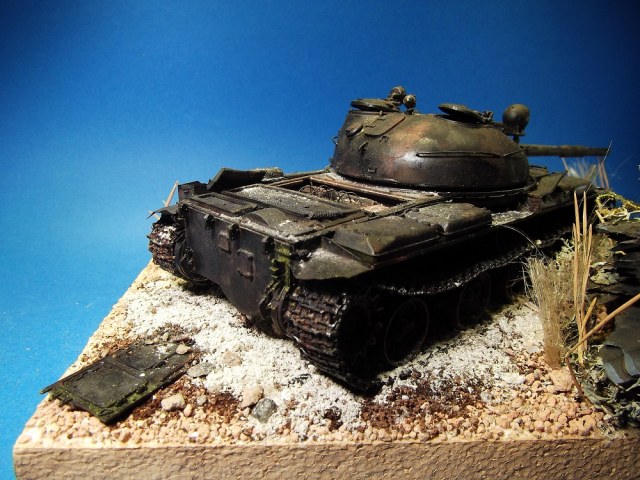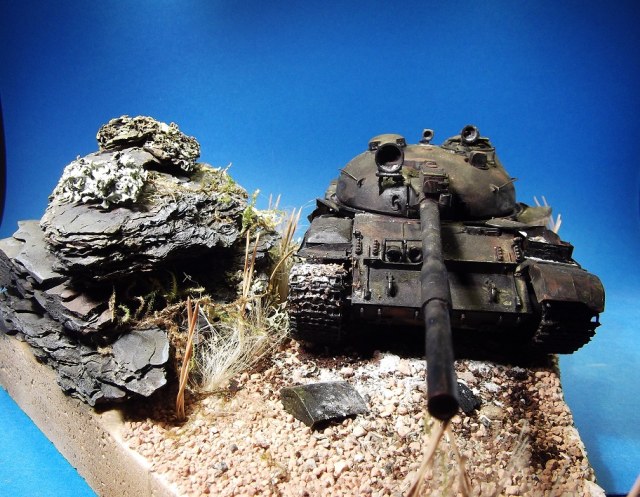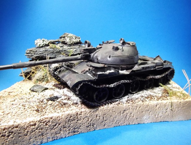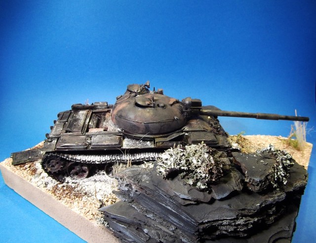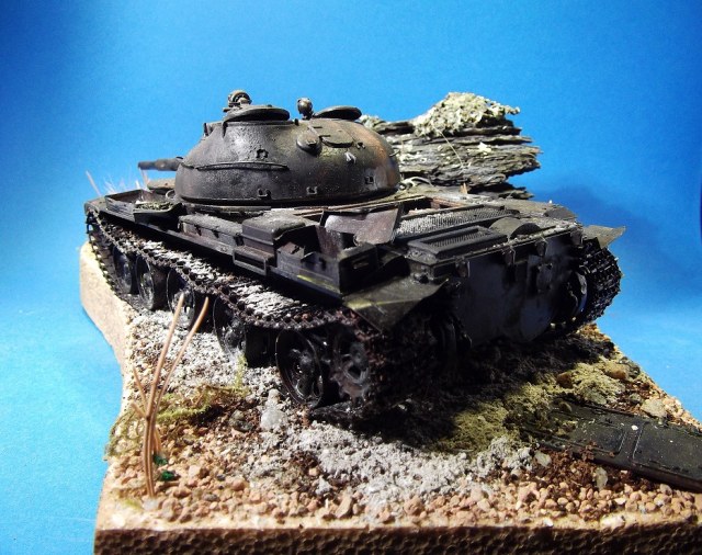 После многих великолепных работ Геннадия Завражнего, загорелся создать в своей коллекций серию брошенной и забытой техники. Просмотрел большое количество фотоматериала и решил делать некий собирательный образ из увиденного, не привязываясь к конкретной машине. Для каждой модели делать небольшую подставку по теме. Первая модель Т-62 (образца 1975 года) от Трумпетера.