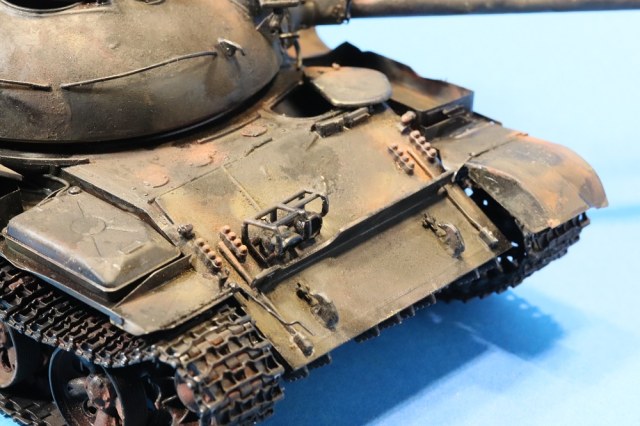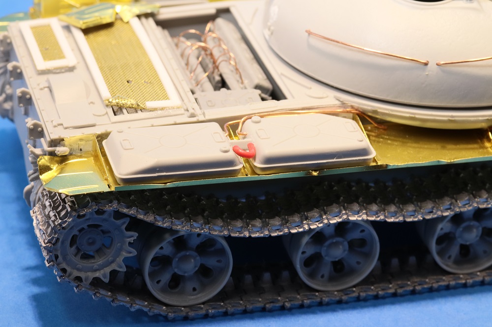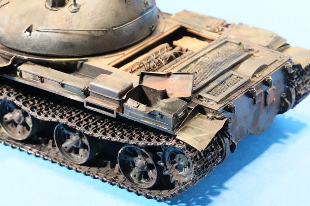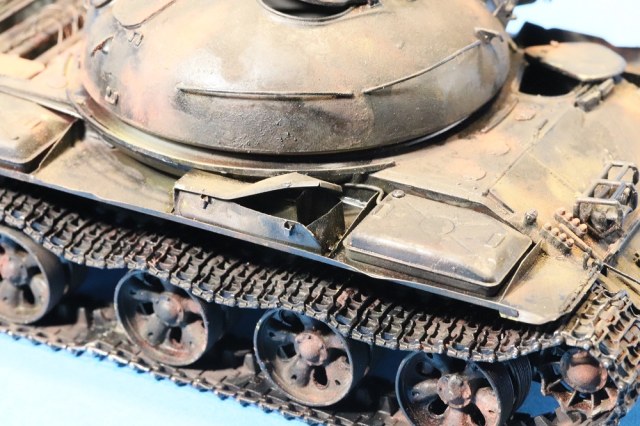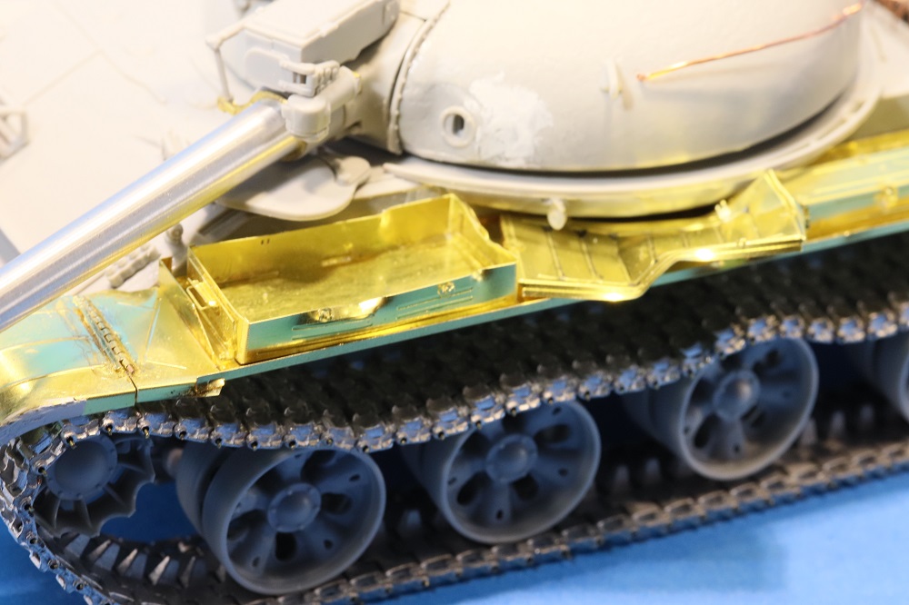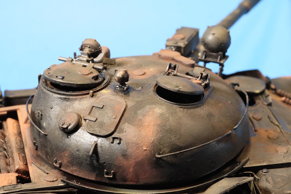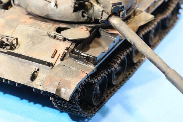 Несколько раз пересматривал работу... В целом работа практически удалась. Делая такие модели, всё же надо больше уделять внимание матерной части и мелочам. С прицелом Глеб Пермяков уже написал, но вот мелочёвка портит такой титанический труд. Элементарной проводки не хватает, торчащих в разные стороны проводов, ручек от топливных баков и т.д. и т.п... Больше требуется просматривать фотографии настоящих танков. След от толкателя на самом видном месте.