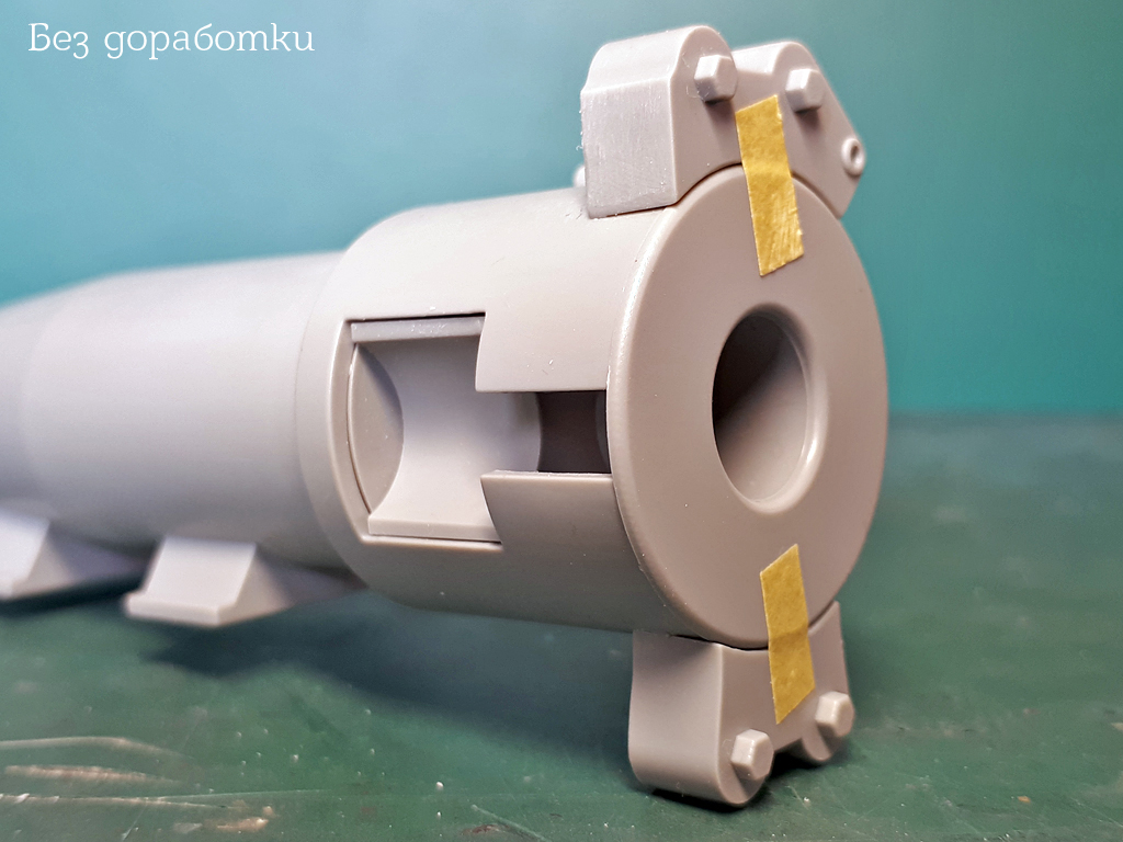 - Казенная часть ствола в наборе выполнена с грубыми ошибками (см. фото в карусели, с пометкой: "Без доработки"). Исправил узел, сверяясь с фотографиям прототипа.