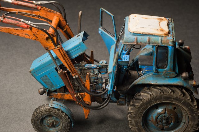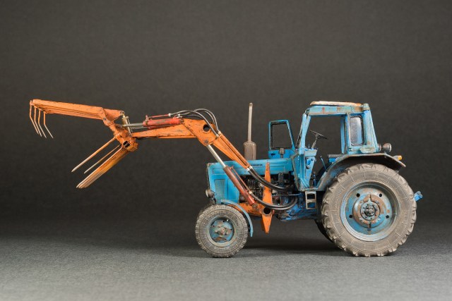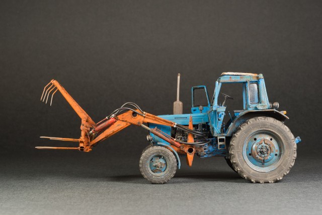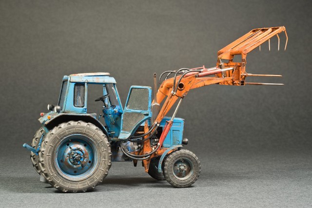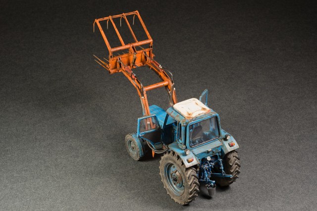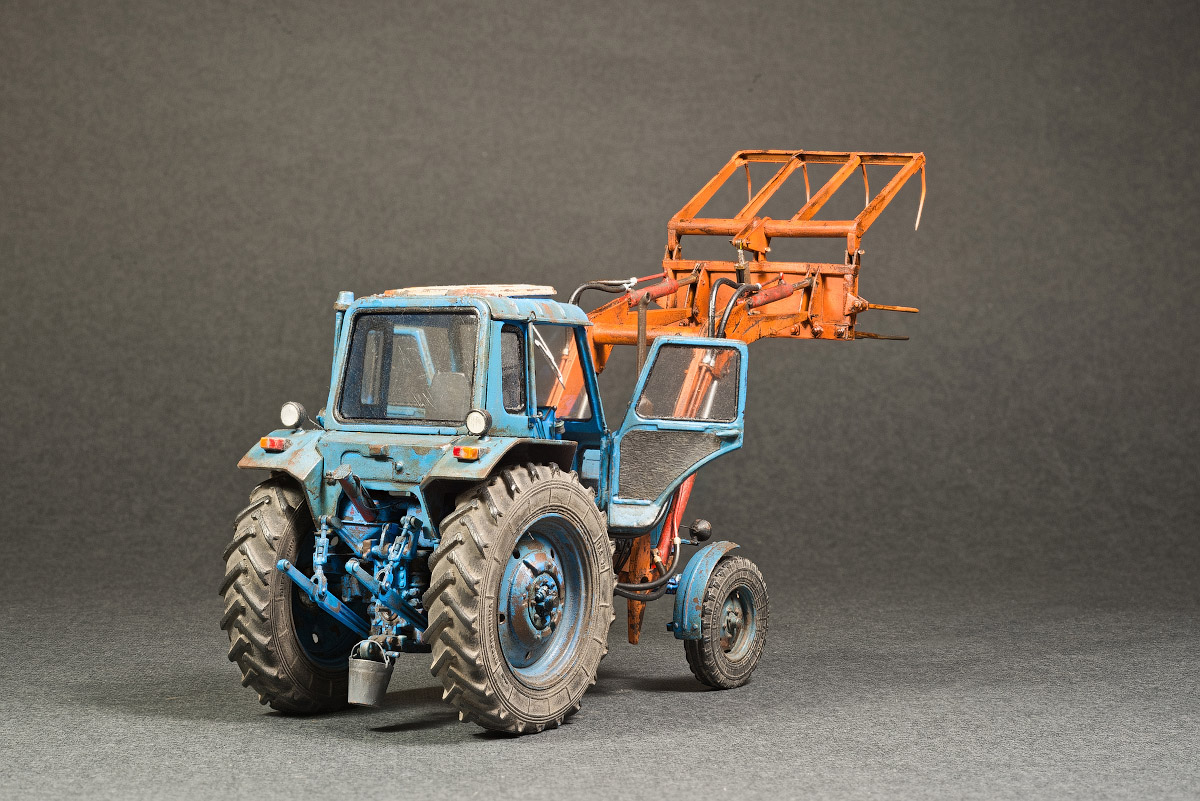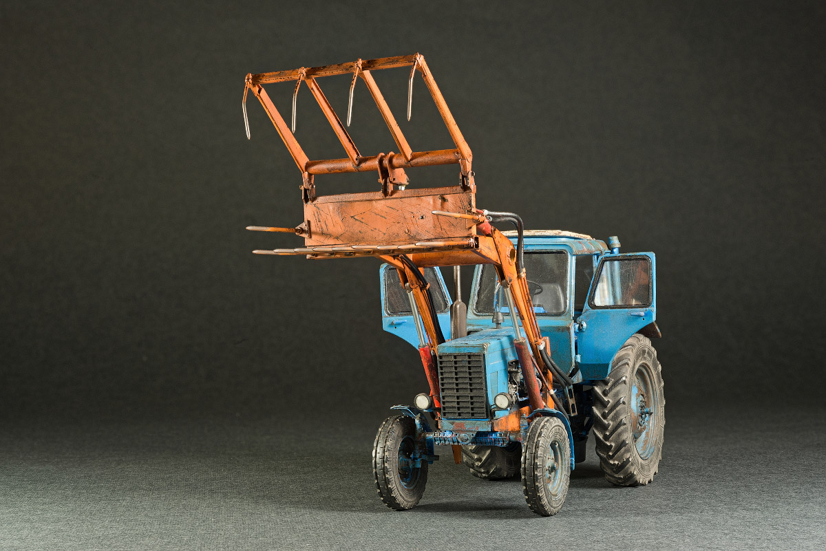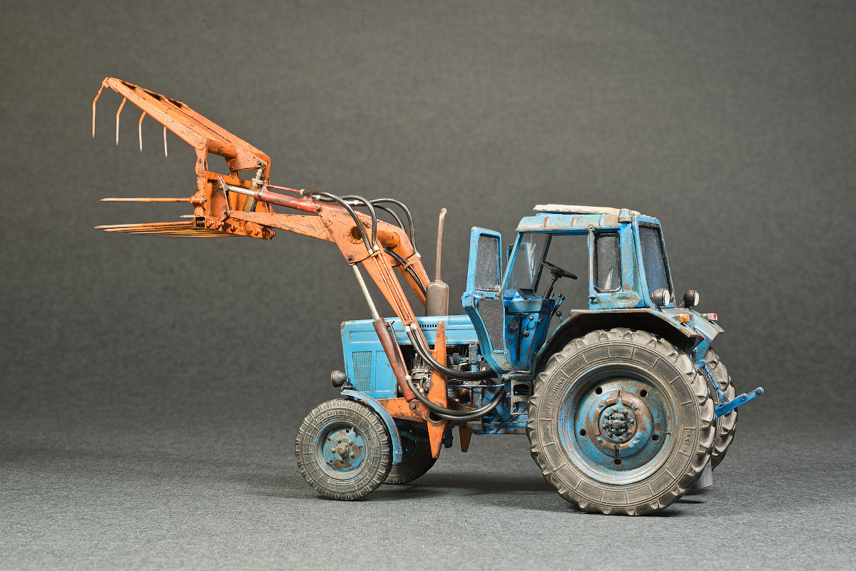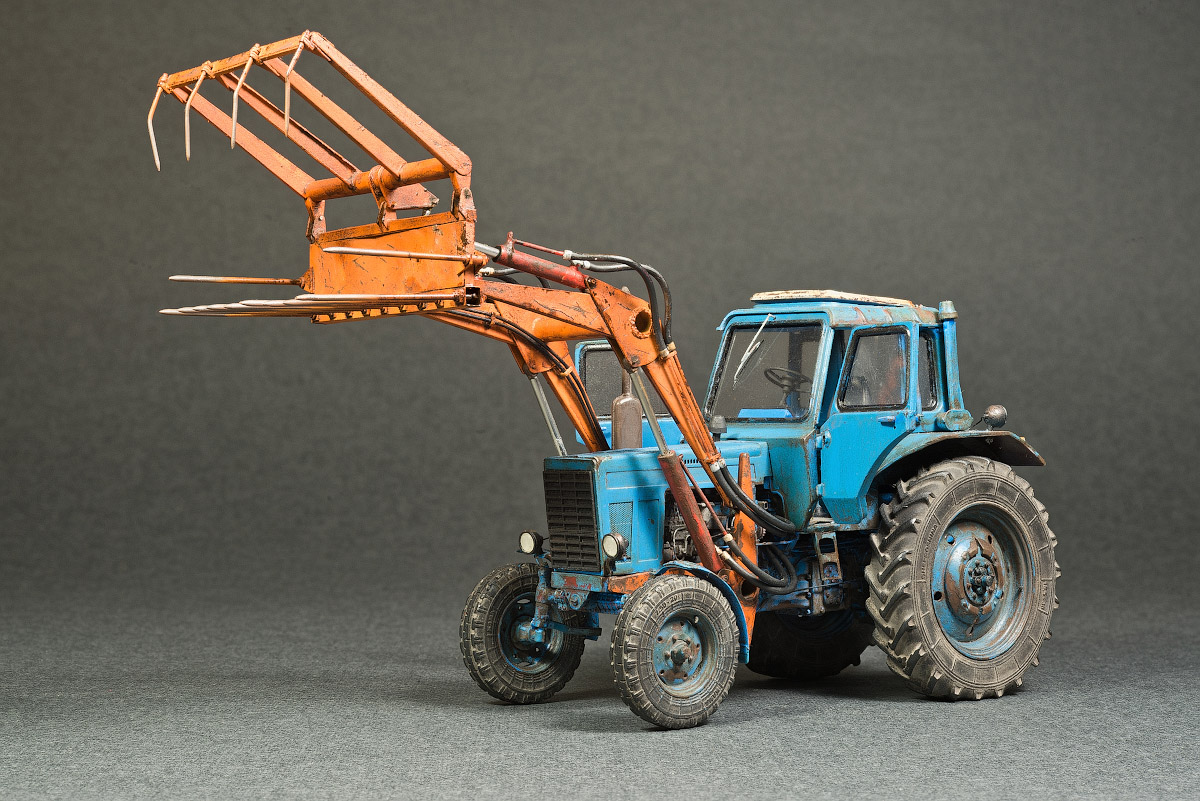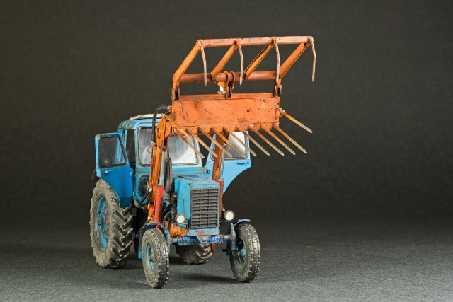 Представляю свой вариант одного из самых распространенных тружеников села — трактор МТЗ-80. Набор довольно известен и подобных моделей собрано немало. Его можно собрать из коробки, что не займет много времени, в итоге получится вполне себе знакомый и узнаваемый образ. А можно и так: благодаря огромному количеству информации в сети и вполне себе бодрых представителей, колесящих по городам и селам, есть возможность по полной программе погрузиться в матчасть. В этом случае сборка обретает новый оттенок и за этим увлекательным занятием можно потратить немало длинных вечеров. Мой вариант сборки с полным погружением освещен тут: https://karopka.ru/forum/forum191/topic30600/ В качестве вишенки я оснастил свой трактор КУНом, разработанный Денисом (Modeller), который дополнил вилами. Отдельная благодарность Алексею Алексеевичу за неоднократные случаи крайне полезного содействия.