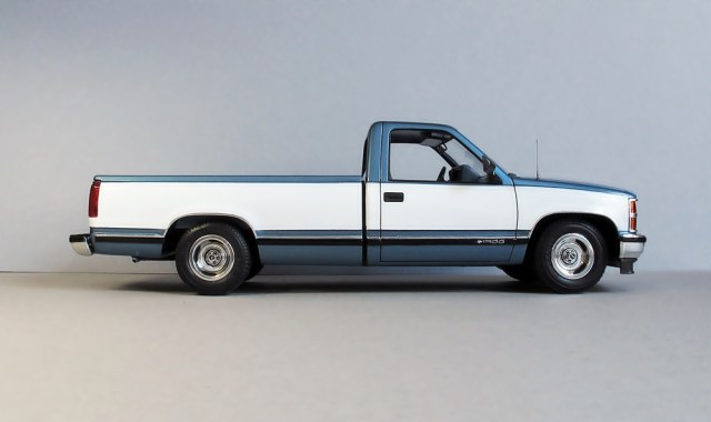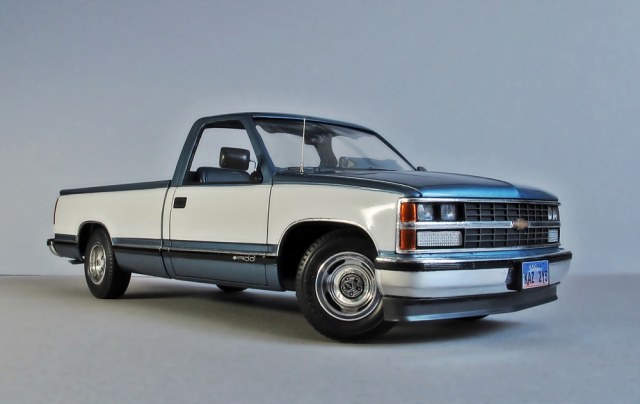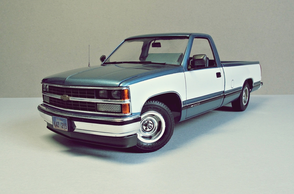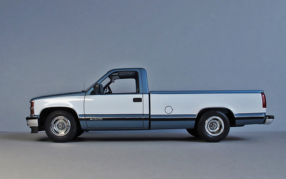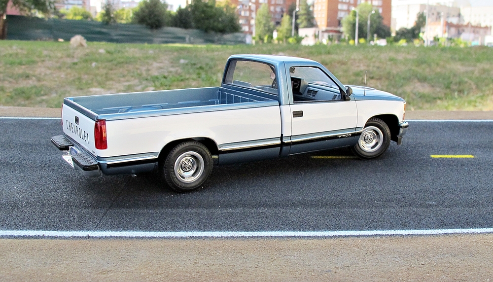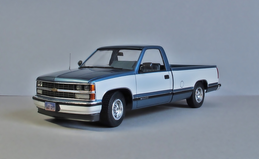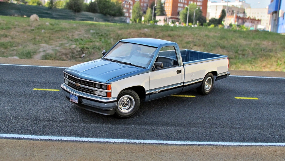 Приветствую уважаемое сообщество!Представляю на ваш суд свою крайнюю работу Chevrolet Silverado C-1500 .Модель участвовала в конкурсе на дружественном форуме.Сборка традиционно в основном из коробки ,хотя к АМТ этот термин не очень применим,так как почти каждую деталь приходится в той или иной степени дорабатывать..Покраска ,профессиональные авто краски и 2к авто лак.