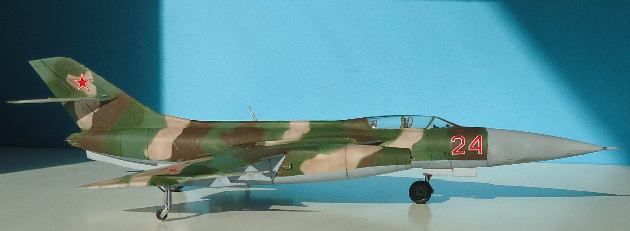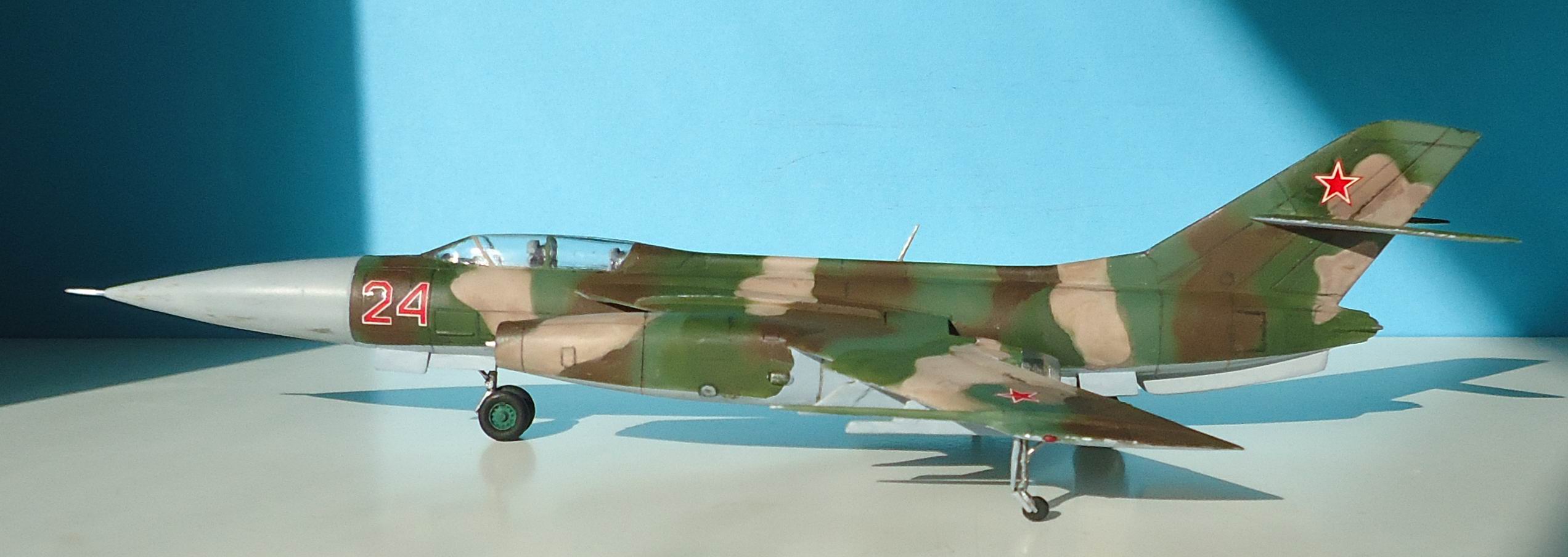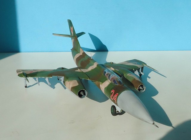 Гондола правого двигателя задрана вверх, колеса на передней и задней стойках приклеены криво! Грань радиопрозрачной краски на носовом конусе окрашена криво, ровно как и граница камуфляжа с нижним голубым! Диски колес шасси тоже окрашены на тяп-ляп! Камуфляж "аля я так вижу" - да и ... с ним! Расшивка- будто дорисованная простым карандашом, какие-то пятна на нижней части носового обтекателя, похожие на не стертую смывку, рандомно нанесенные мазки "серебристого" цвета похожие на фекалии птиц! Редкая в наше время модель красивого самолета была потеряна! МогЁте, Александр - МогЁте!!!!