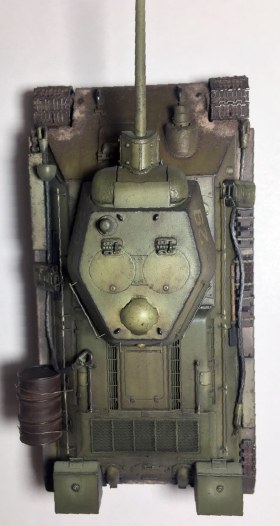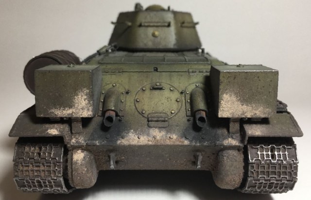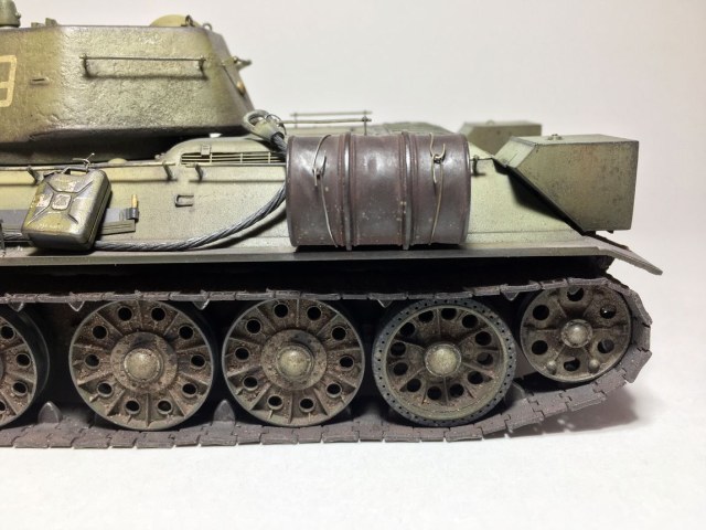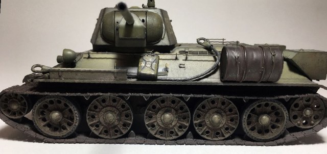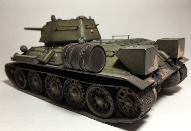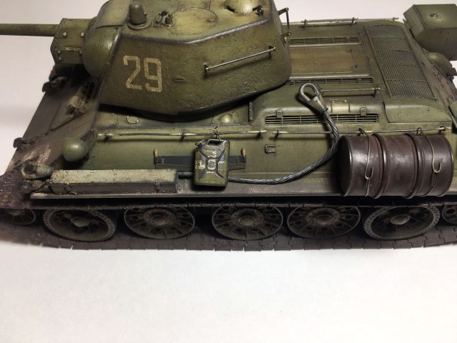 Сборка аккуратная. Это все, что можно сказать. Очень темная окраска и съёмка. Следов эксплуатации не рассмотреть, а грязь больше похожа на пепел. И крепление бочки - просто жесть. Хотя, с трудом, но видно, что модель весьма неплоха.