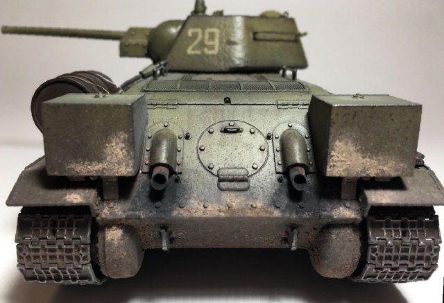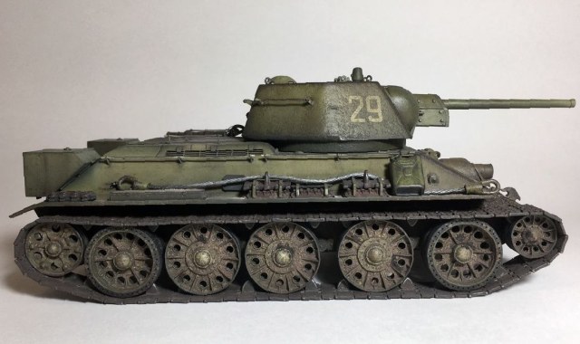 Спасибо за отзыв. По модели это скорее я так сфотографировал темно(никак не получается нормальные фотографии делать, хотя фотографировал на улице при солнечном свете.) потому что красил коричнево зелёным Аканом, а он светлый. Или может перестарался с масляными точками-хотел сделать более потрепанным.