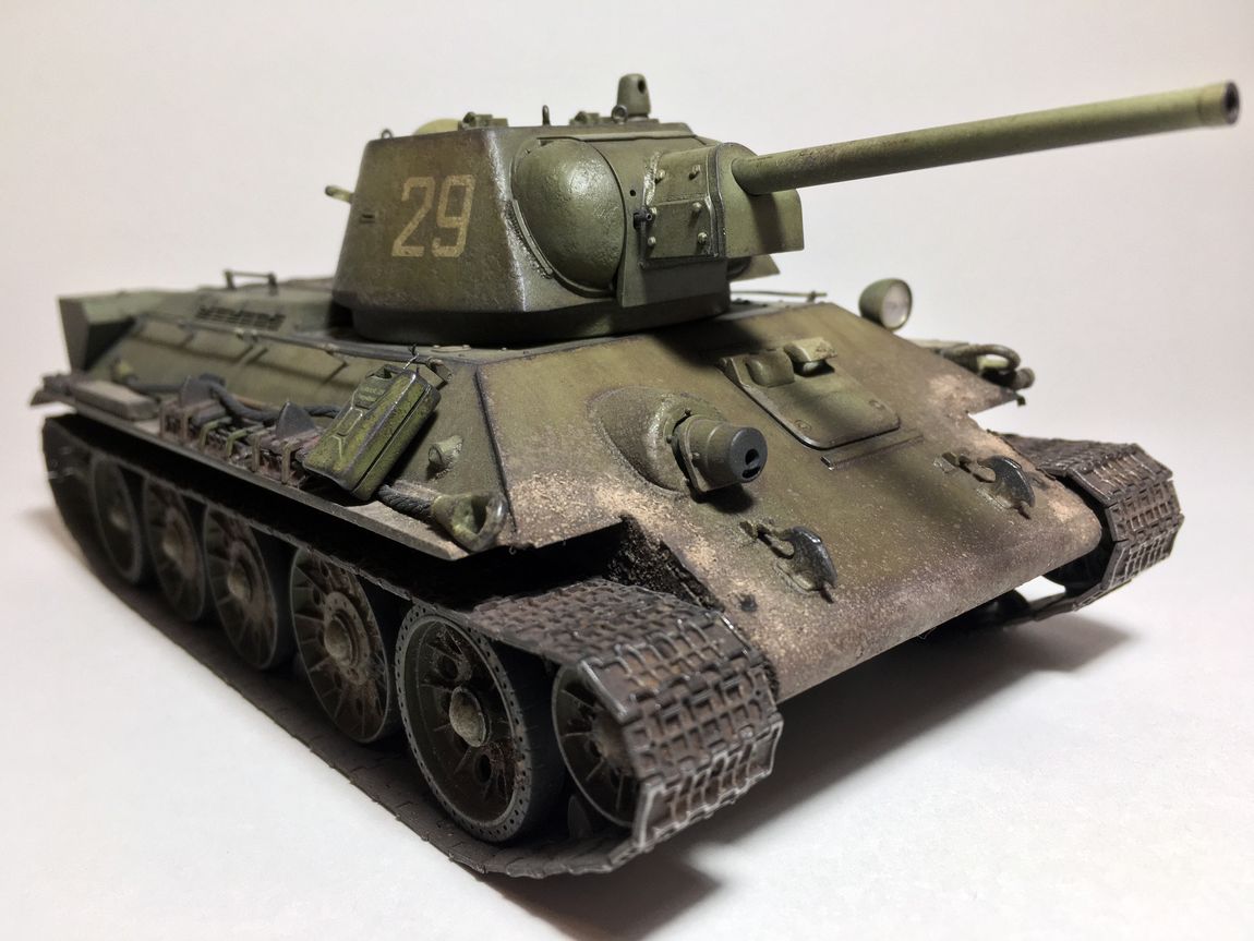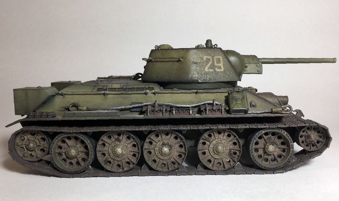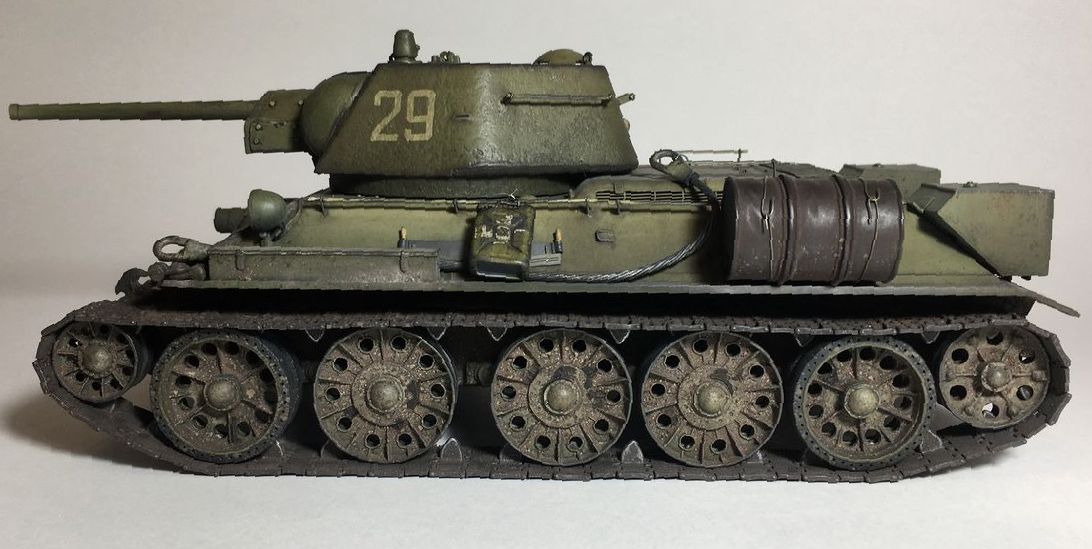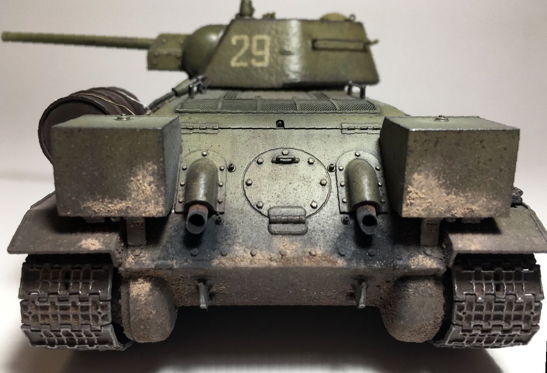Доброго времени суток Уважаемые моделисты. Хочу представить вою модель танка От-34. Модель от Звезды. Проблем при сборке не было. При сборке были использованы травленные сетки мто, точеный ствол орудия, добавил курсовой башенный пулемёт, огнемёт -дополнение от Арма моделс,тросы Микродизайн , бочка и канистры-Тамия, фара Эльф( потерял стекло пришлось подбирать из имеющихся материалов), сделал проводку к фаре, пилу заменил на травленную, траки -Миниарт, также высверлил выхлопные патрубки, поручни из проволоки.Красил красками Акан , далее смывка, масло , сколы.Следы эксплуатации наносил химией Аммо миг и зип макет. Буду рад конструктивной критике и советам-где что не так.