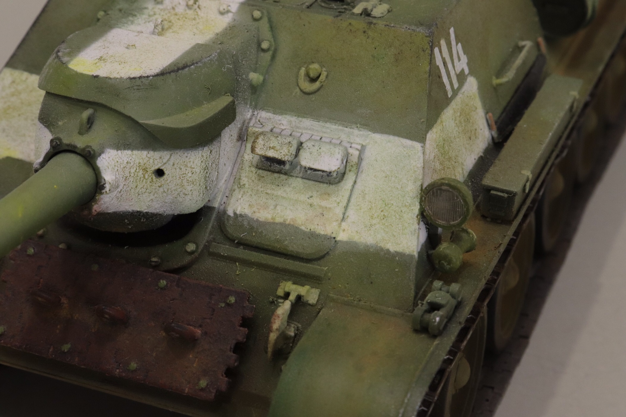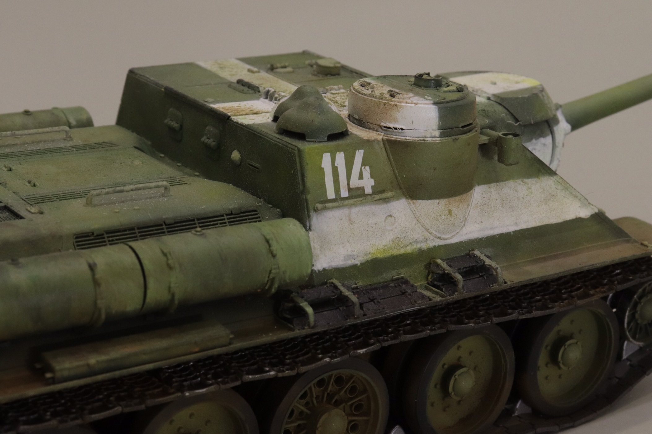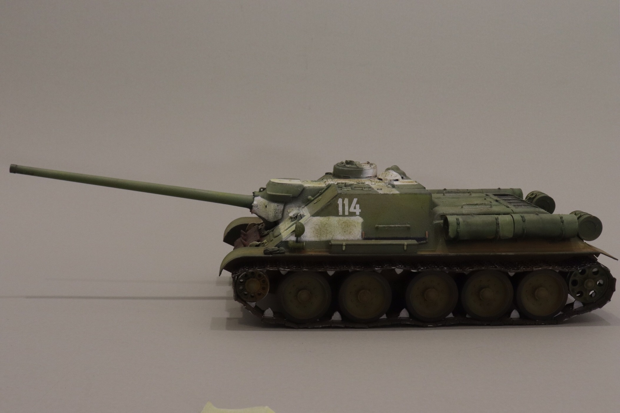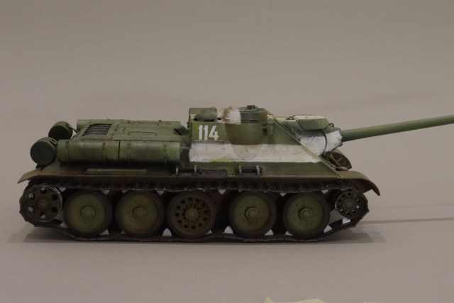 Здравствуйте, выставляю уже вторую свою модель на этот сайт. Изначально, эта модель планировалась на прошлогоднюю Технику Победы, но легкая сборка простой модели растянулась на 2 года. Окраску проводил стандартно, из допов использовал только траки Miniart.