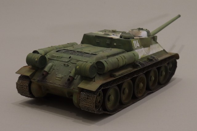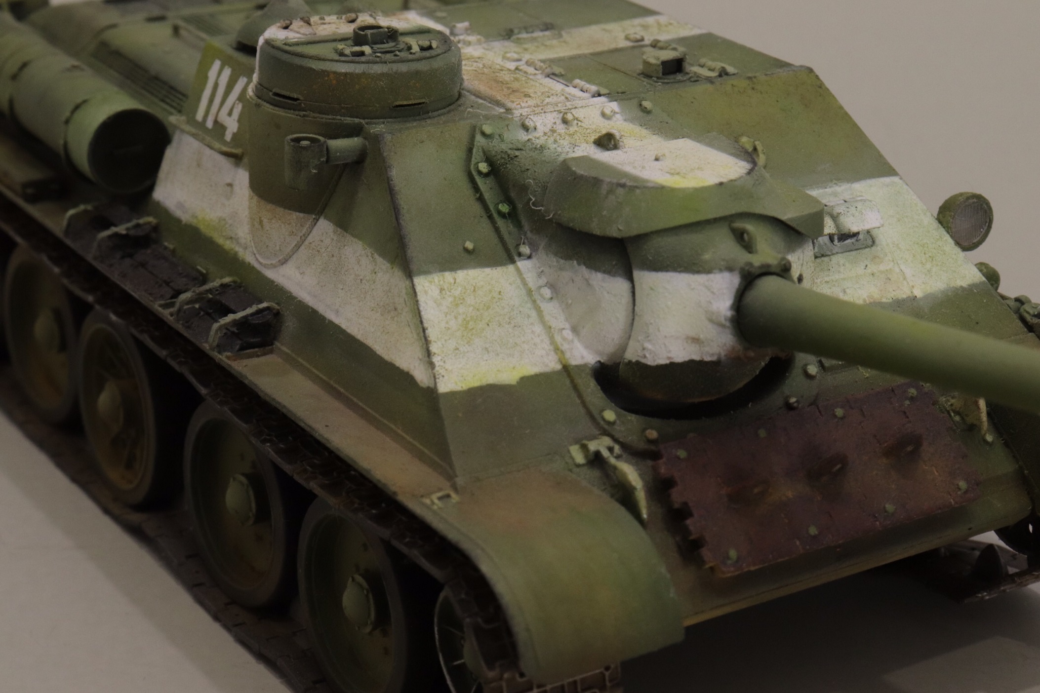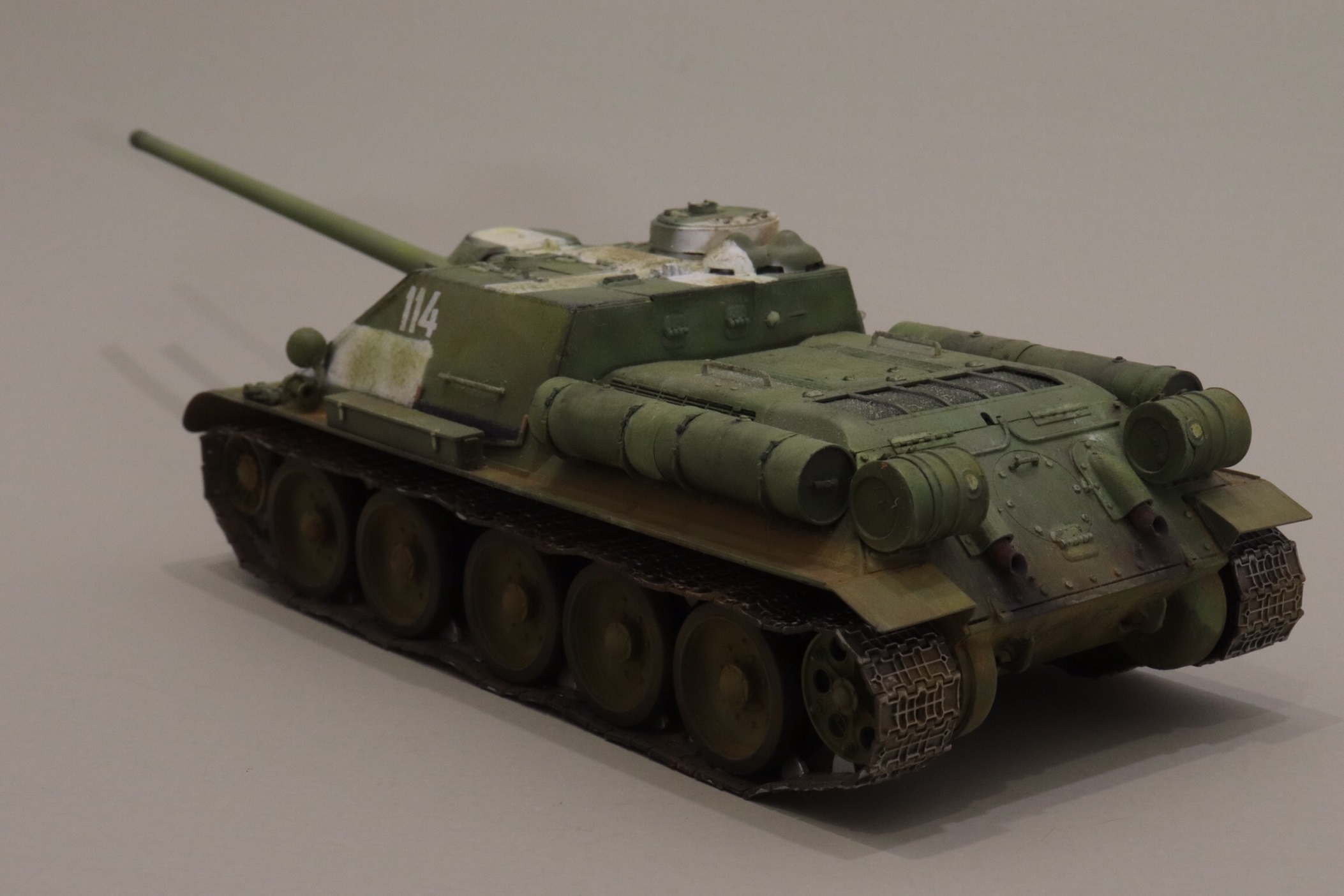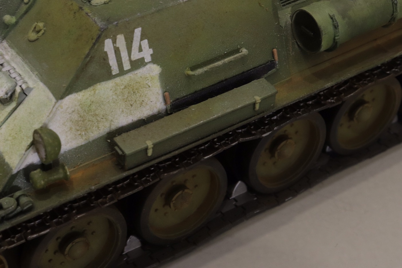 Здравствуйте, выставляю уже вторую свою модель на этот сайт. Изначально, эта модель планировалась на прошлогоднюю Технику Победы, но легкая сборка простой модели растянулась на 2 года. Окраску проводил стандартно, из допов использовал только траки Miniart.