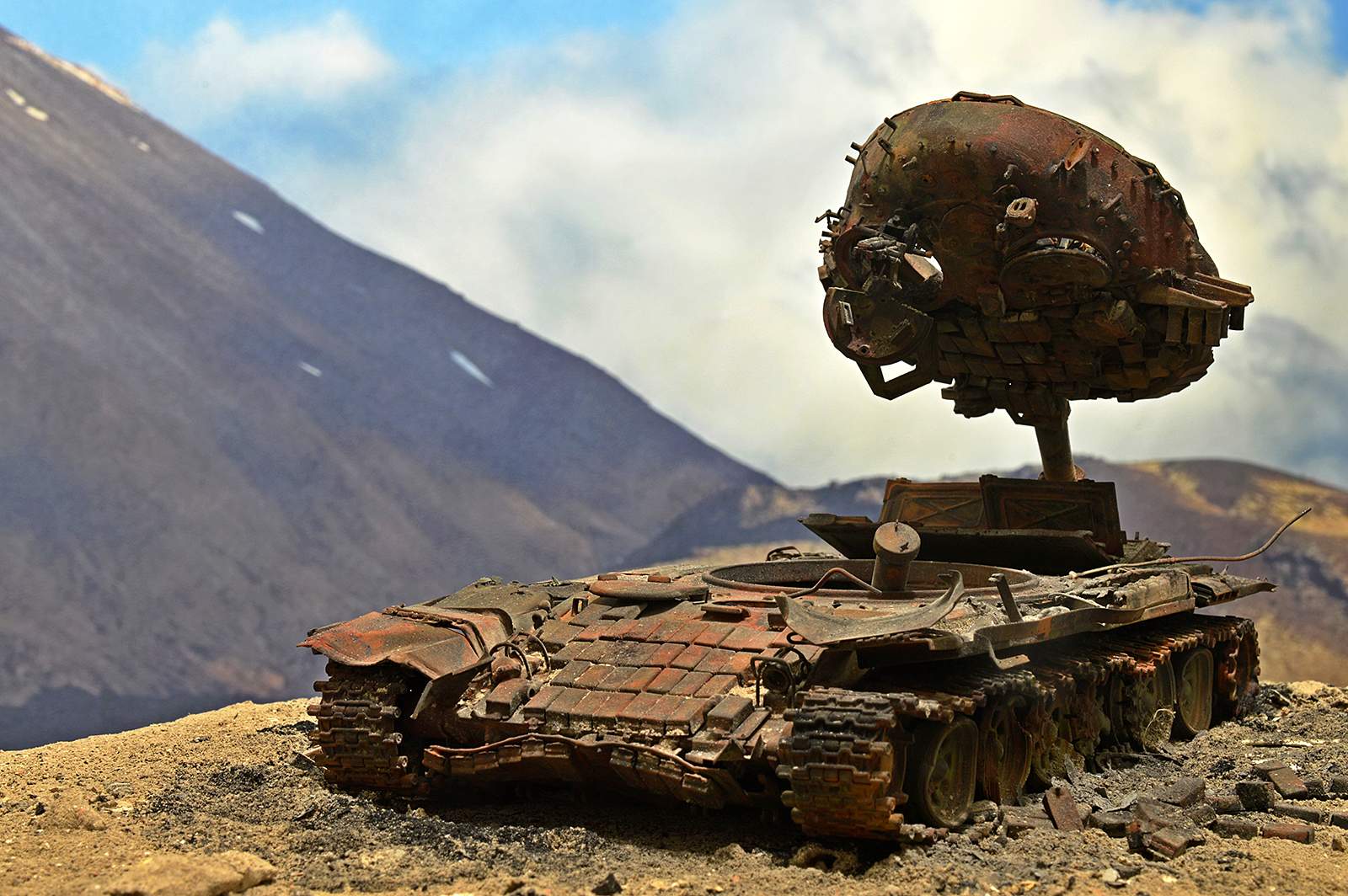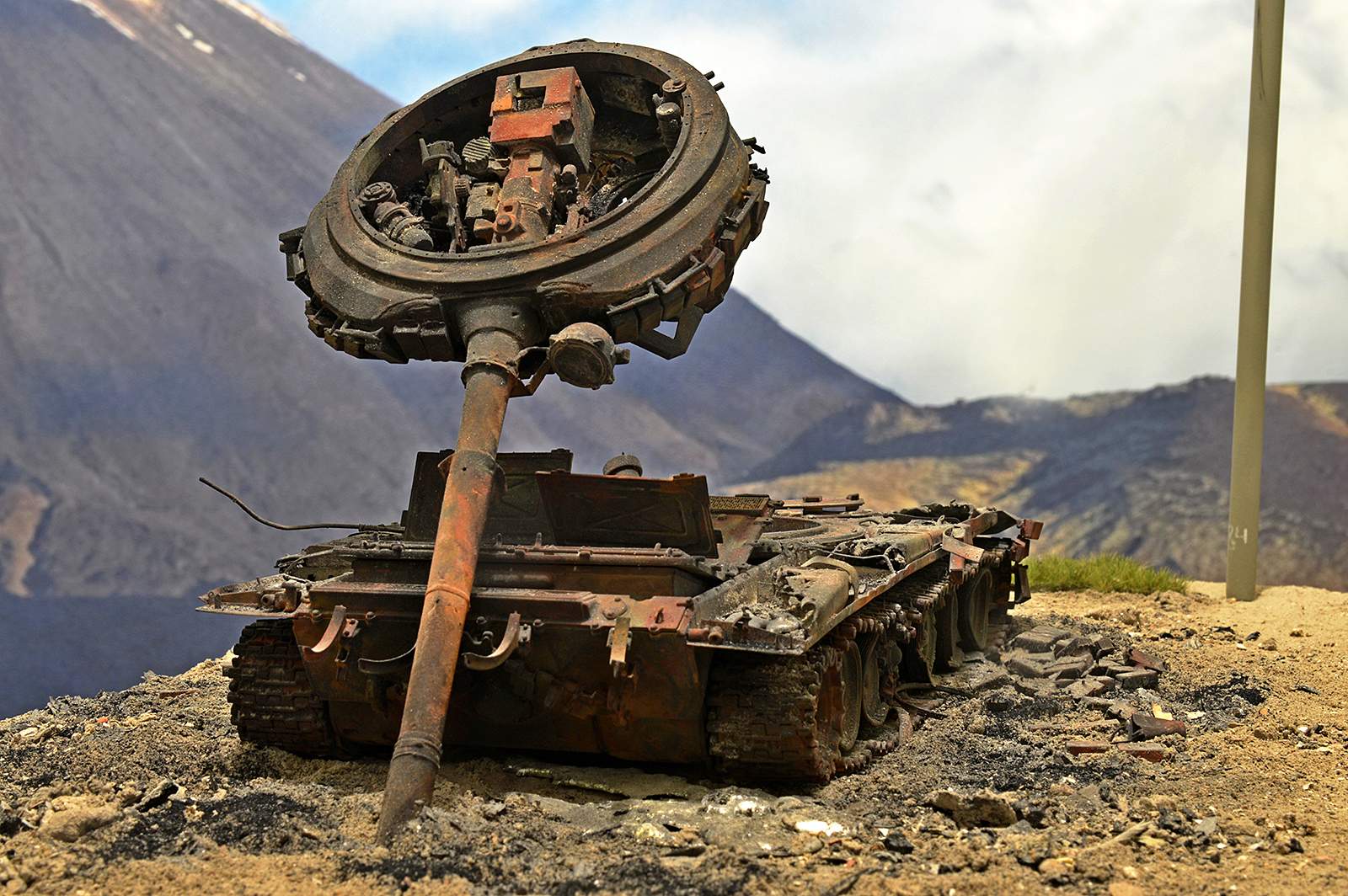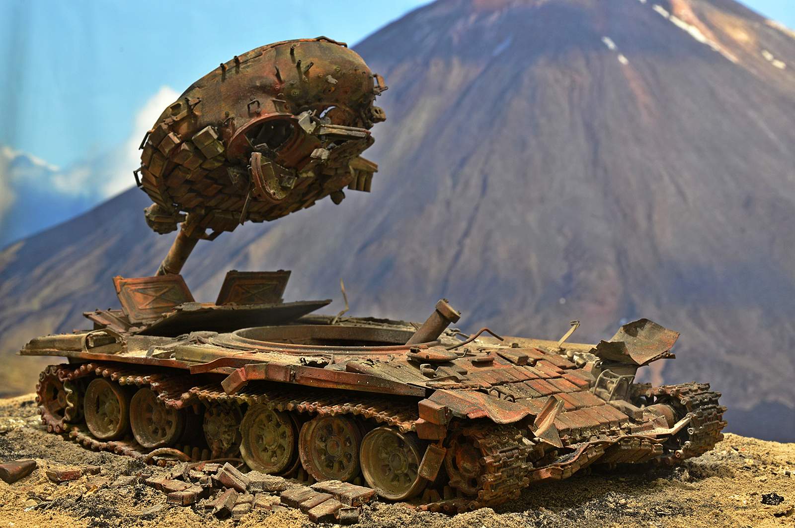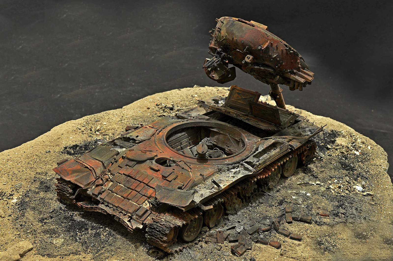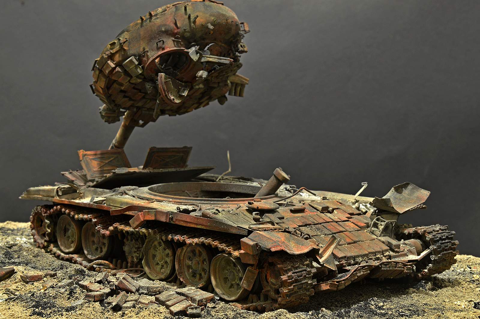 Отлично! Полная иллюзия разбитого, горелого танка. Воспроизведение интерьера - отдельный БОЛЬШОЙ ПЛЮС! Браво.