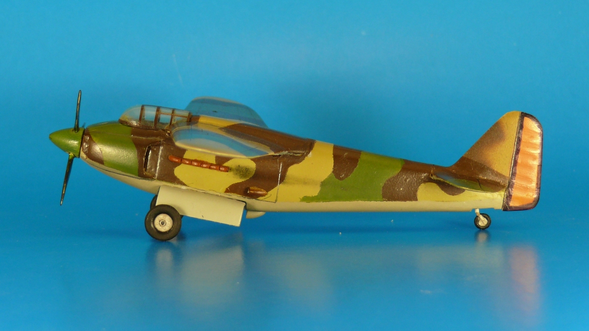 Всем доброго времени суток, недавно копаясь в старых закромах нашел эту модель, голландский экспериментальный истребитель Koolhoven FK-55. Это мой первый самодел сделанный в 1998 году по схеме из журнала «Крылья Родины» и технологиям описанным в книге «Самолет на столе» О.В. Лагутина. Немного подшаманил и решил выставить, может кому то будет интересно. Фюзеляж и крыло выполнены из дерева (скорее всего липа) хвостовое оперение, выхлопные патрубки, створки шасси и воздухозаборники - пластик от холодильника, стойки шасси из скрепок, колеса и задняя стойка от других моделей каких не помню, винт противоположного вращения мне тогда показалось сделать сложно, поэтому установил обычный трехлопастной с коком точеным из дерева на дрели, стекло давленое из одноразовых стаканов (раньше их делали из оргстекла) на деревянном пуансоне. Сначала все было покрыто лаком, зашкурено, потом загрунтовано белой нитрой, после чего нанесен камуфляж из зубогрофа по трафаретам из мокрой газеты. Выхлоп скорее всего печная сажа.