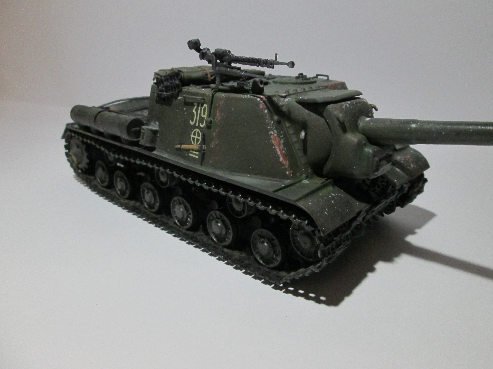 Приветствую вас,моделисты.Попробую выложить свою первую модель ИСУ-152,после перекраски аэрографом и капремонта.