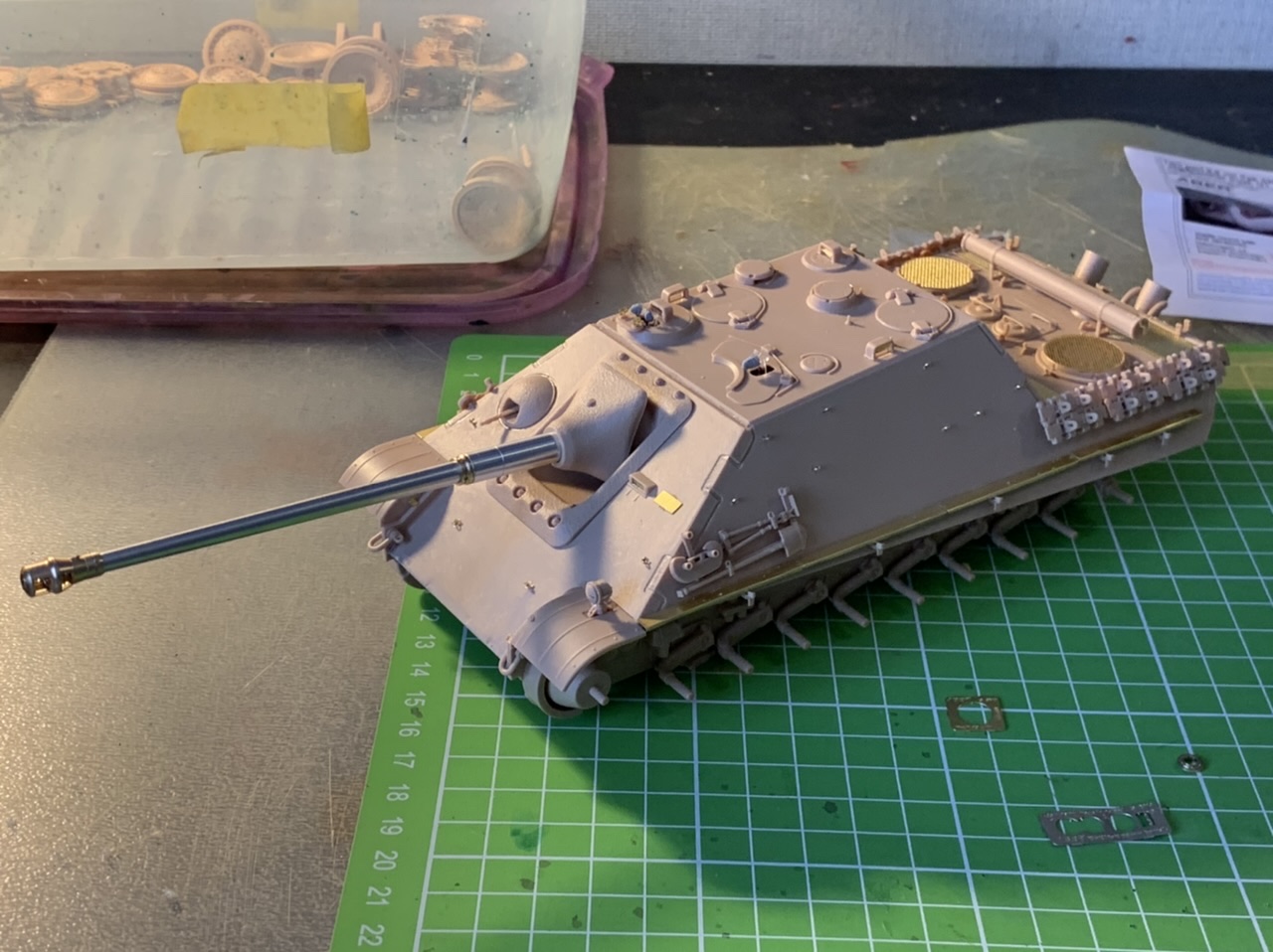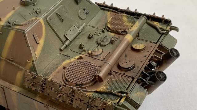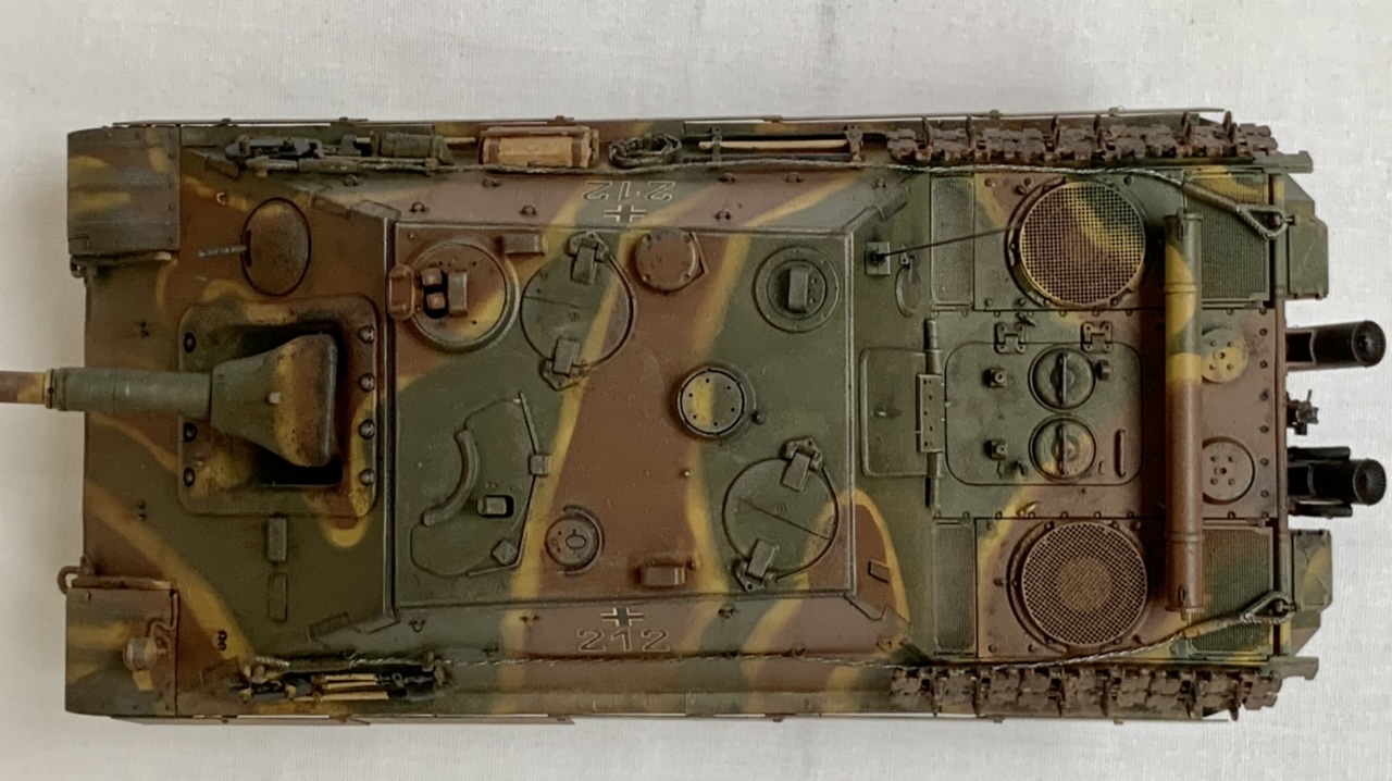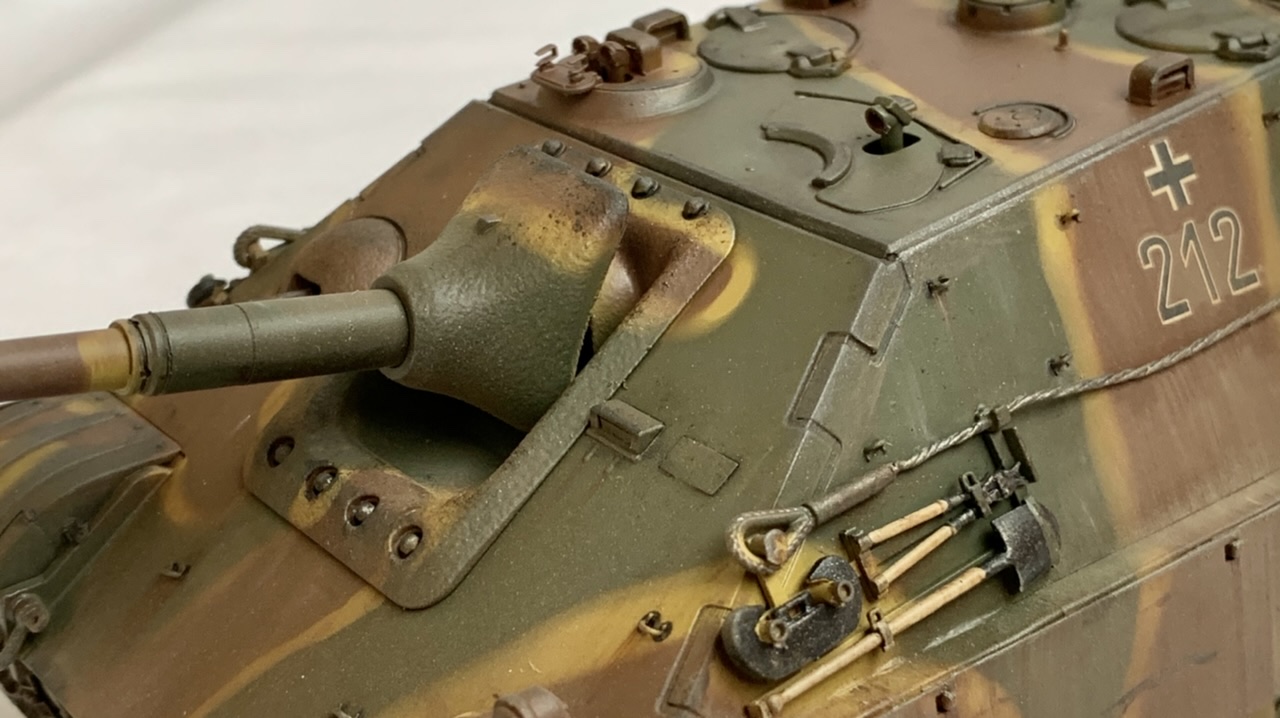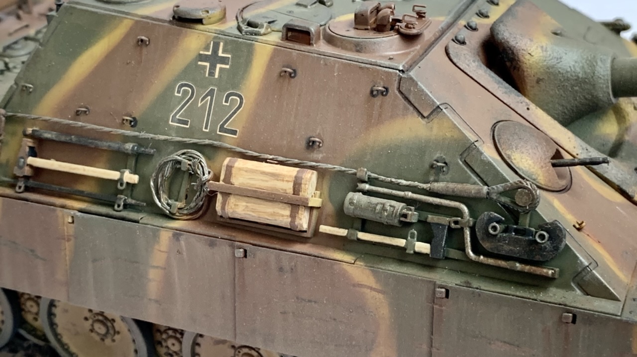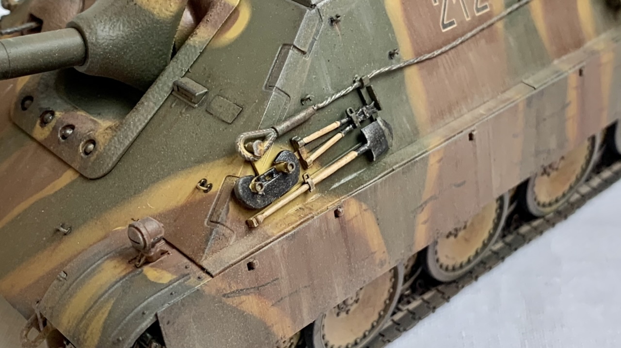 глянул ваши работы и создалось впечатление, что вы не понимаете смысла смотровых приборов, так как постоянно их закрашиваете. Причем в наборе они не зря даются прозрачными деталями, как бы намекают. Ну и шанцевый инструмент окрашен небрежно. На мой взгляд такие мелочи портят всю картину.