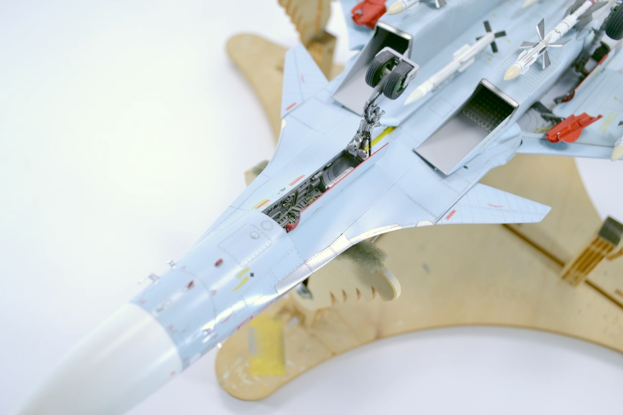 Отличная модель, великолепная проработка, а гидравлика, а ниши с обвязкой - просто шикарно. Сам делал Су-27 от Академа и много перепиливал (http://www.rumodelism.com/wiki/doku.php/kin/buildsu27).