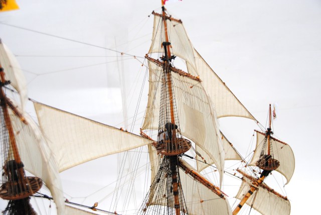 Кроме того, на чертежах у Будрио также нижние паруса изображены без сезней. Одним словом, я им поверил и сделал так же.