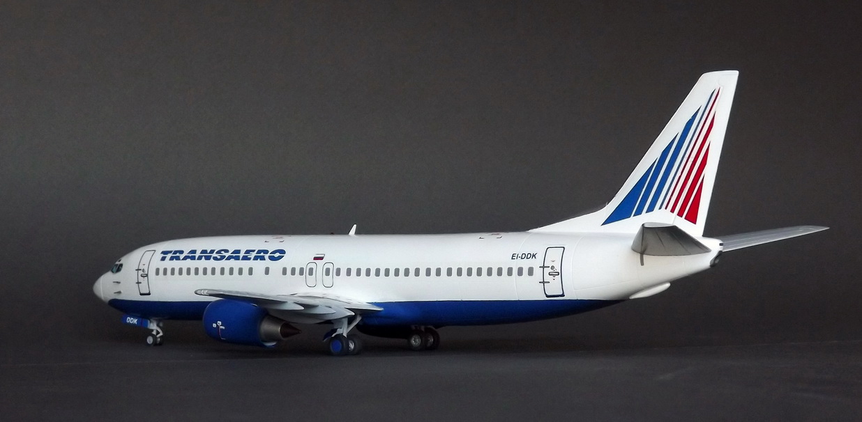 С завершением, результат достойный. Только законцовки крыльев у него должны быть красные и триколор немного дальше назад относительно аварийных выходов в оригинале.