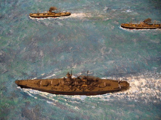 "По отдельности", деталировка не впечатляет - но во-первых для диорамы это и не надо, а во-вторых я сужу про модель 2010 года с высоты 2020. Остаётся вспомнить Пикуля - как личный состав "Вашингтона" якобы сожалел о не состоявшейся встрече с "Тирпицем" - и ведь точно, янки раскатали бы его, "как бог черепаху" - броня немца рассчитывалась на британские 15 дюймов, а 16 дюймов американца он бы не перенёс. Правда, и тонкий броневой пояс "Вашингтона" был проницаем для немецких 380 на всех реальных боевых дистанциях... Если кто не в теме - "Худ" бронирован был примерно так же.