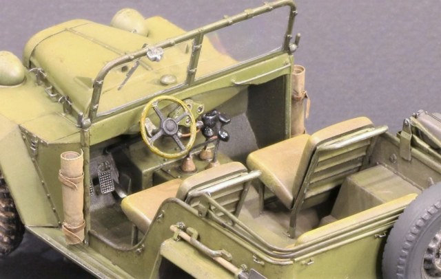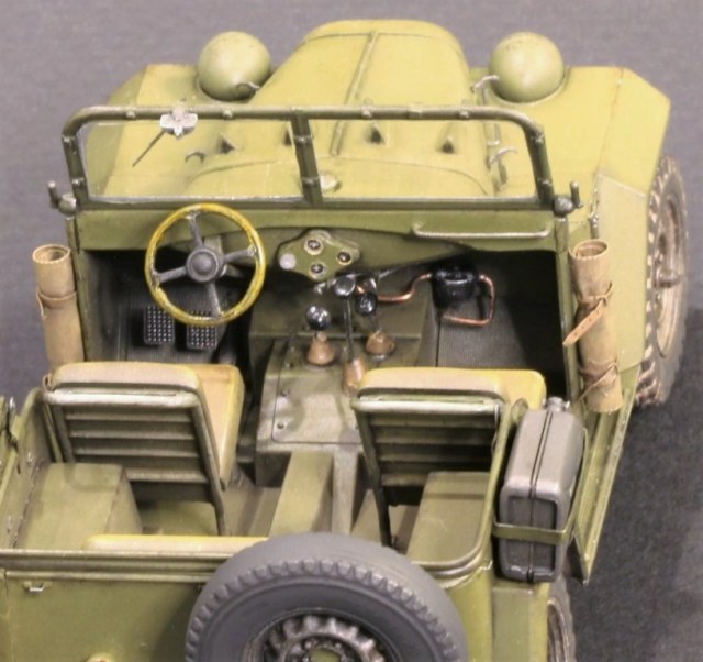 По дополнениям: Фототравление voyagermodel PE 35668, смоляные колёса от hobby planet 35205. Что было дополнено и переделано: в первую очередь переделал решётку радиатора на раннюю, переделал рулевое колесо на раннее, заменил ручки и поручни на проволоку, добавил передние амортизаторы передней подвески, заменил фары на Эльф, добавил топливопровод от бака к фильтру и дальше в подкапотное пространство, изготовил заново крышку заливной горловины топливного бака так как форма крышки из набора не соответствовала, добавил крепление, а так же ещё немного мелочёвки.