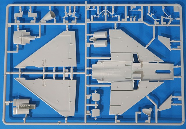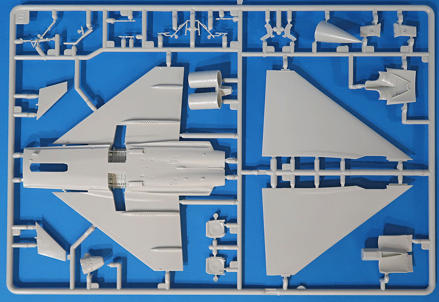 Литник В. Самый крупный. Низ центроплана с консолями, ПГО, верх консолей, воздухозаборник, нос, трубы двигателей.