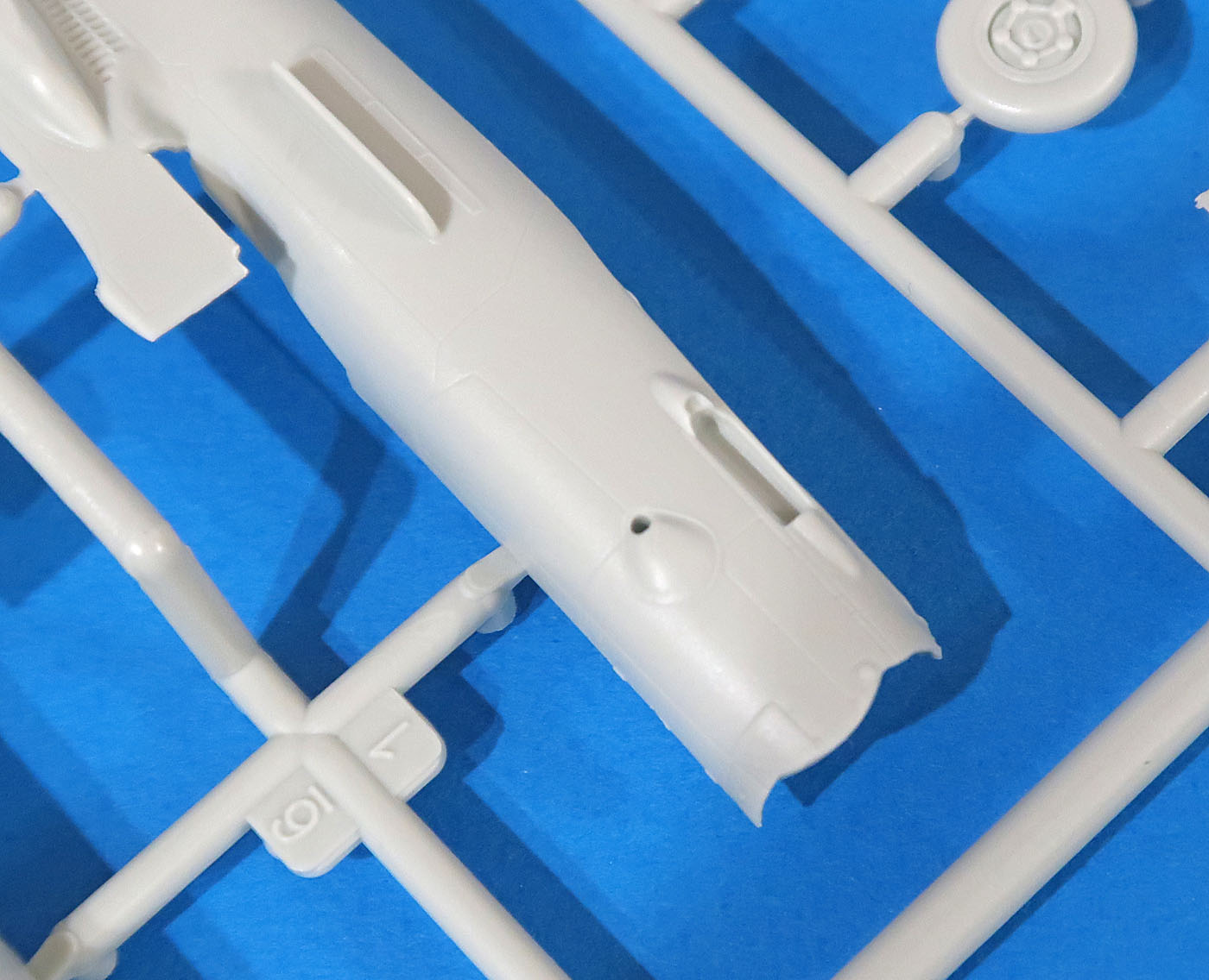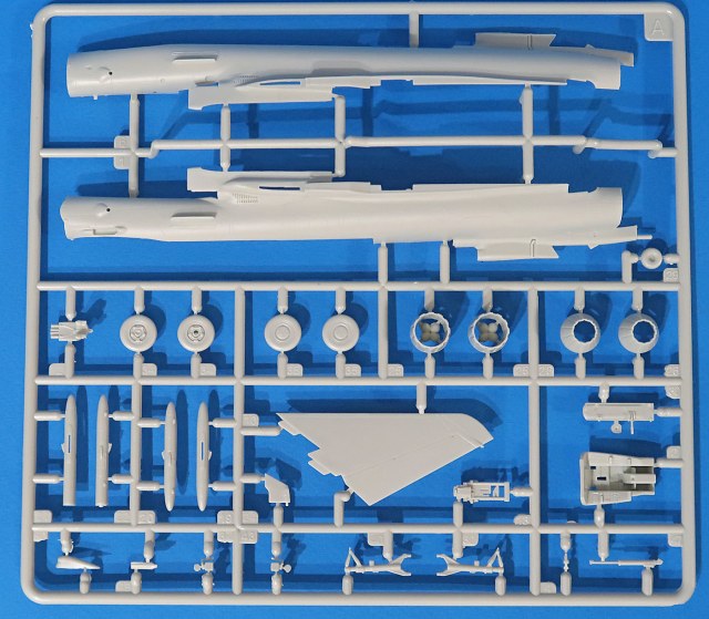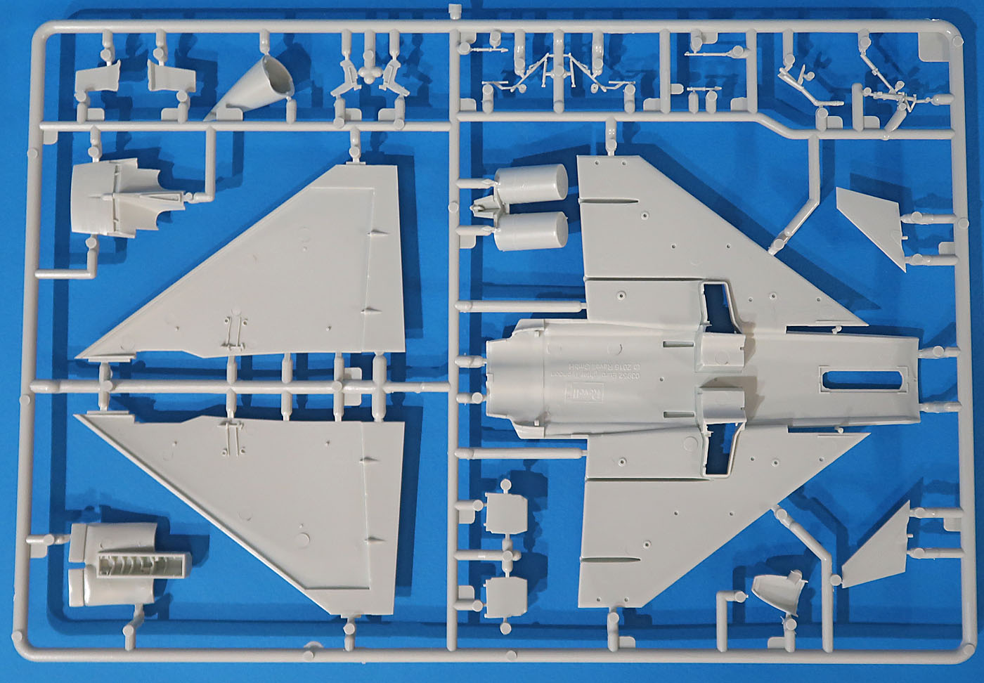 Литник А.  Половинки корпуса, киль, колеса, кокпит, шасси, два варианта сопел.