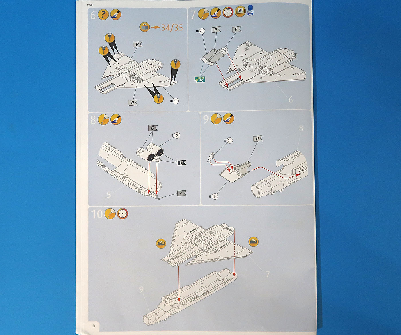 Открывается сборку и на свет божий являются два пакетика с литниками (обычный и прозрачка), инструкция да декаль.
