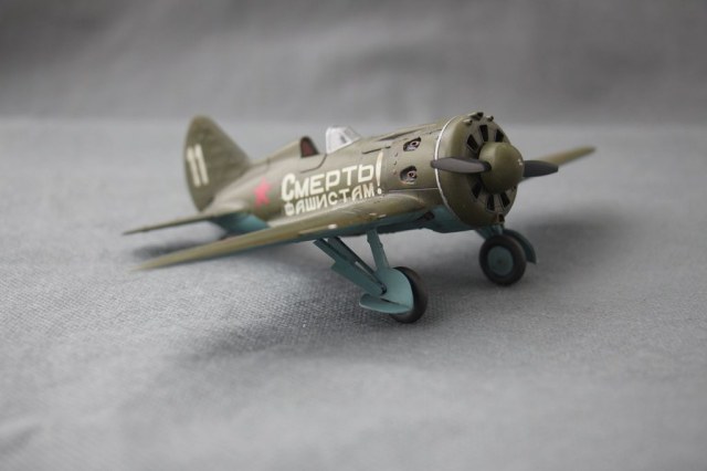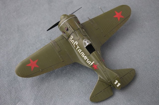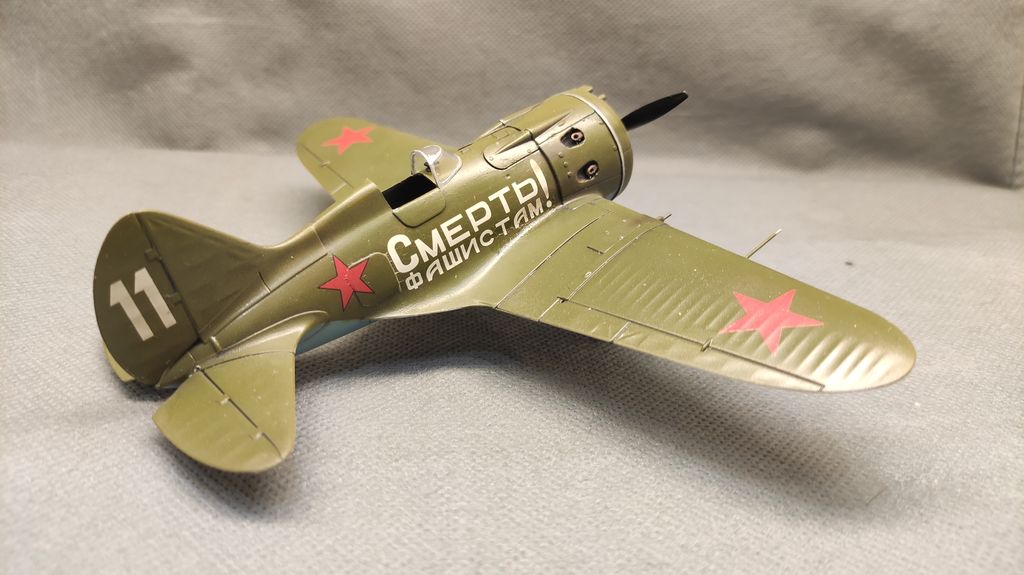 Истребитель И-16 тип 24 Бориса Сафонова. Рассуждений и споров о том, принадлежал-ли истребитель с этим бортовым номером прославленному лётчику и как были нанесены надписи конкретно на этой машине в сети много. Не стал углубляться и принял за основу вариант, предложенный создателями модели, да и не ставил перед собой и дочкой задачу воссоздать в точности указанный истребитель.