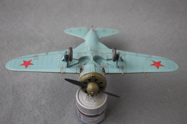 - попытался устранить недочеты, появившиеся после нанесения декалей (в этот момент уходил, одна из звезд на нижней плоскости крыла и края надписей серебрились и отслаивались вот прям сильно, кое-где спиртом разбавленным приглаживал).