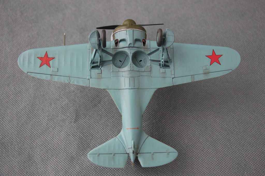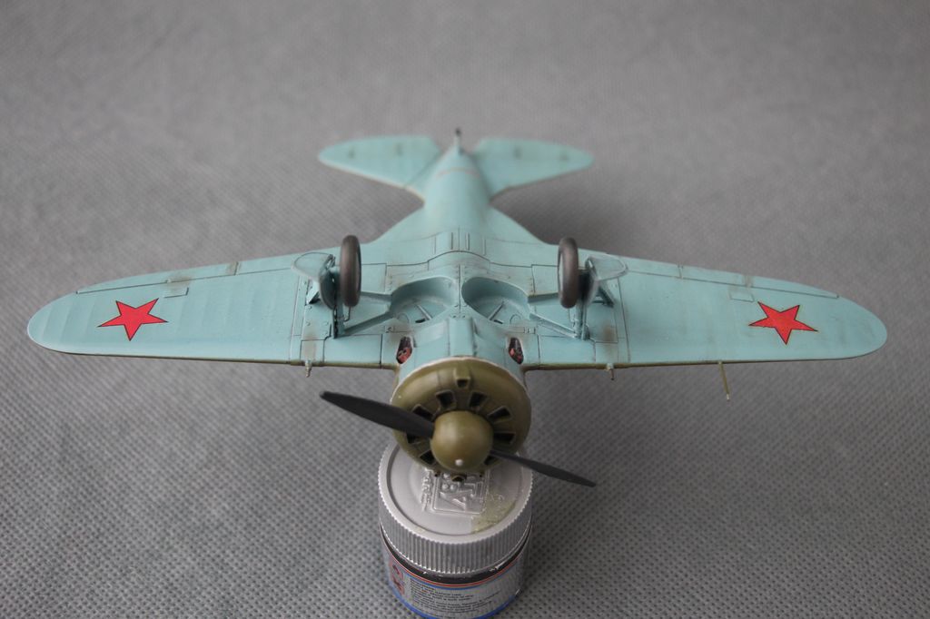 4. Нанесла декали. В качестве образца по расположению декалей, у неё перед глазами была модель И-16 Андрея Доукши. Открыл фото модели, а т.к. от предыдущей модель опыт наклейки декалей у неё уже был, ушёл заниматься своим делами (как оказалось зря, когда вернулся было уже поздно что-либо исправлять).