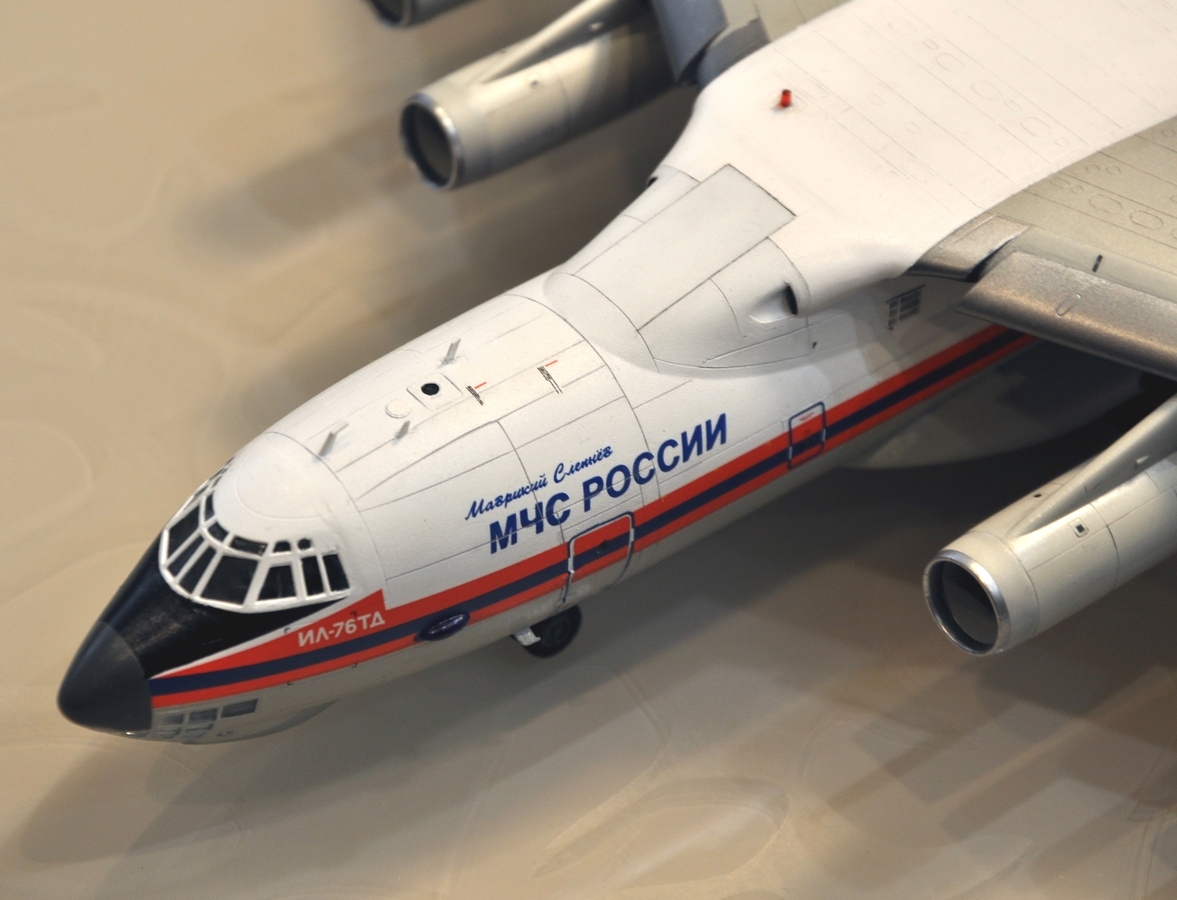 Коллеги, по хобби. Представляю на ваш суд очередную модель, это ИЛ-76ТД МЧС РОССИИ. В целом самолет оставил приятное впечатление. Отличная стыкуемость, приятный пластик. ЗВЕЗДА движется в верном направлении. Модель делал не для себя, поэтому времени для вникания в матчасть не было, сроки. Из бросающегося в глаза, на инструкции неправильно показаны границы полированного алюминия на вертикальном стабилизаторе. Деколь, тоже не везде выполнена, как на прототипе. Вроде мелочь, а неприятно. При сборке модели использовал травление МД. Из доработок БАНО. Краска Ганза и Тамия, остекленение покрывал футурой. Лак полуглянец Тамия. После фотографирования модели обнаружил, что вверху кабины не снял маску. Устранил. Приятного просмотра.