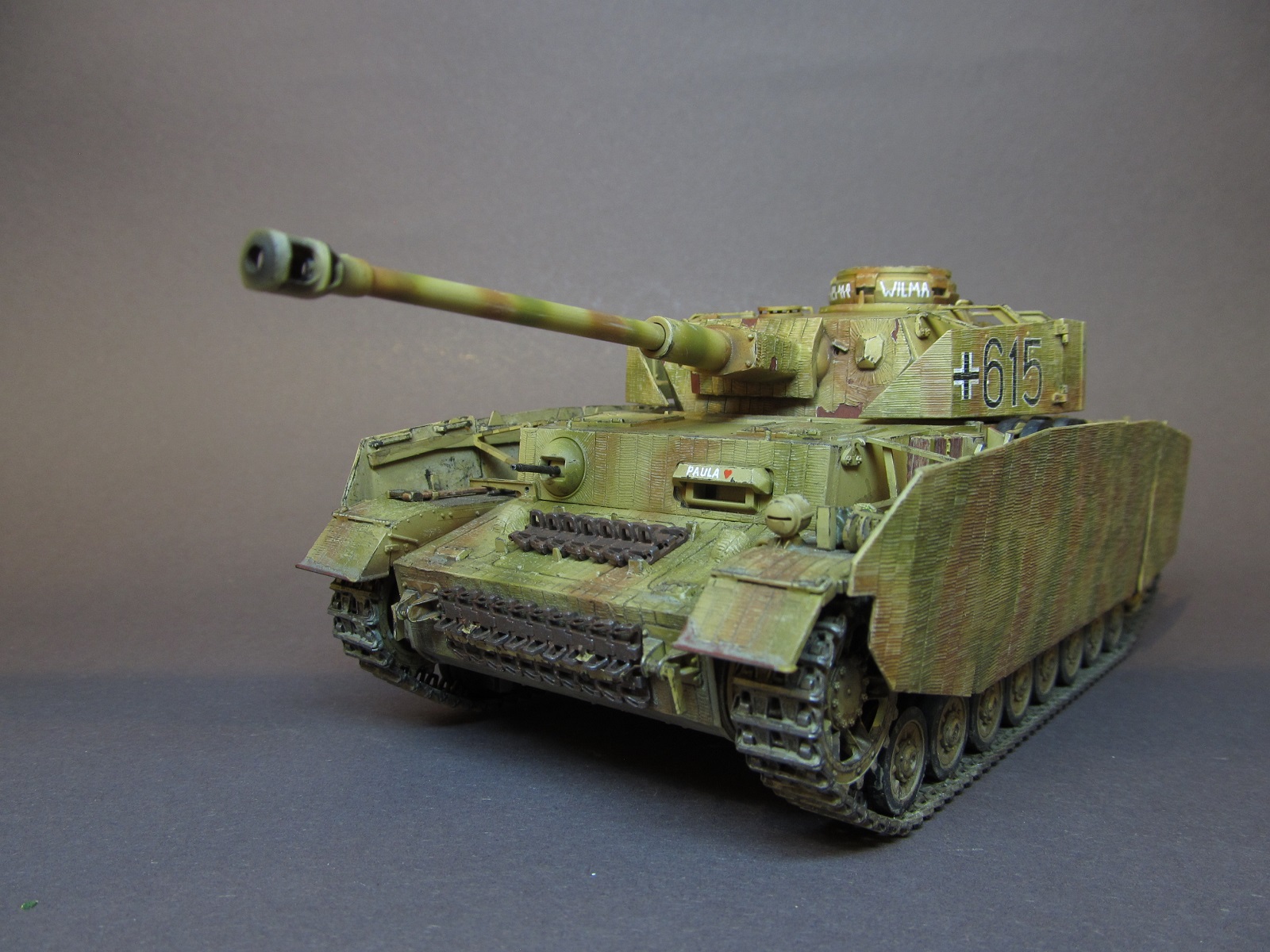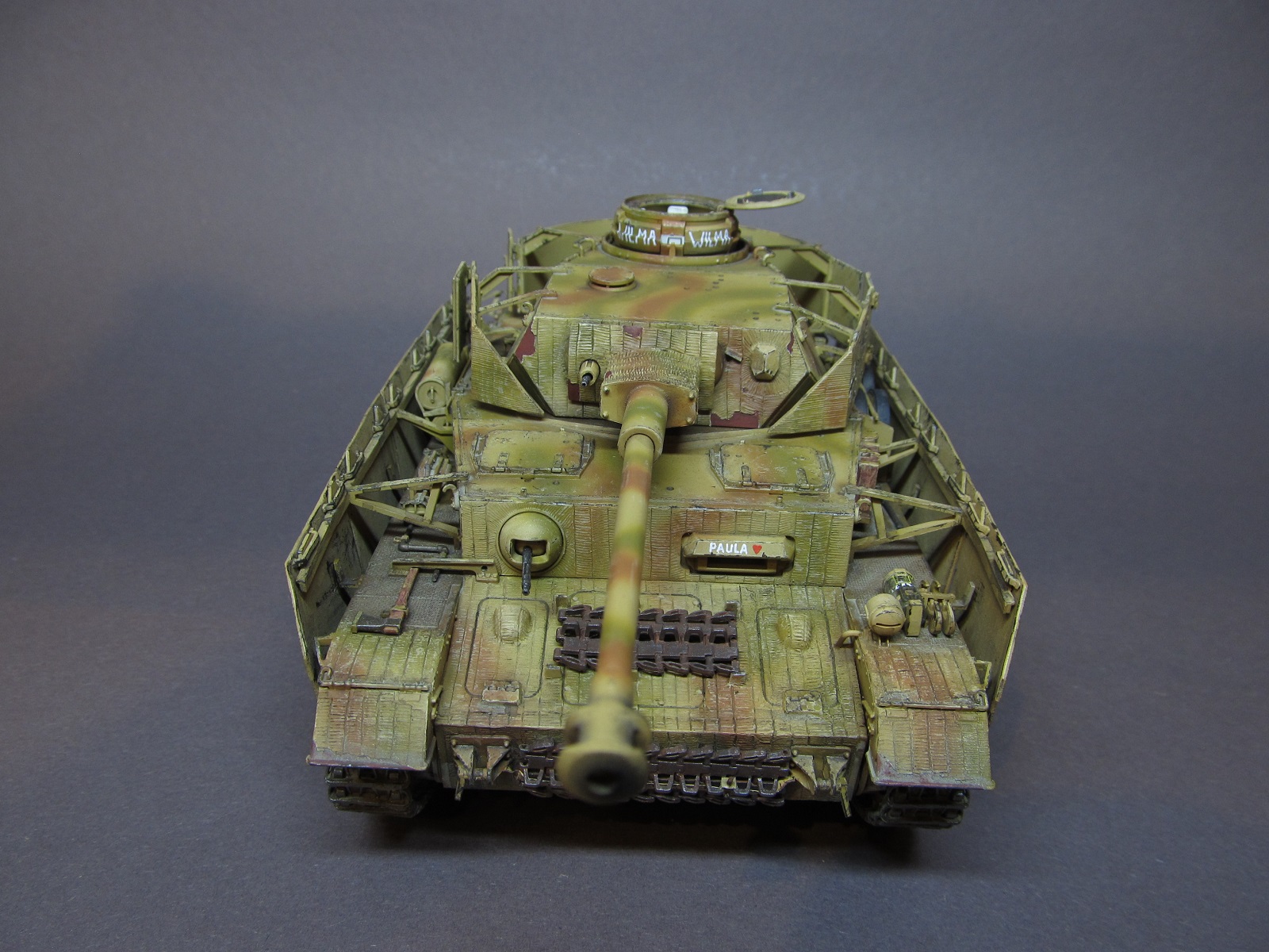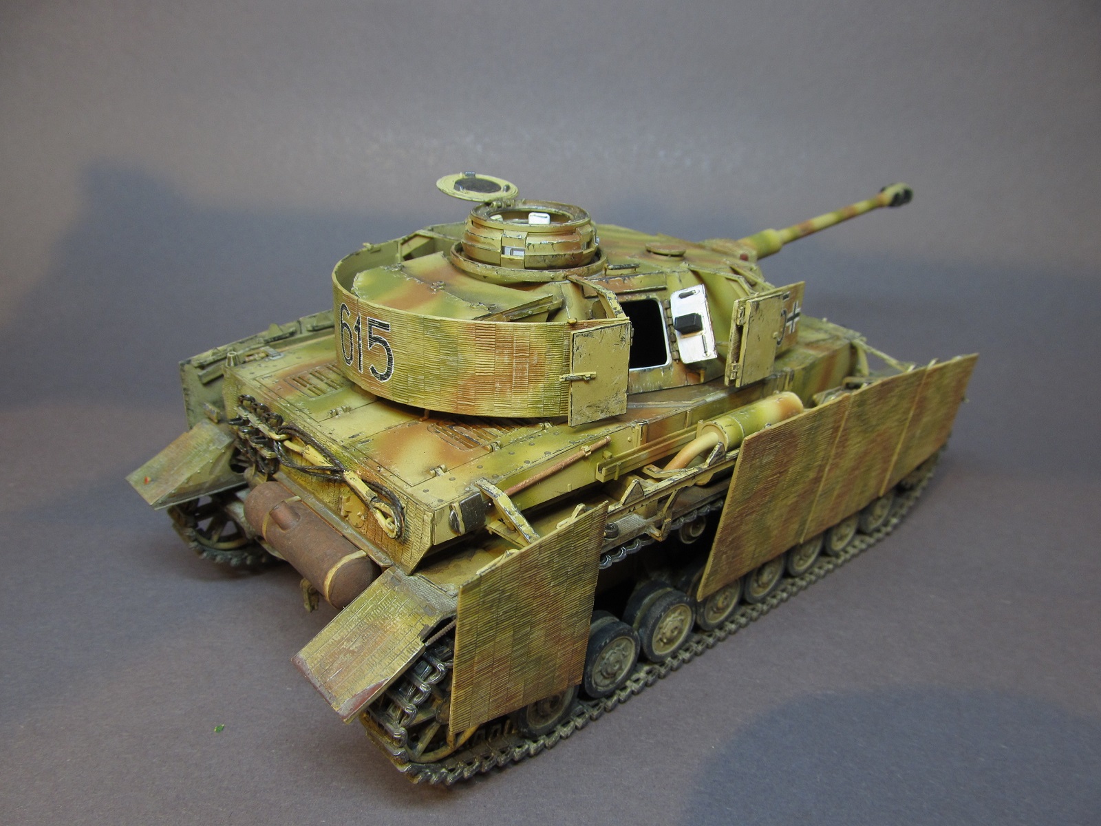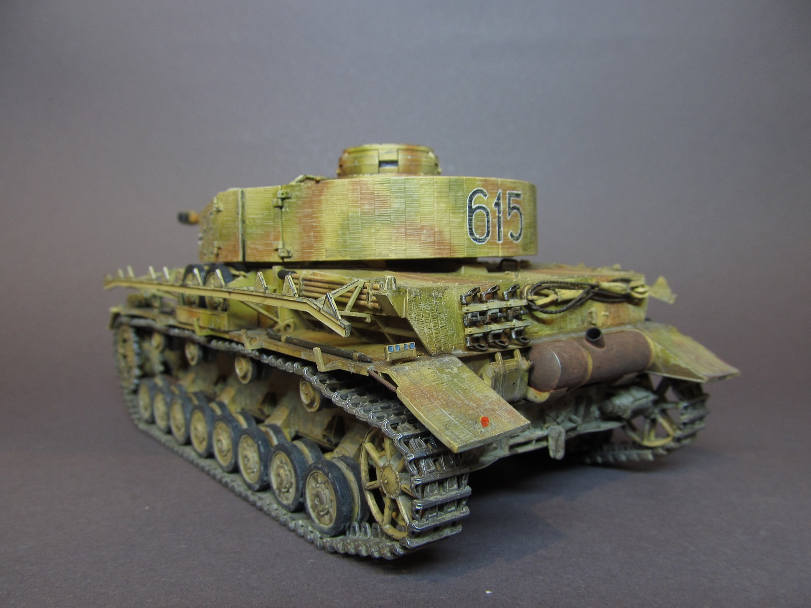 Михаил, благодарю!))) Ту ведь вот какая штука с циммеритом: в наборе экраны даются зацимериченными, а все остальное-нет. Оставлять так, как есть было бы не правильно. В сети я натыкался на фото машин с циммеритом на экранах и на лобовых/кормовых поверхностях танка. Таких экземпляров было не много, соглашусь, но были. Не циммеритить поверхности под экранами вполне логично- немцы-народ экономный, да и скорость обработки таких поверхностей видимо играла свою роль- на экраны сей раствор наносить удобнее и быстрее, чем на броню с кучей люков, смотровых щелей, выступающих частей и прочего. Думаю, дело было в этом. А так, циммерит вообще штука бесполезная оказалась, как показала боевая практика. Не было у Коалиции такого распространения магнитных мин в войсках)))