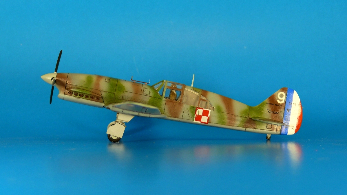 Здравствуйте, коллеги!!! Вот наконец то закончил еще одну модель, Французский истребитель Caudron-Renault CR.714 C1 от фирмы Mistercraft. Пластик конечно немного дровянистый, поэтому делал долго и с перерывами. Из доработок: перерасшиил расшивку, немного добавил внутренностей в кабину, но через стекло практически ничего не видно, немного подправил стабилизаторы, руль направления, носовую часть, немного удлинил гондолы пулеметов, но полностью переделывать их не стал, слишком много возни. Заново изготовил шасси и щитки, маслорадиатор, выдавил остекление, остальное вроде бы как всегда, пулеметы и ПВД из игл и проволоки. Окраска как всегда нитрой (цвета мешал на глаз, но на фото они выглядят немного светлее чем в реальности) по грунтовке из ГФ 021, красил от руки без масок, но окраска удалась не очень. Расшивку выделял Тамиевской смывкой, Декали использовал как родные так и из запасов (у родных качество к стати не очень). Пытался изобразить самолет польского летчика сержанта Ладислава Юхера, из истребительной группы GC 1/145, "Монпелье", Франция, май 1940 г. Всем приятного просмотра, за конструктивную критику заранее благодарен.