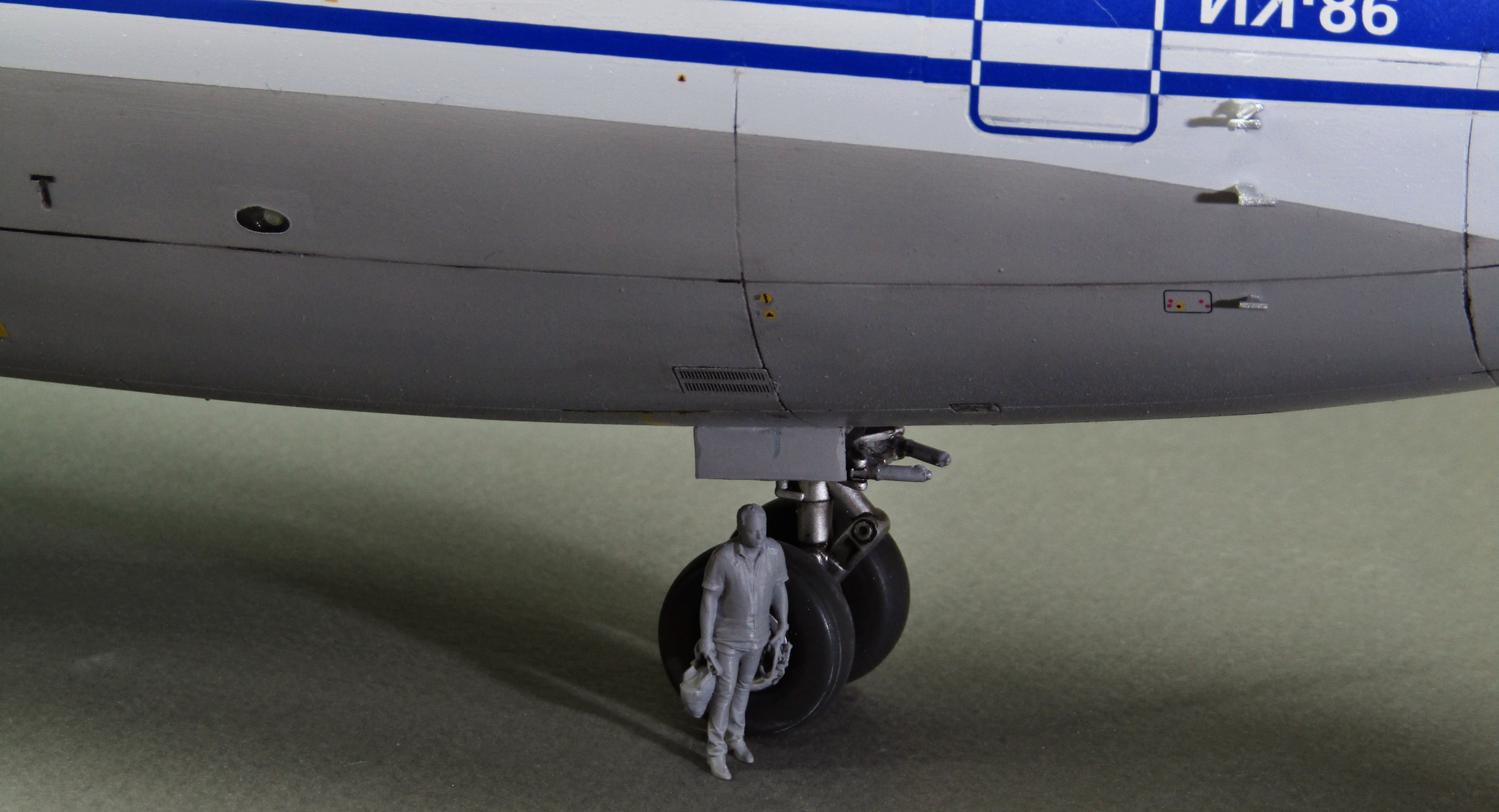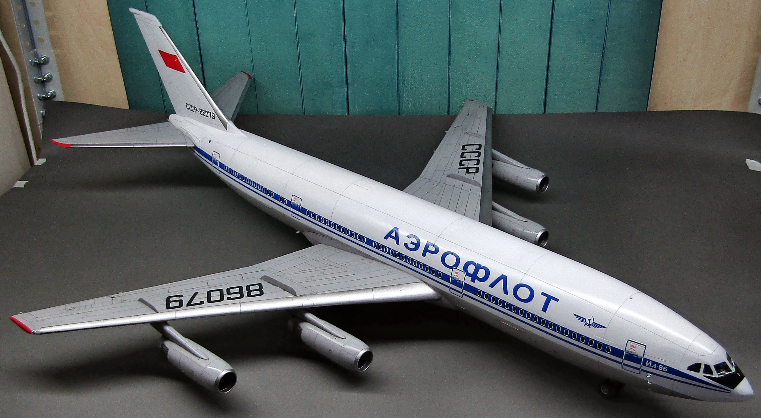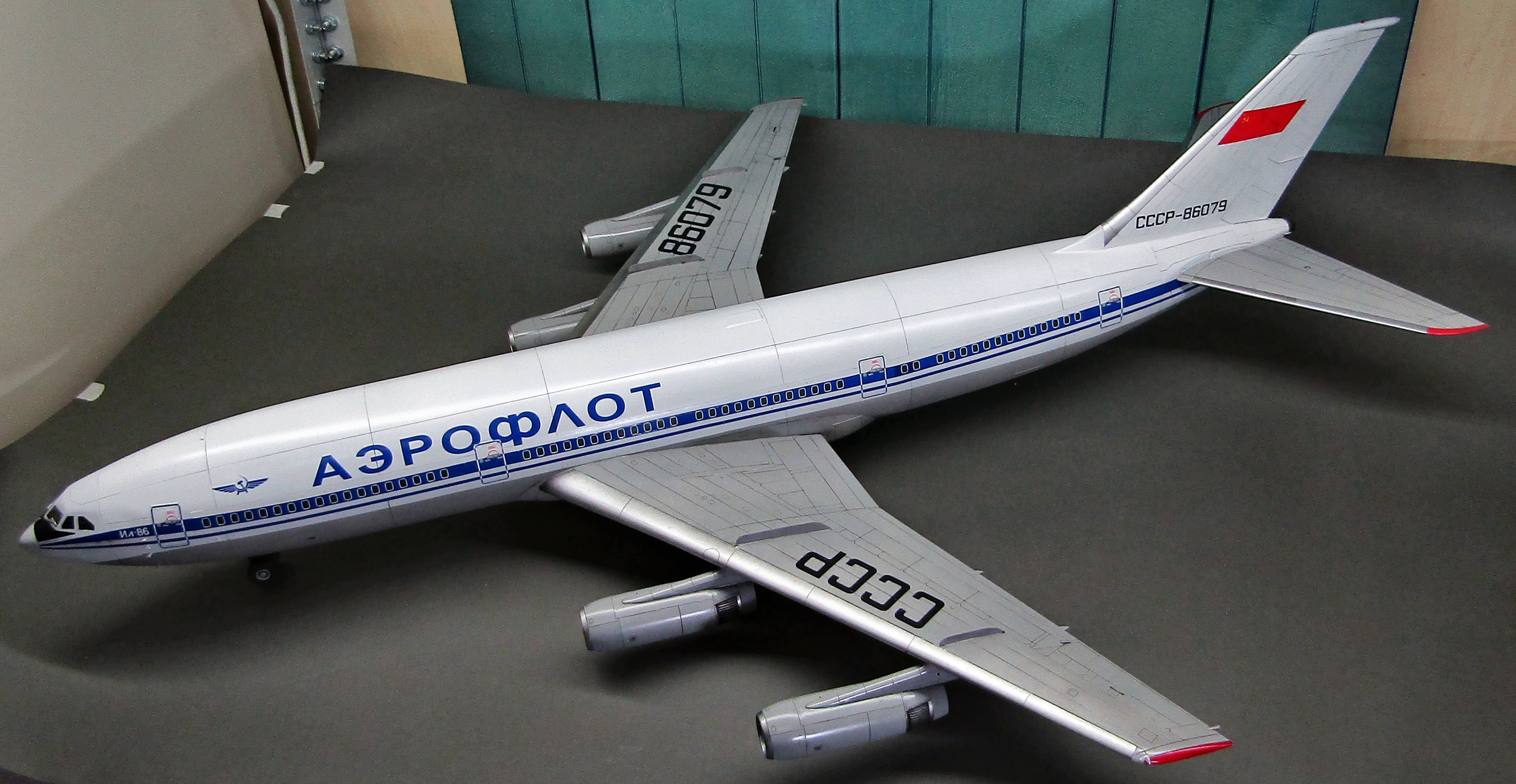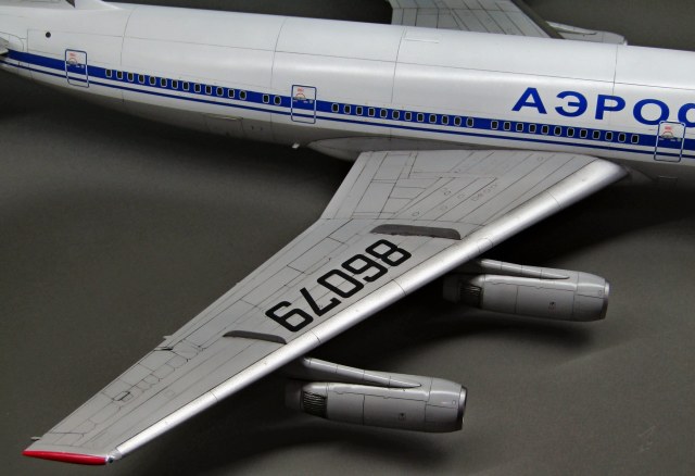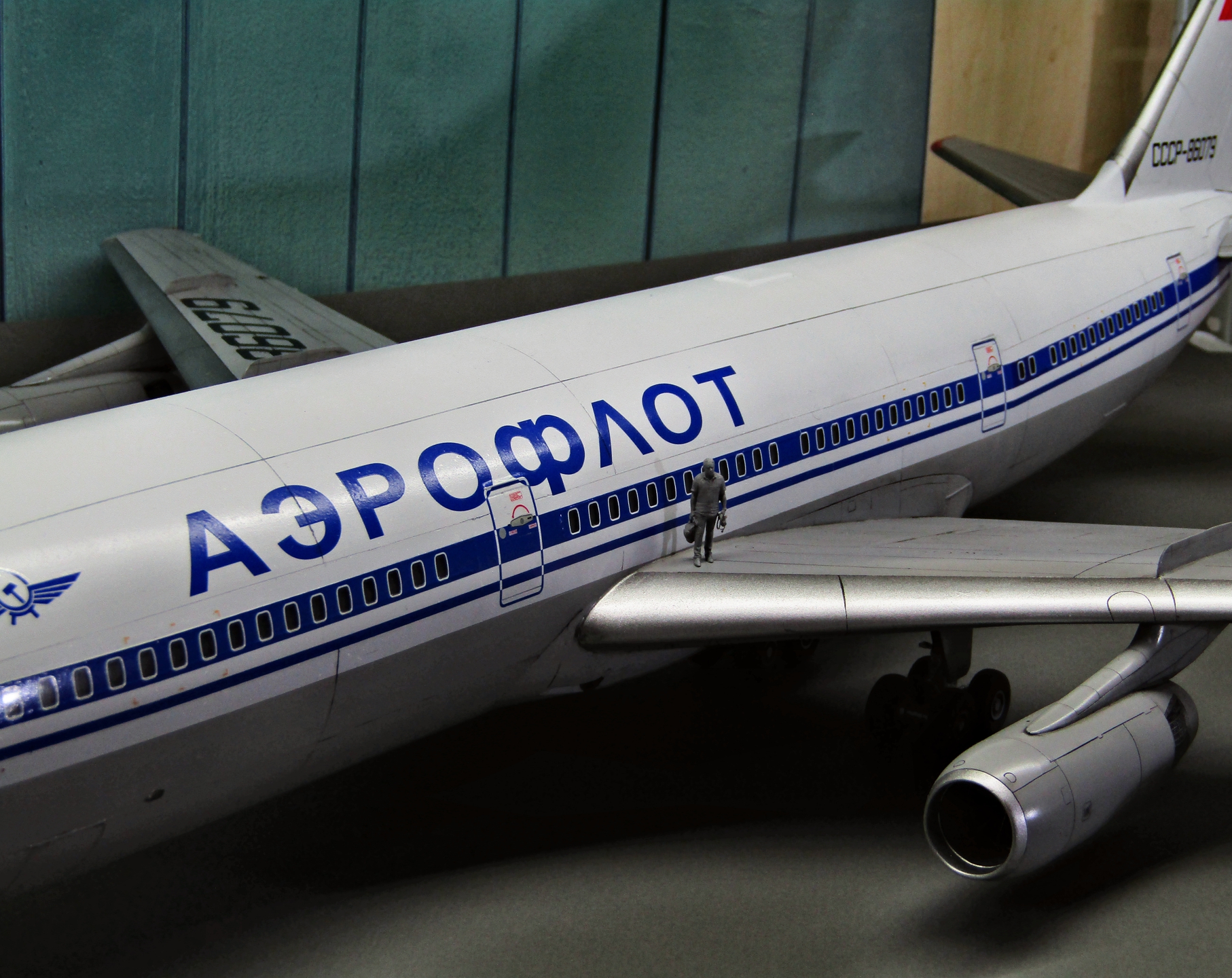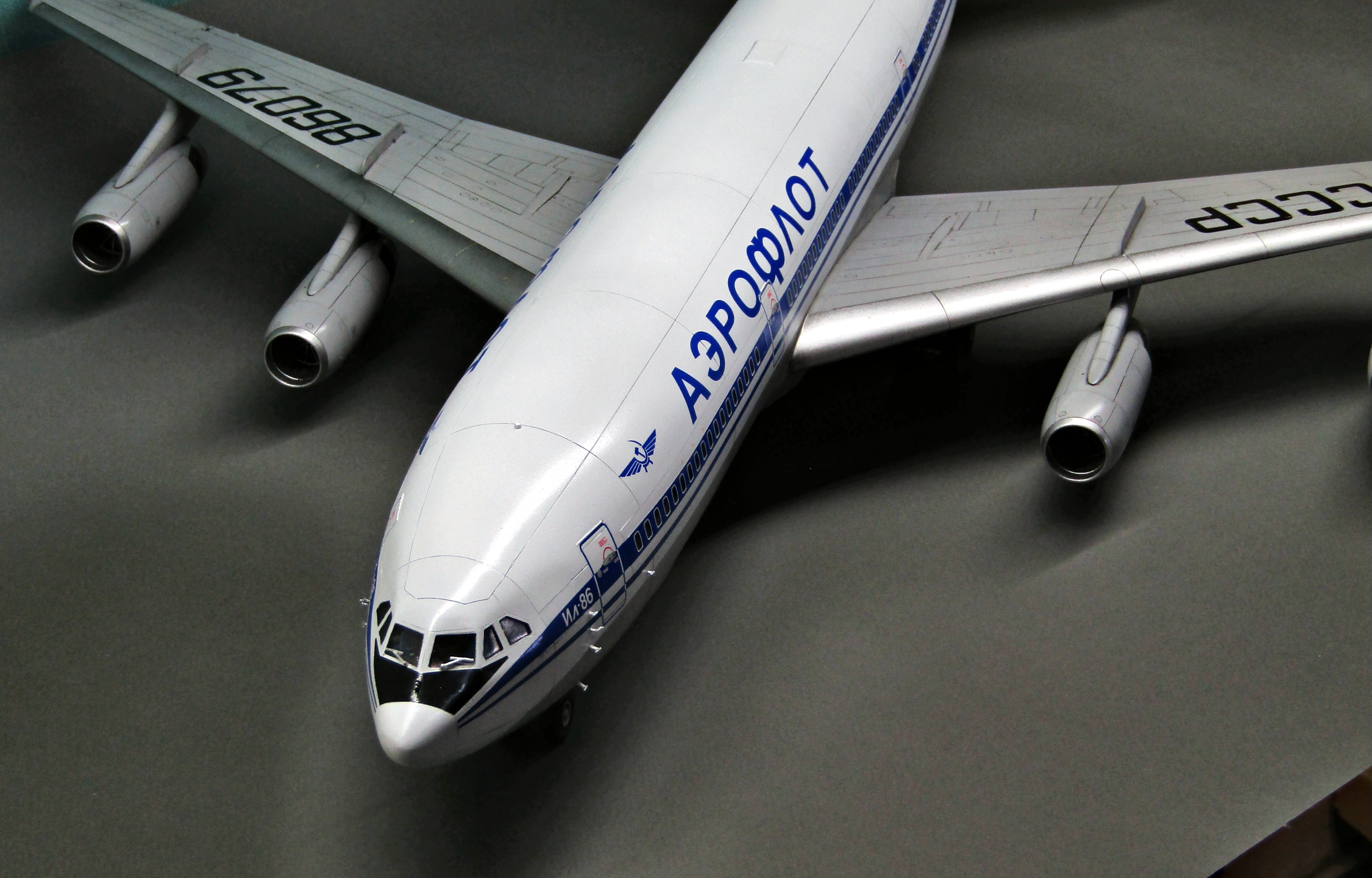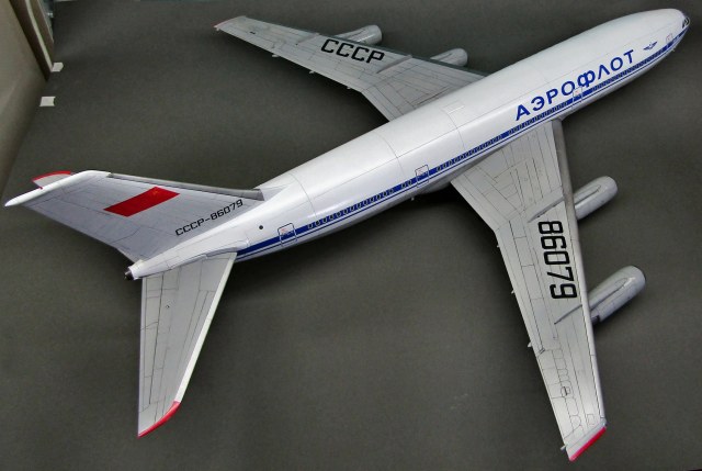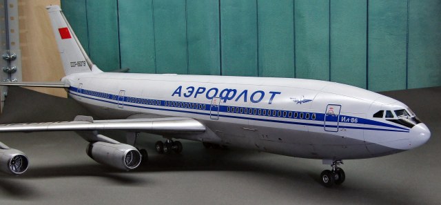 Приветствую коллеги! На сей раз хочу представить Советский аэробус в 72-м масштабе. Заранее хочу извиниться за фон фотографий - у меня к сожалению нет достаточных просторов для данной модели. Набор уже многим известен по ряду выложенных в просторы интернета обзоров, а также тем, кто всё-таки отважился его запилить. По мне так сборка представляет, мягко говоря, сплошные трудности и бесконечные подгонки с выравниванием поверхностей, шлифовкой и нарезанием расшивки. Отдельного внимания заслуживают декали. Если в предыдущих моделях данного производителя к переводилкам у меня вопросов не возникало, то похвалить декали данного набора невозможно - рвуться похлеще амоделовских. В общем одно хочу сказать - набор своих денег не стоит и если очень уж хочется запилить Ил-86, то лучше купить за эти деньги несколько десятков таких же, но в 144-м масштабе (ну это так лично моё мнение). В общем по сборке никаких дополнений не делал. В переднюю часть фюзеляжа ставил груз, чтобы модель не заваливалась. В ходе сборки использовал все виды клеёв (ПВА, циакрин, клеи для пластика от различных производителей, poxipol, холодную сварку). Шпаклевал как серой шпаклёвкой от Тамии, так и автомобильной 2-х компонентной от NOVOL. Грунтовал серым грунтом от Тамии. Красил серый низ и белый верх акрилами от Тамии. Глянцевал поверхности разичными лаками от Тамии. Смывал чёрной и серой Тамией. Финишное покрытие - полуглянцевый лак от той-же Тамии. В общем всё, что мог описал, приятного просмотра коллеги...