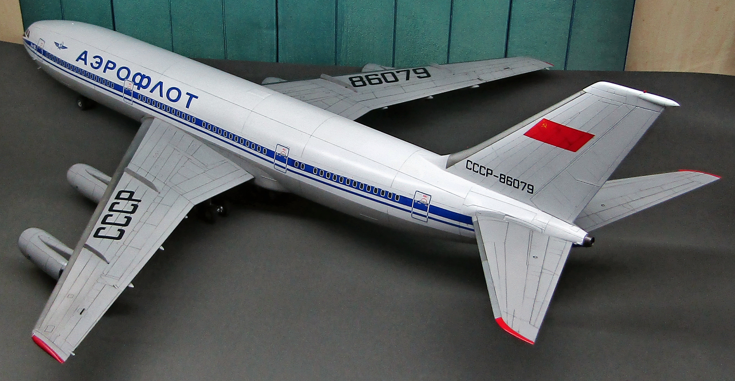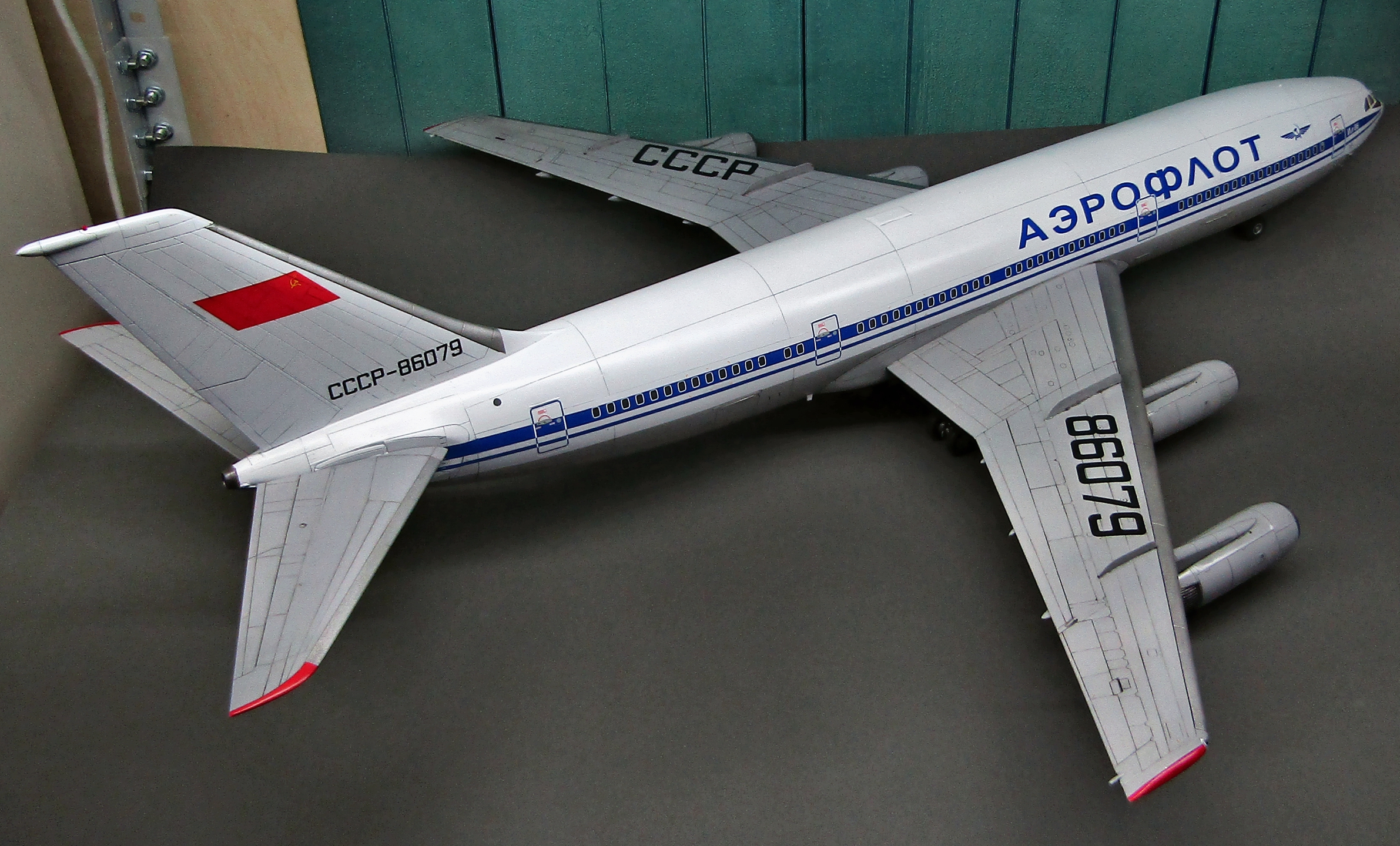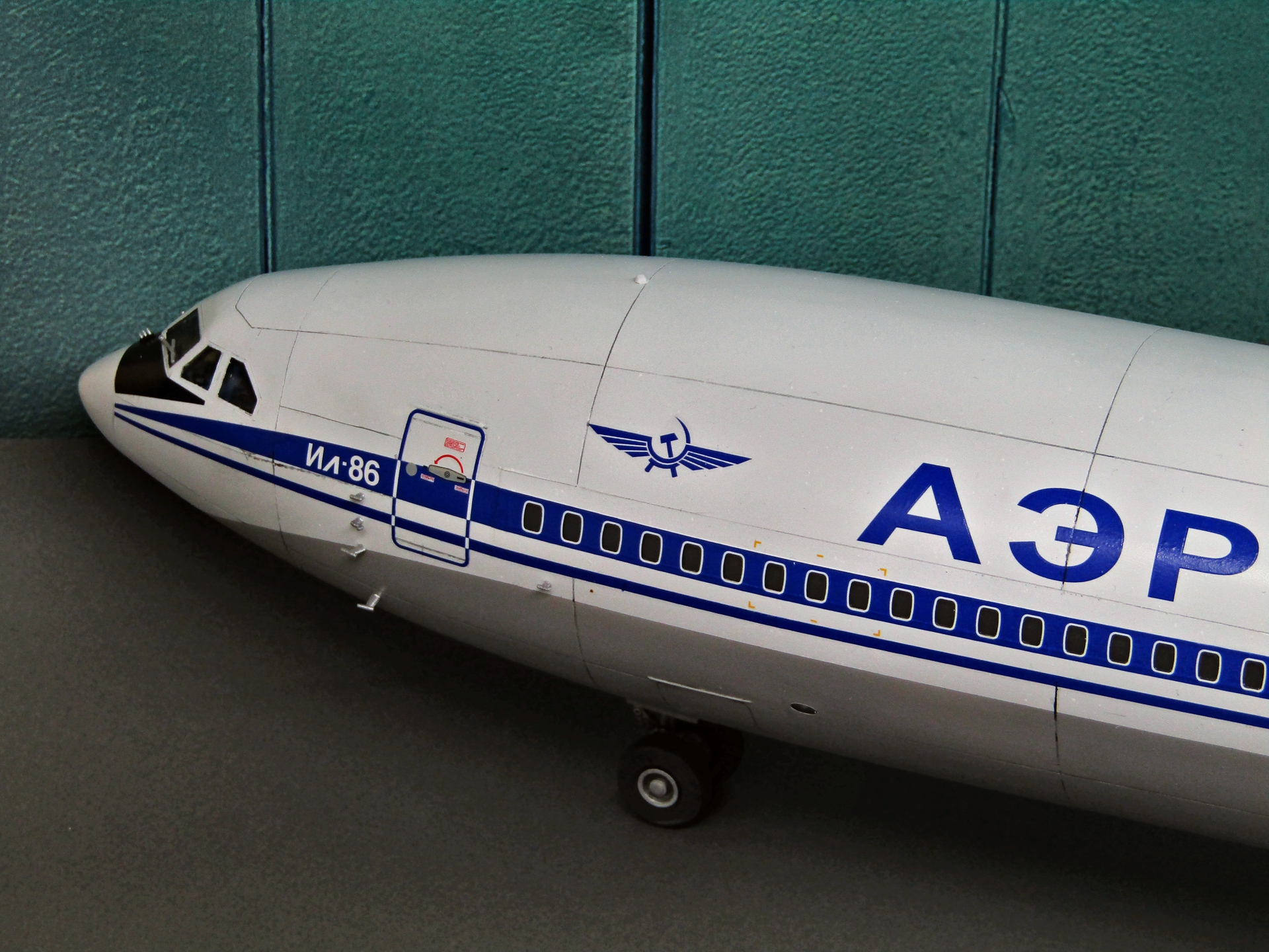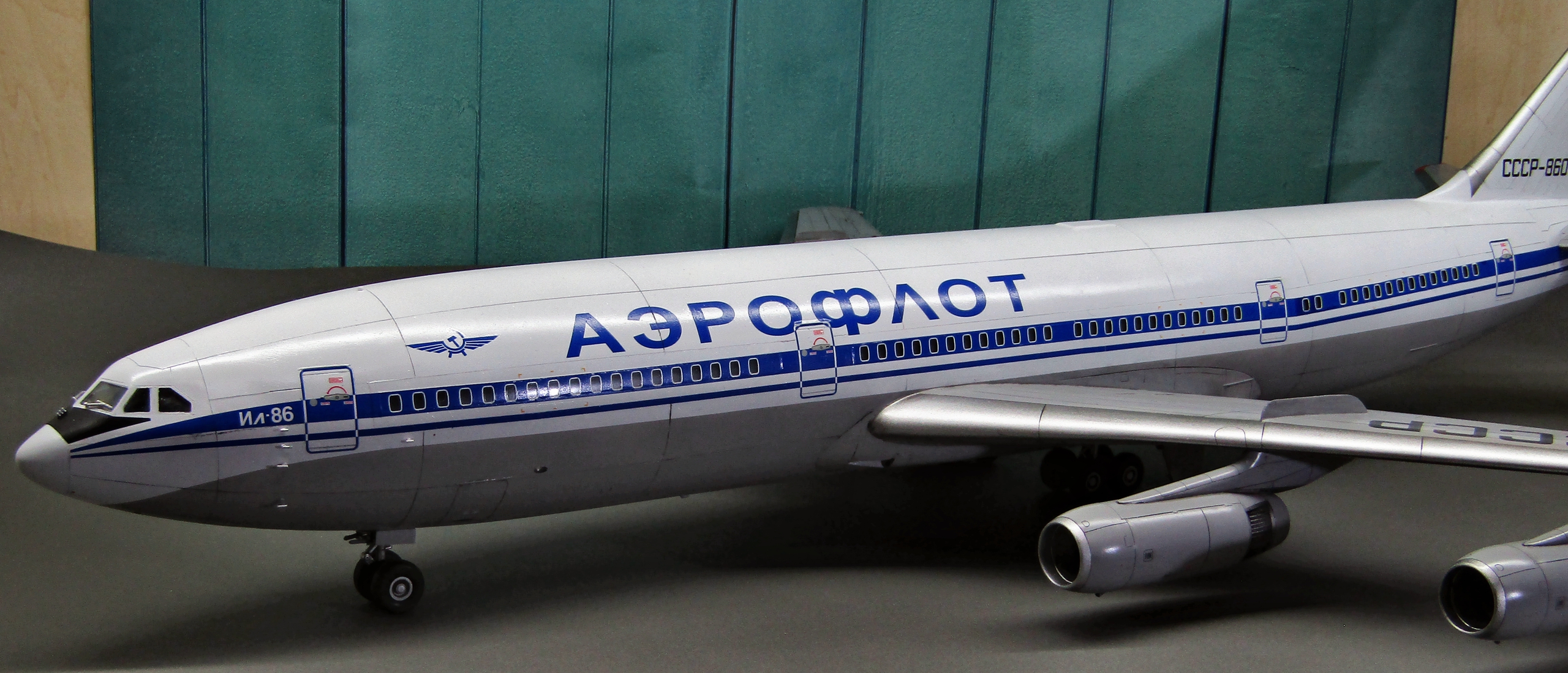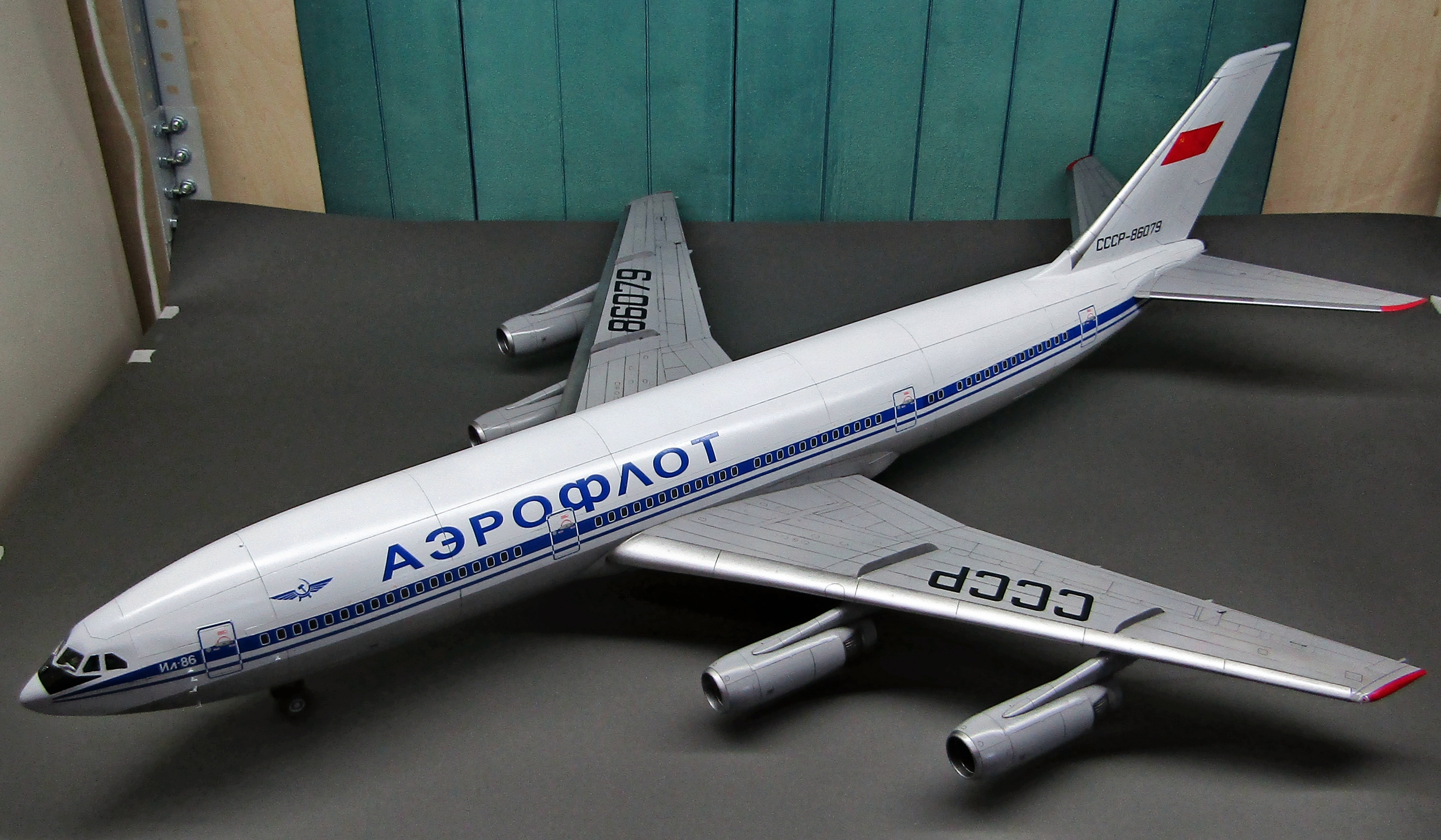 Приветствую коллеги! На сей раз хочу представить Советский аэробус в 72-м масштабе. Заранее хочу извиниться за фон фотографий - у меня к сожалению нет достаточных просторов для данной модели. Набор уже многим известен по ряду выложенных в просторы интернета обзоров, а также тем, кто всё-таки отважился его запилить. По мне так сборка представляет, мягко говоря, сплошные трудности и бесконечные подгонки с выравниванием поверхностей, шлифовкой и нарезанием расшивки. Отдельного внимания заслуживают декали. Если в предыдущих моделях данного производителя к переводилкам у меня вопросов не возникало, то похвалить декали данного набора невозможно - рвуться похлеще амоделовских. В общем одно хочу сказать - набор своих денег не стоит и если очень уж хочется запилить Ил-86, то лучше купить за эти деньги несколько десятков таких же, но в 144-м масштабе (ну это так лично моё мнение). В общем по сборке никаких дополнений не делал. В переднюю часть фюзеляжа ставил груз, чтобы модель не заваливалась. В ходе сборки использовал все виды клеёв (ПВА, циакрин, клеи для пластика от различных производителей, poxipol, холодную сварку). Шпаклевал как серой шпаклёвкой от Тамии, так и автомобильной 2-х компонентной от NOVOL. Грунтовал серым грунтом от Тамии. Красил серый низ и белый верх акрилами от Тамии. Глянцевал поверхности разичными лаками от Тамии. Смывал чёрной и серой Тамией. Финишное покрытие - полуглянцевый лак от той-же Тамии. В общем всё, что мог описал, приятного просмотра коллеги...