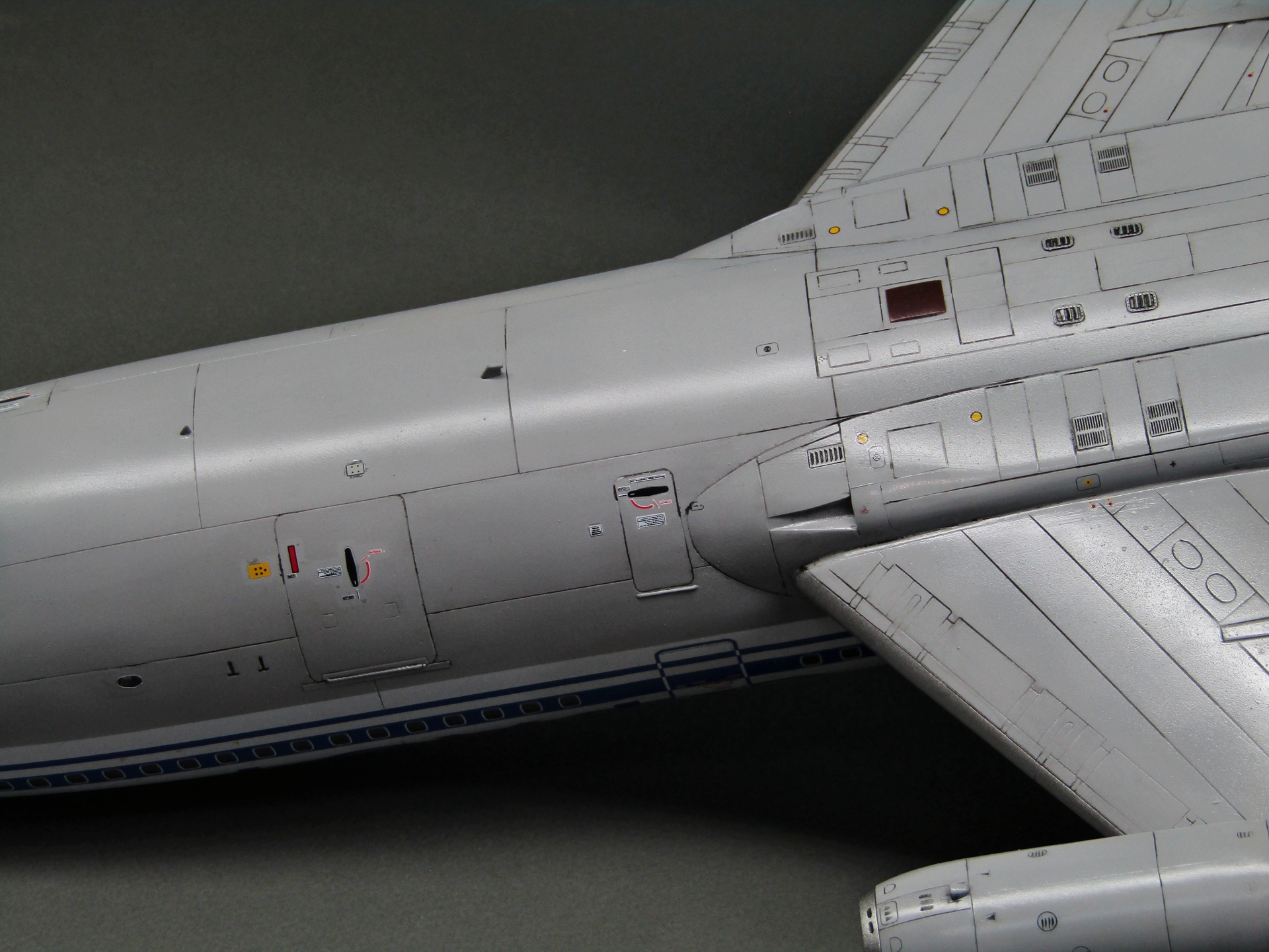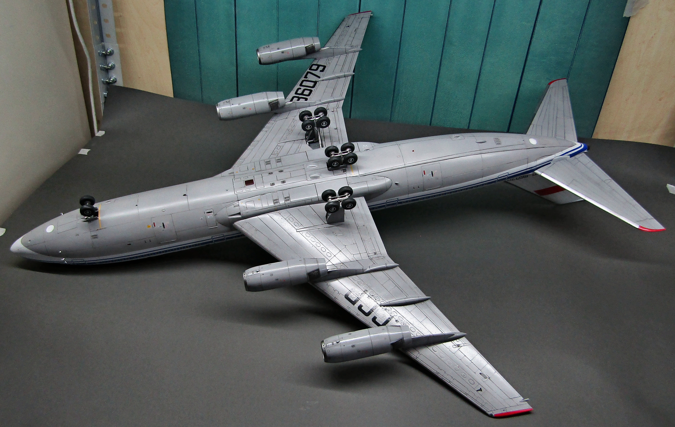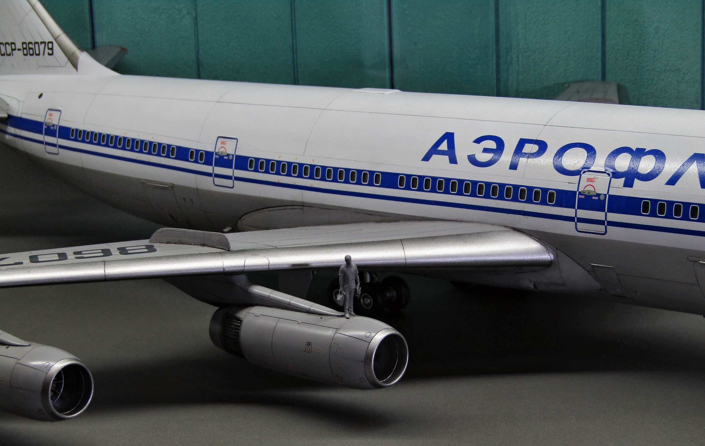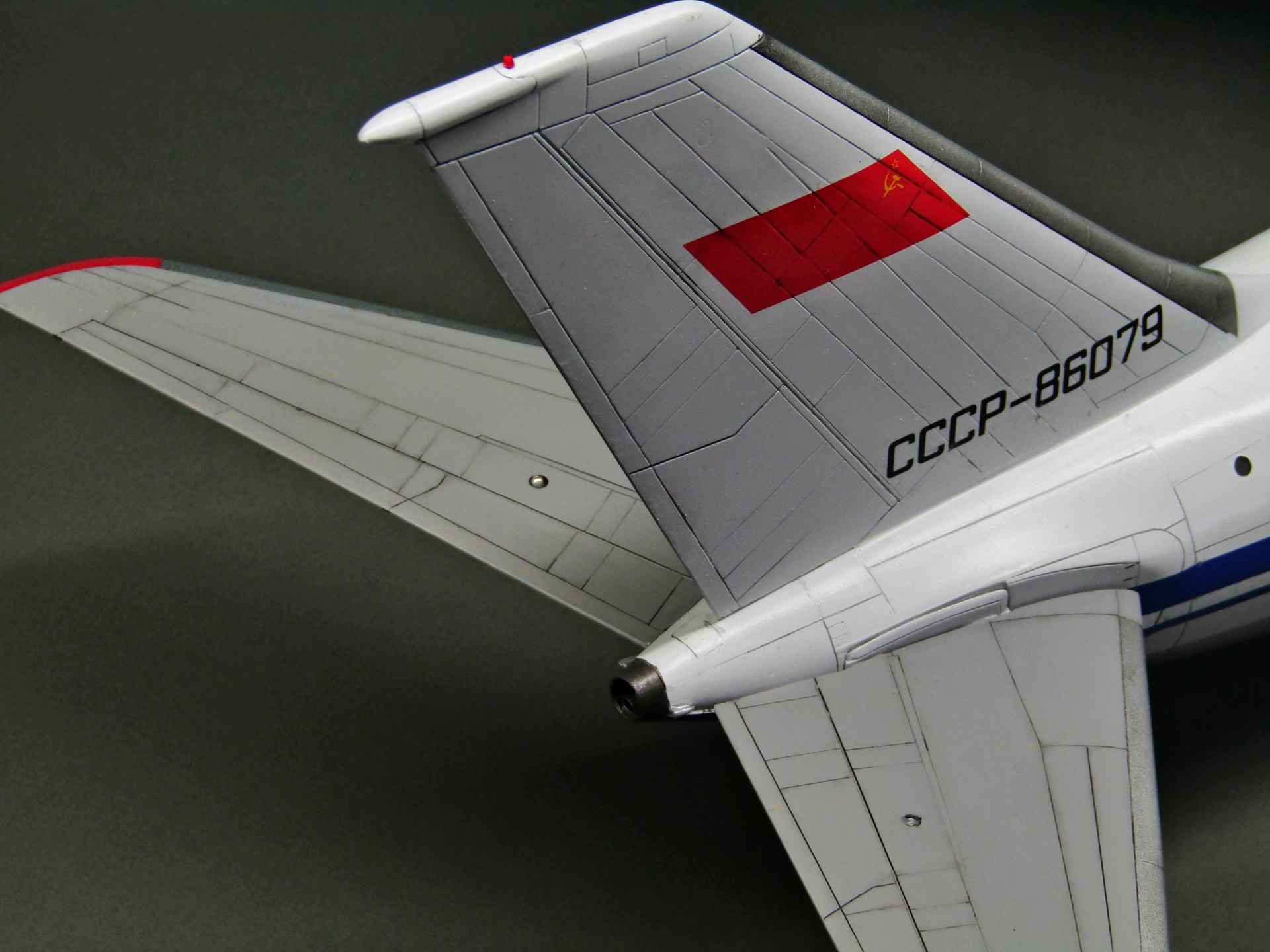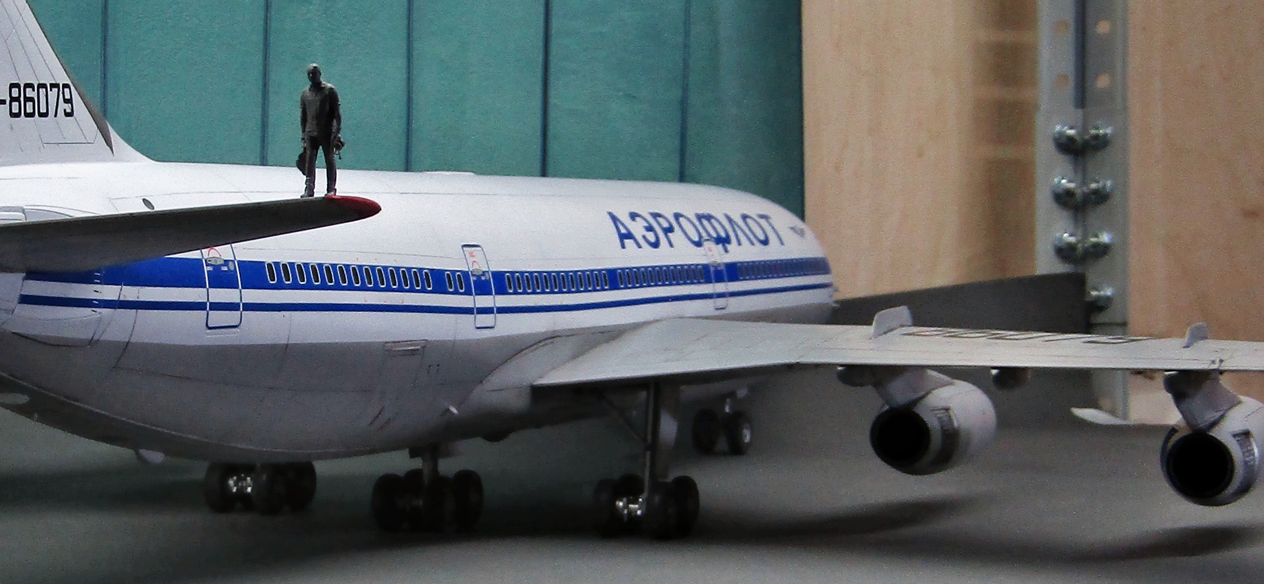 Приветствую коллеги! На сей раз хочу представить Советский аэробус в 72-м масштабе. Заранее хочу извиниться за фон фотографий - у меня к сожалению нет достаточных просторов для данной модели. Набор уже многим известен по ряду выложенных в просторы интернета обзоров, а также тем, кто всё-таки отважился его запилить. По мне так сборка представляет, мягко говоря, сплошные трудности и бесконечные подгонки с выравниванием поверхностей, шлифовкой и нарезанием расшивки. Отдельного внимания заслуживают декали. Если в предыдущих моделях данного производителя к переводилкам у меня вопросов не возникало, то похвалить декали данного набора невозможно - рвуться похлеще амоделовских. В общем одно хочу сказать - набор своих денег не стоит и если очень уж хочется запилить Ил-86, то лучше купить за эти деньги несколько десятков таких же, но в 144-м масштабе (ну это так лично моё мнение). В общем по сборке никаких дополнений не делал. В переднюю часть фюзеляжа ставил груз, чтобы модель не заваливалась. В ходе сборки использовал все виды клеёв (ПВА, циакрин, клеи для пластика от различных производителей, poxipol, холодную сварку). Шпаклевал как серой шпаклёвкой от Тамии, так и автомобильной 2-х компонентной от NOVOL. Грунтовал серым грунтом от Тамии. Красил серый низ и белый верх акрилами от Тамии. Глянцевал поверхности разичными лаками от Тамии. Смывал чёрной и серой Тамией. Финишное покрытие - полуглянцевый лак от той-же Тамии. В общем всё, что мог описал, приятного просмотра коллеги...
