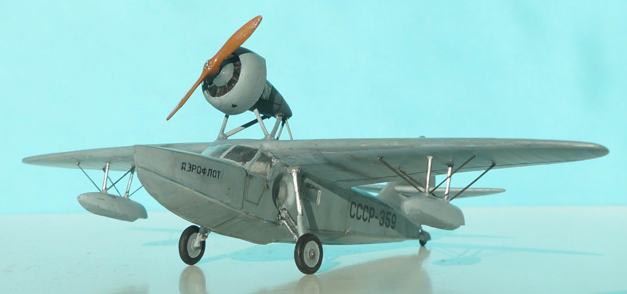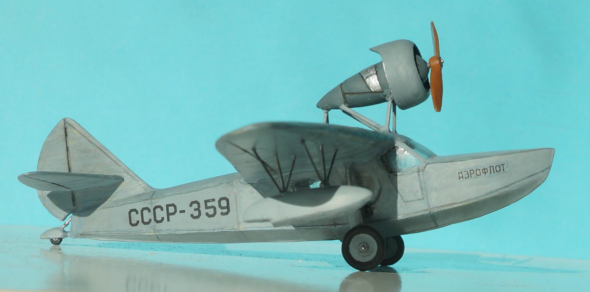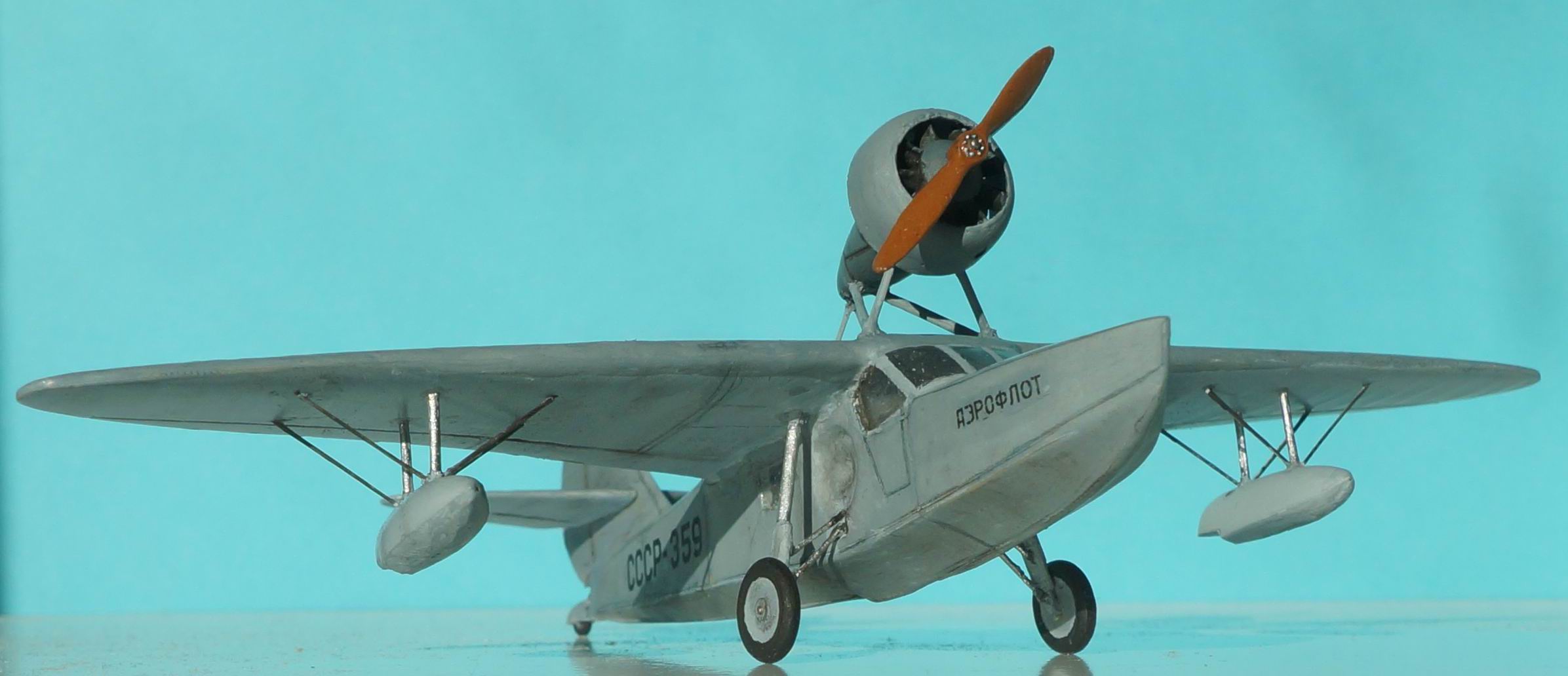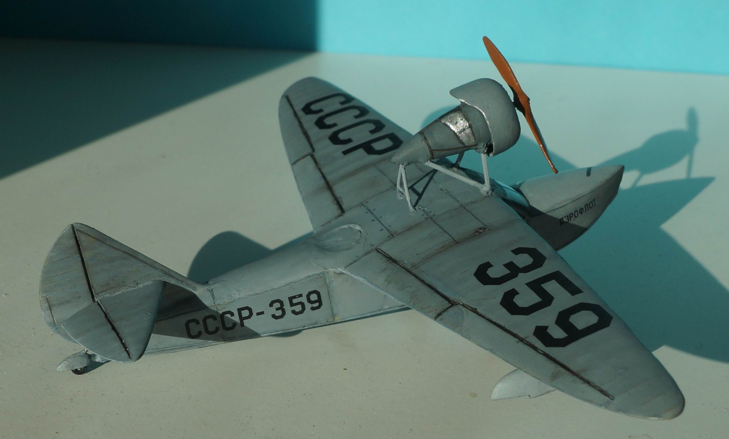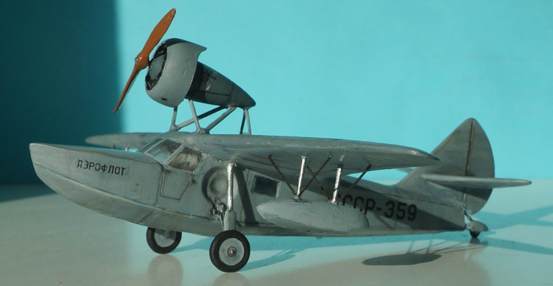 Ш-7 — шестиместная летающая лодка-амфибия конструкции В. Б. Шаврова, предназначалась для связи между полярными станциями, ледовой разведки с кораблей и выполнения других задач в северных районахСССР. Самолет был спроектирован в 1939 году, а построен и испытан в 1940. Испытания, проведённые лётчиком Е. О. Федоренко, признали удачными, и было принято решение о запуске Ш-7 в серийное производство на ремонтном заводе Главсевморпути. Однако с началом войны от планов производства самолёта пришлось отказаться. Опытный образец Ш-7 использовался для перевозки почты до выработки ресурса Модель из смолы.Фонарь вакуумный,доставивший наибольших хлопот при постройке,т.к. не придавал нужной формы-пришлось немного наращивать потолок. Все мелкие внешние детали с литников отделить не смог,поэтому пришлось заменить на пластиковые.В остальном все пристыковалось более не менее нормально.