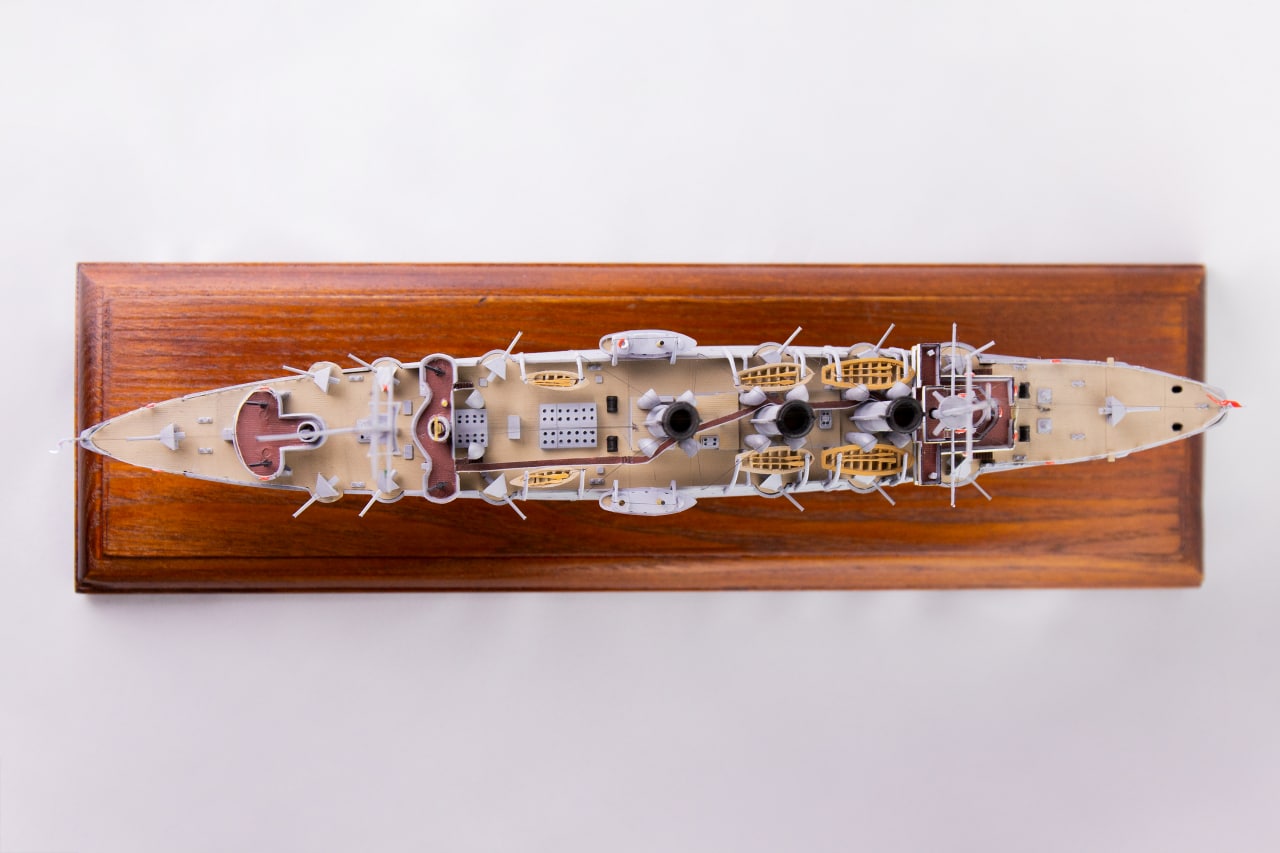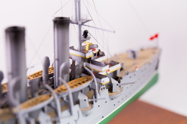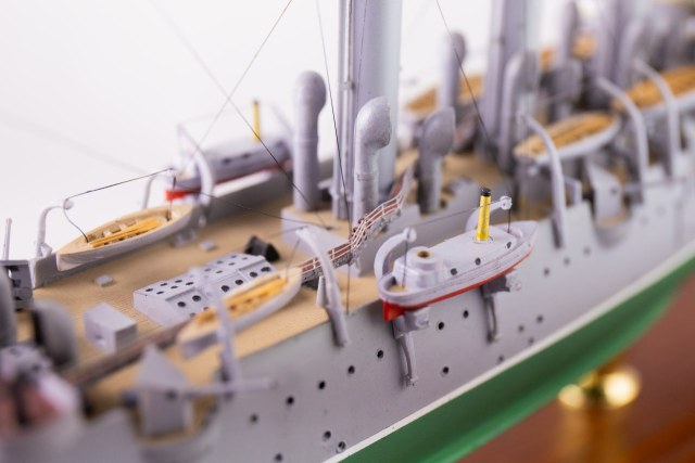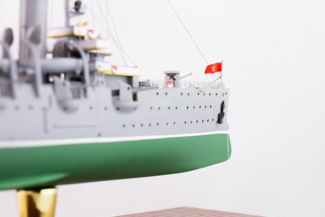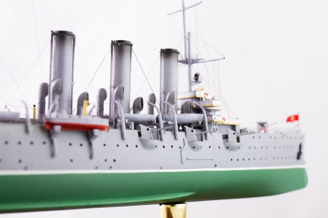 Приступив к сборке, изучил информацию на различных ресурсах, понял, что пароход неоднократно подвергался ремонтам, модернизации и переделке, поэтому сборка велась по образу и подобию, не имея привязки к конкретному историческому периоду. Окраска в основном акрил Tamiya, тонировка труб сажей от жженого литника, тонировка палубы пигмент Акан. Все родные детали подвергались дополнительной механической обработке: стачивались шлюпбалки; срезан лишний пластик на бронеплите боевой рубки и на ограждениях крыльев мостика; срезан транспорт для боеприпасов и заменен фототравленым профилем; расточены дымовые трубы; расточены вентиляционные трубы; сточены мачты, марсовые и прожекторные площадки, заменены флагштоки и т.п.