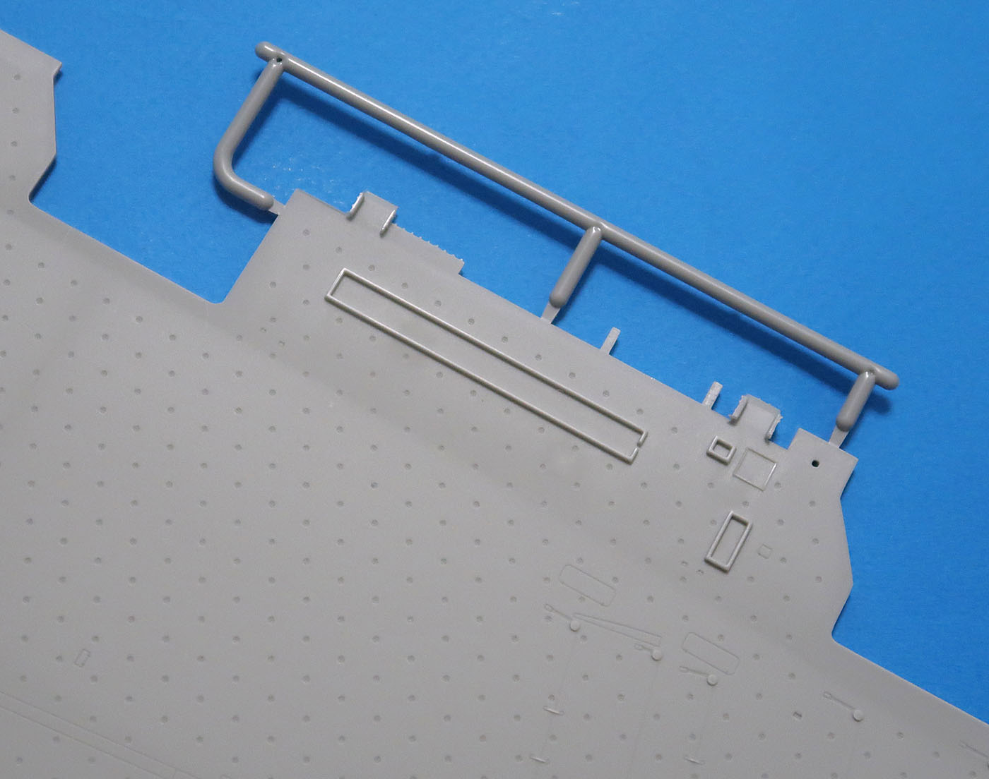 На обоих палубах в наличии "кругляши". По фото не особо видно - но это "ямки", сиреч "впуклости". Видимо они должны символизировать что-то имеющееся на настоящей палубе