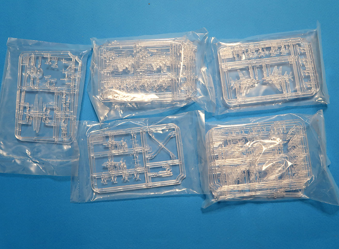 И финальная большая группа из пяти маленьких отдельных пакетиков с литниками - авиакрыло: