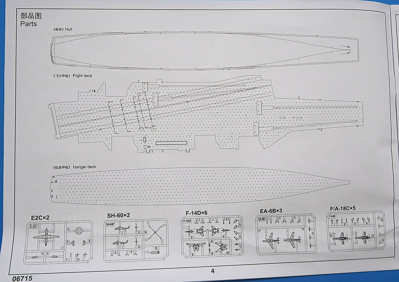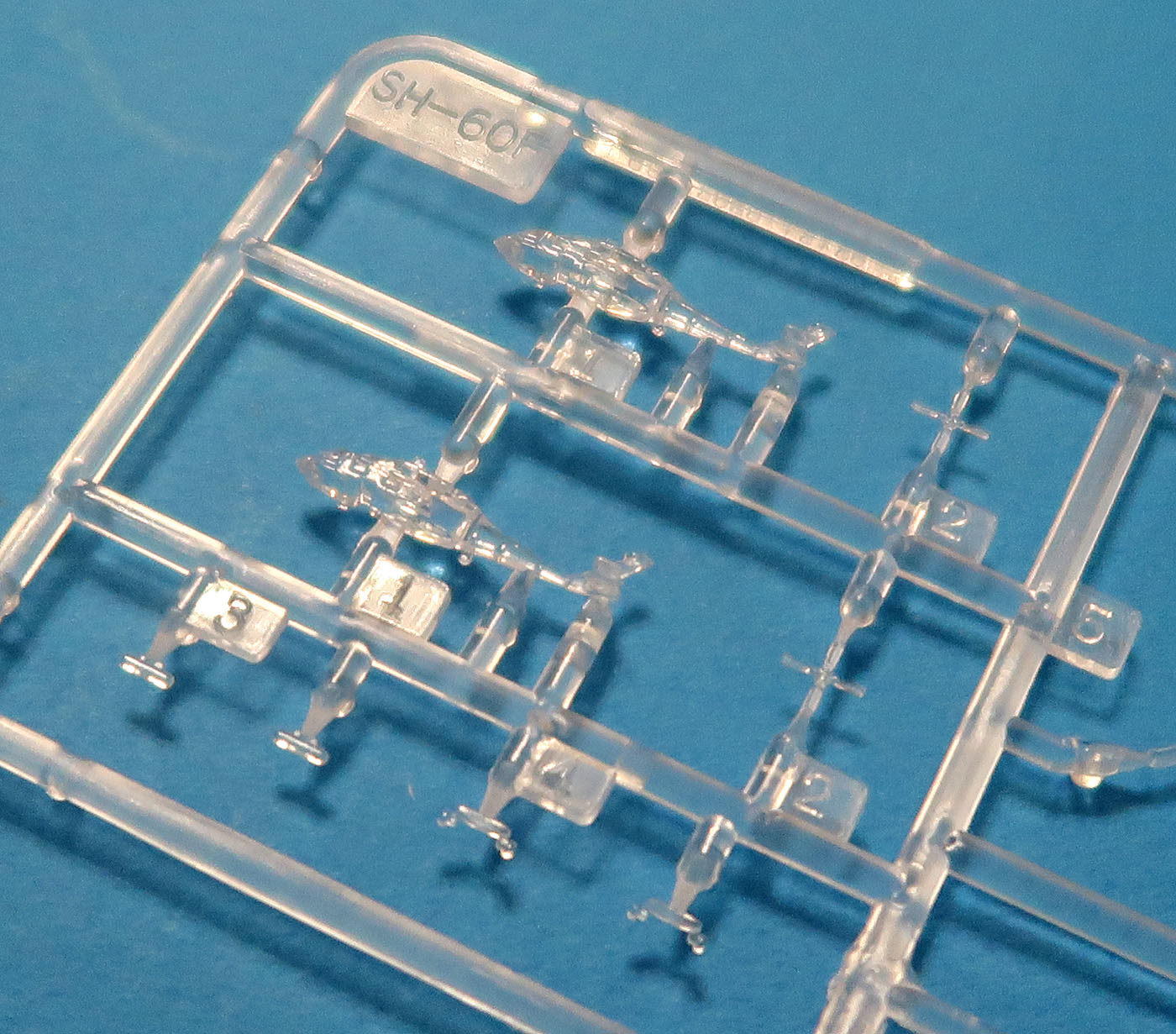 - Два литника с SH-60F Ocean Hawk. По два вертолета на литник. Один с сложенными лопастями несущего винта, второй с разложенными.